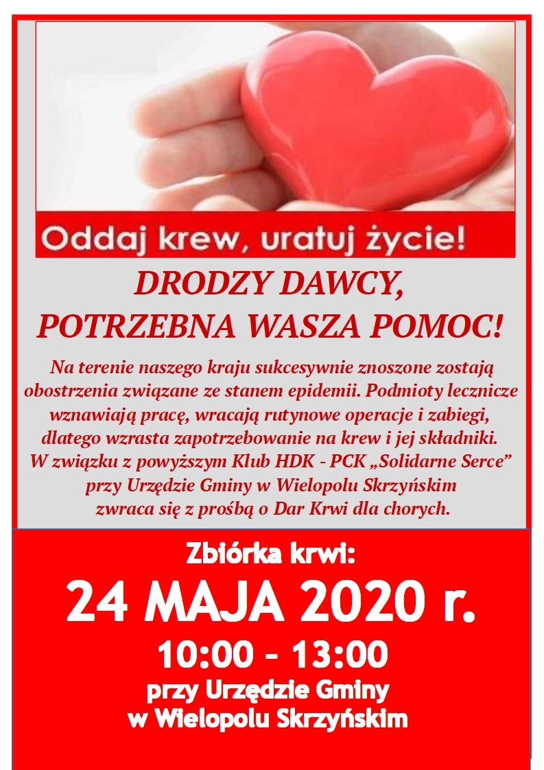Akcja Honorowego Oddawania Krwi - 24 maja 2020r.
