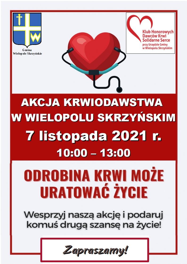 Przed nami kolejna szansa na podarowanie komuś zdrowia a nawet życia. Już w najbliższą niedzielę 7 listopada br. w Wielopolu Skrzyńskim będzie okazja do podzielenia się najcenniejszym lekiem, jaki jest krew. Dla wielu pacjantów w szpitalach, krew i jej składniki to jedyna szansa na życie lub powrót do zdrowia.