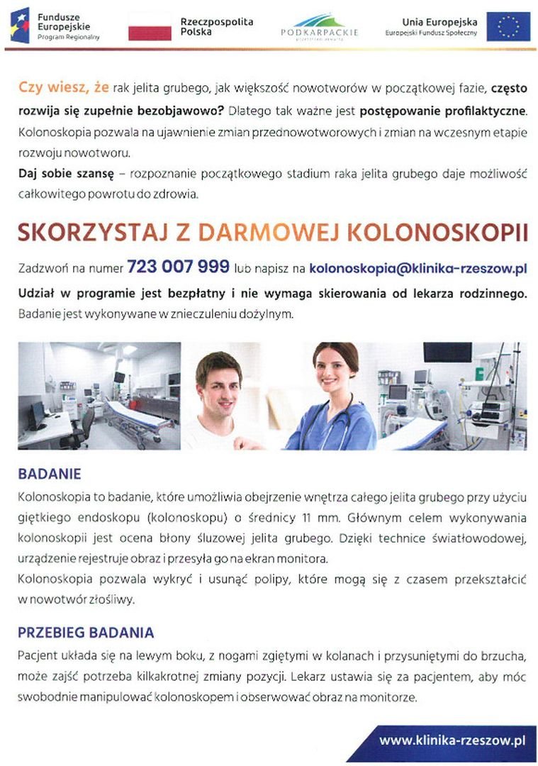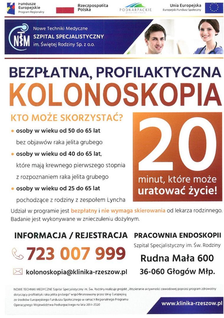 Poniedziałek 13 stycznia 2020 Bezpłatna, profilaktyczna KOLONOSKOPIA Strona Główna/Informator/OgłoszeniaBEZPŁATNA KOLONOSKOPIABEZPŁATNA KOLONOSKOPIA