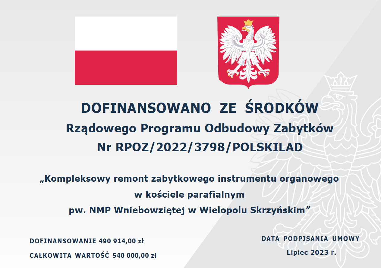 „Kompleksowy remont zabytkowego instrumentu organowego w kościele parafialnym pw. NMP Wniebowziętej w Wielopolu Skrzyńskim”