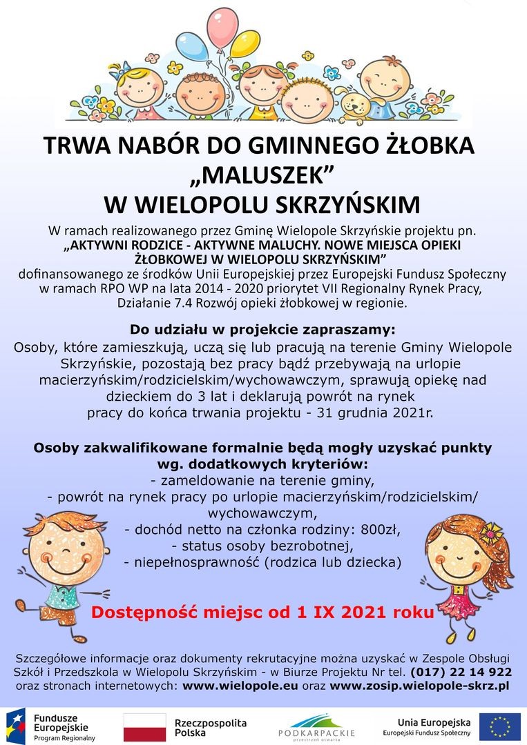 Nabór do Gminnego Żłobka "Maluszek" w Wielopolu Skrzyńskim
