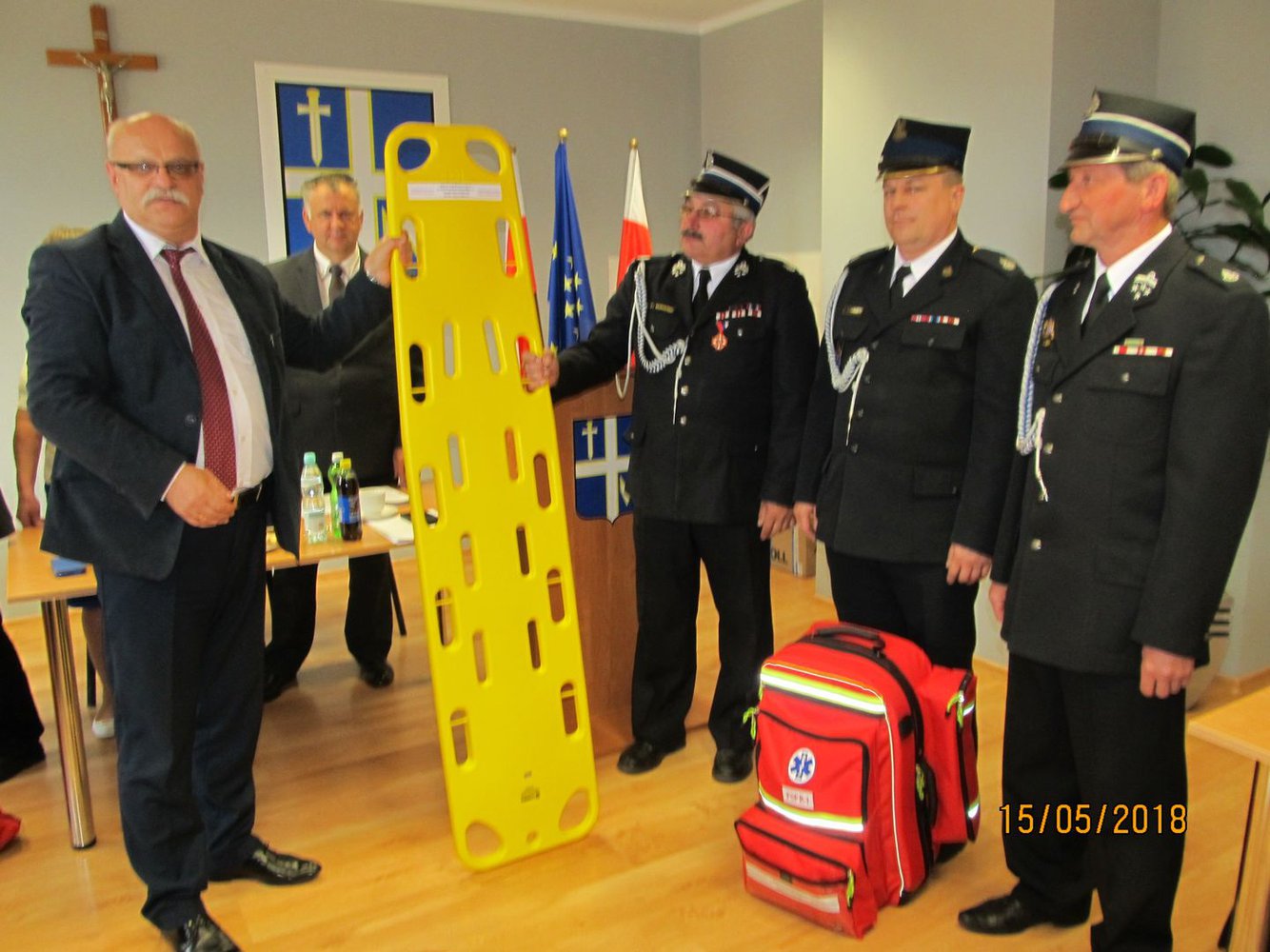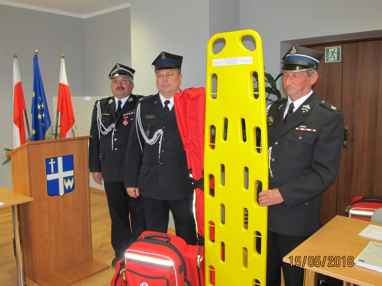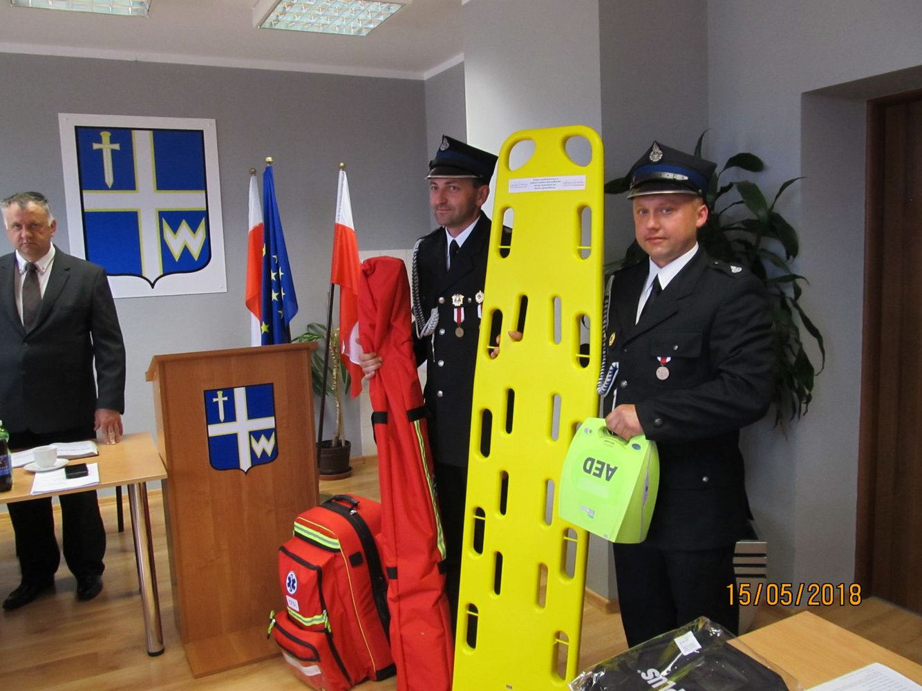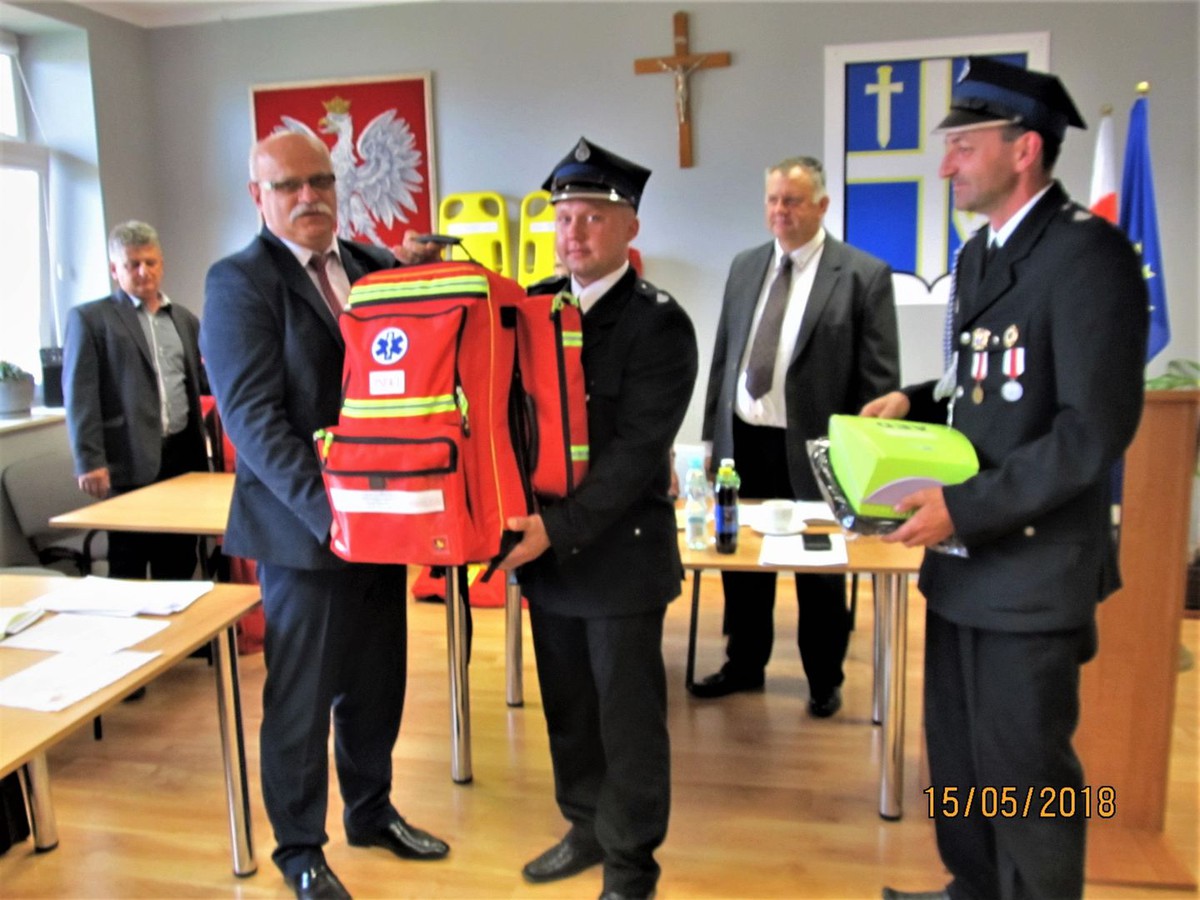 15 maja 2018 roku podczas XLI Sesji Rady Gminy w Wielopolu Skrzyńskim nastąpiło uroczyste przekazanie Jednostkom Ochotniczych Straży Pożarnych z terenu Gminy Wielopole Skrzyńskie wyposażenia i urządzeń ratownictwa medycznego.