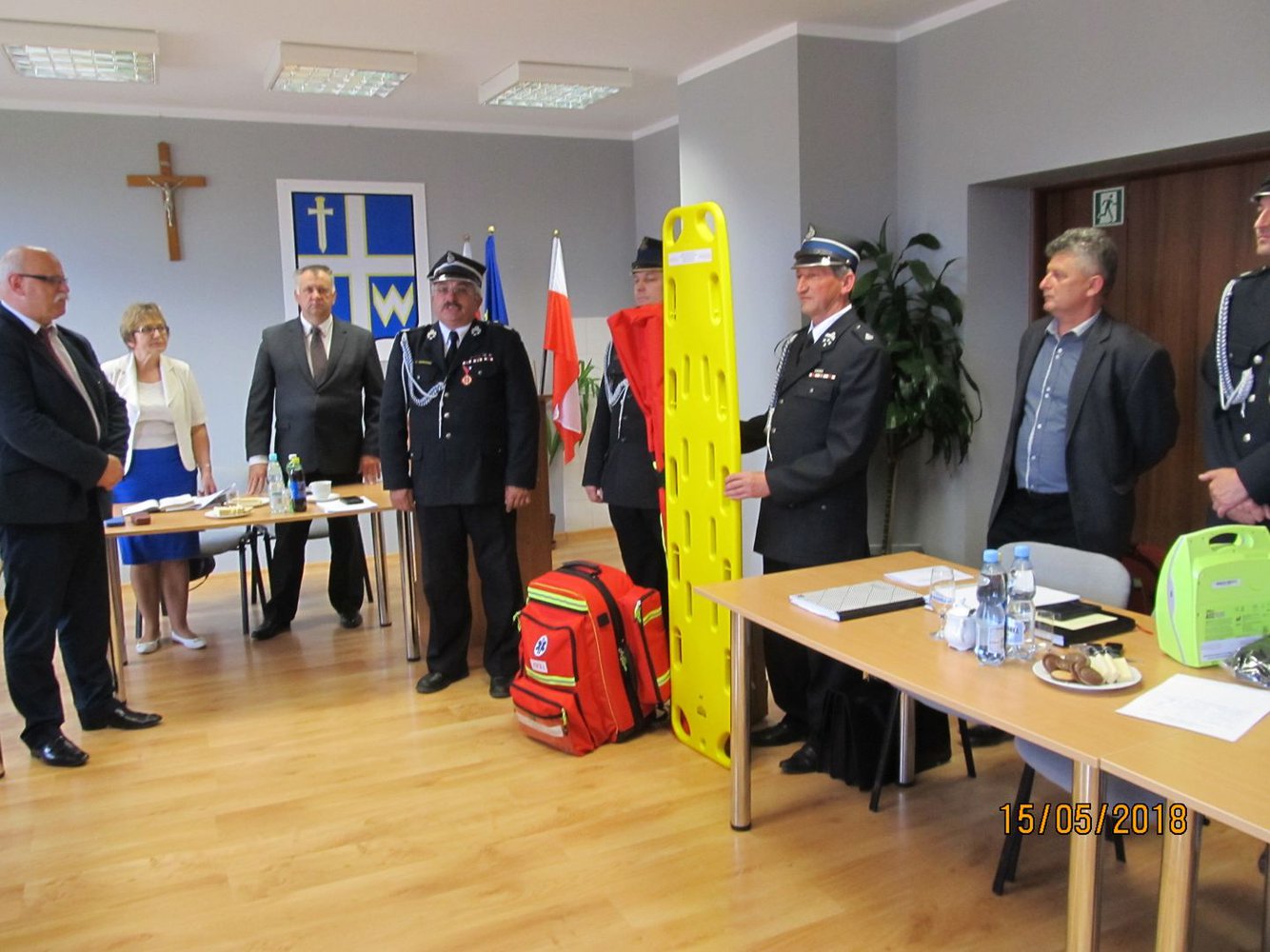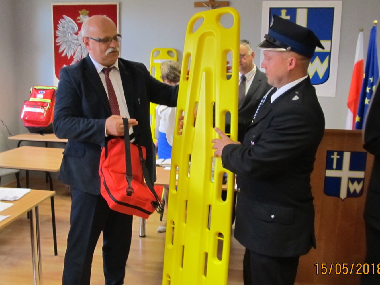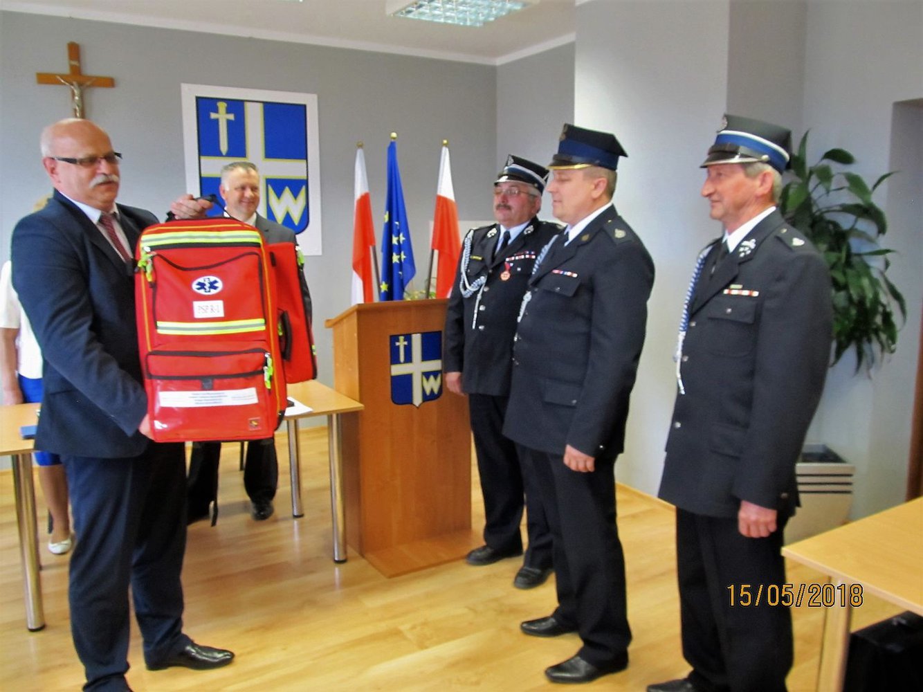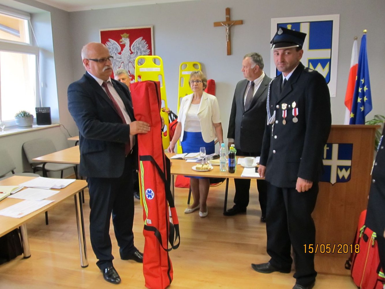 15 maja 2018 roku podczas XLI Sesji Rady Gminy w Wielopolu Skrzyńskim nastąpiło uroczyste przekazanie Jednostkom Ochotniczych Straży Pożarnych z terenu Gminy Wielopole Skrzyńskie wyposażenia i urządzeń ratownictwa medycznego.