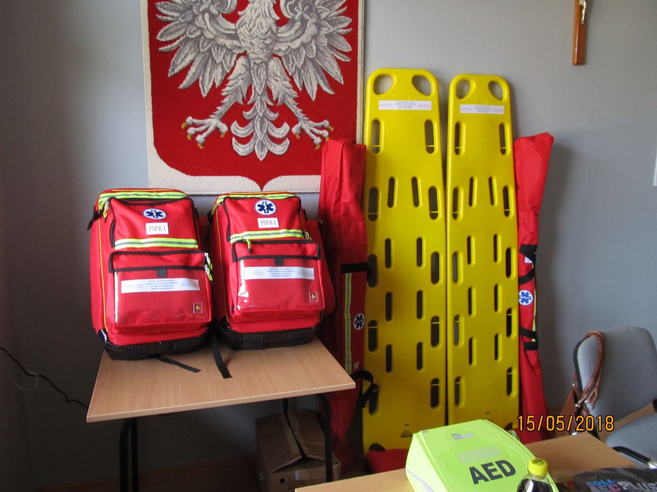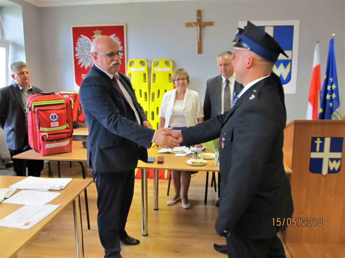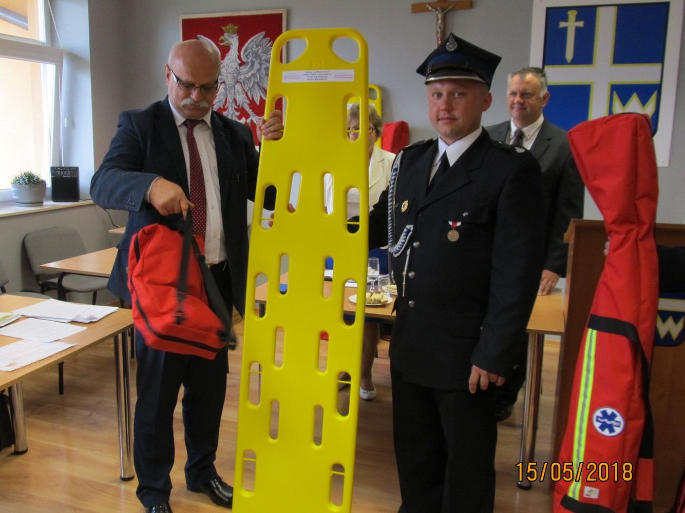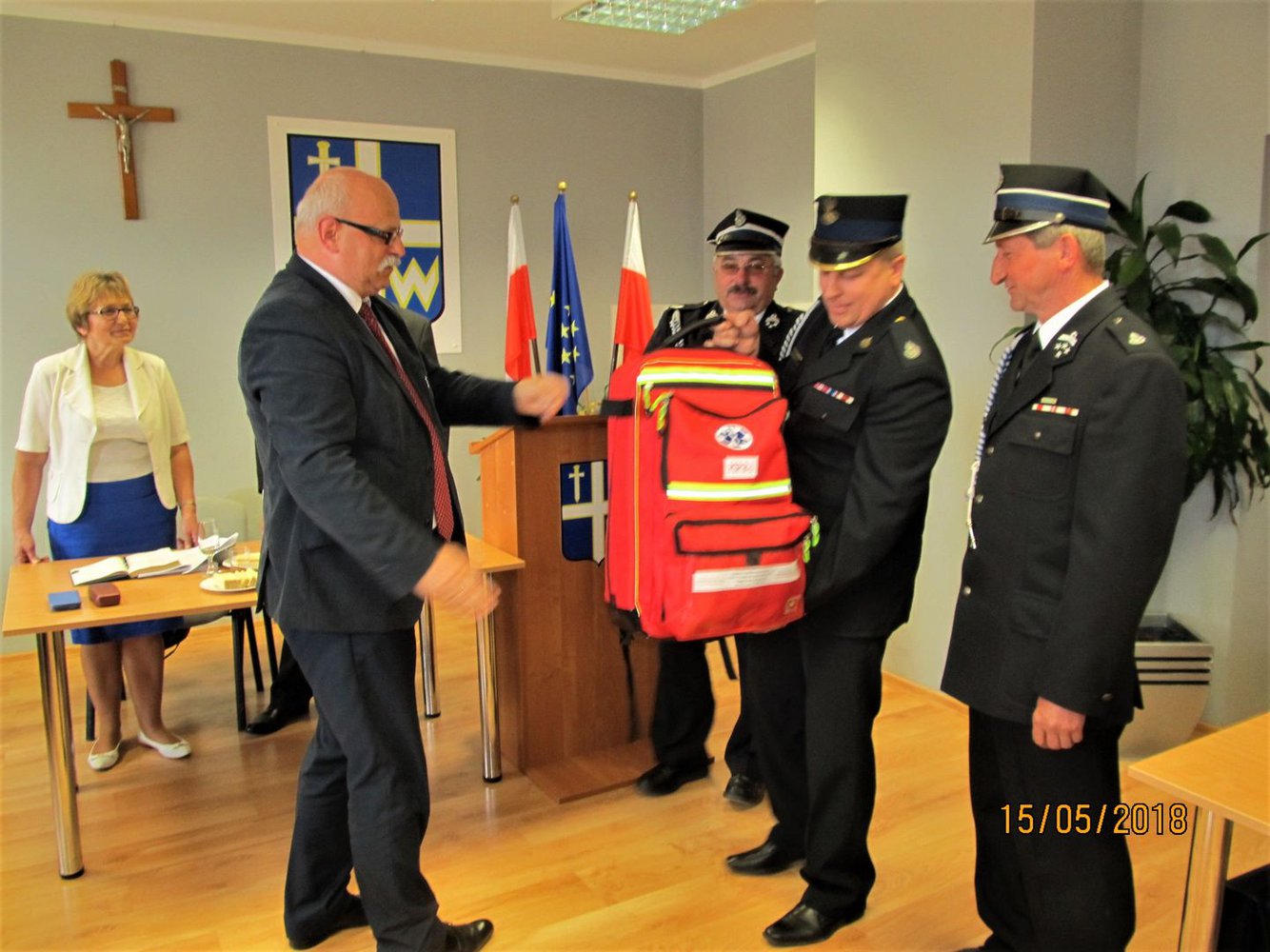 15 maja 2018 roku podczas XLI Sesji Rady Gminy w Wielopolu Skrzyńskim nastąpiło uroczyste przekazanie Jednostkom Ochotniczych Straży Pożarnych z terenu Gminy Wielopole Skrzyńskie wyposażenia i urządzeń ratownictwa medycznego.