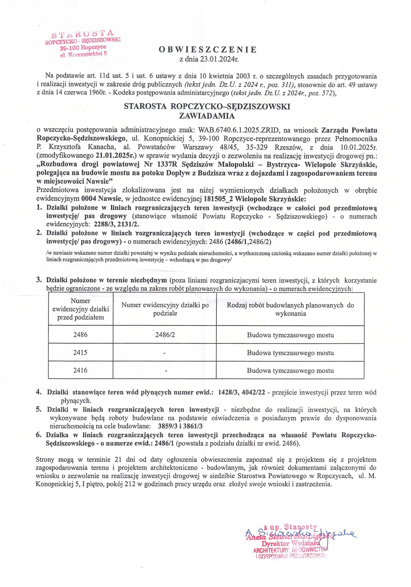 Poniedziałek 27 stycznia 2025 Obwieszczenie Starosty Ropczycko-Sędziszowskiego Strona Główna/Informator/Ogłoszenia