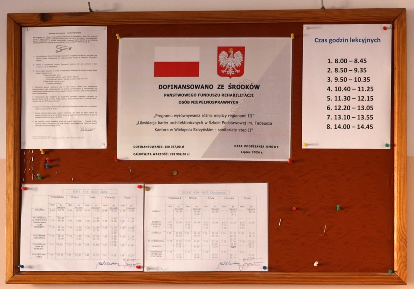 Zakończono remont oraz przystosowanie łazienek dla osób niepełnosprawnych w budynku Szkoły Podstawowej – pion toalet męskich na parterze, I i II piętrze w ramach realizacji zadania „Likwidacja barier architektonicznych w Szkole Podstawowej im. Tadeusza Marii Kantora w Wielopolu Skrzyńskim – sanitariaty dla chłopców” w ramach "Programu wyrównywania różnic między regionami III" – obszar B.