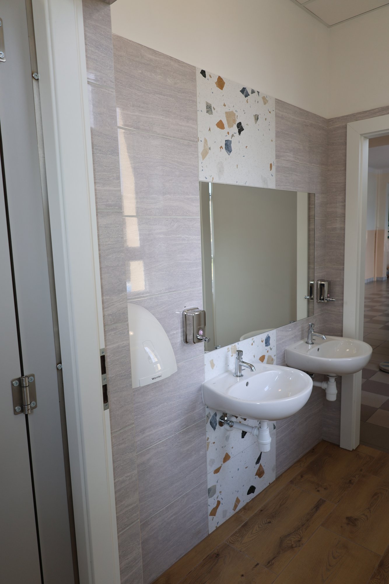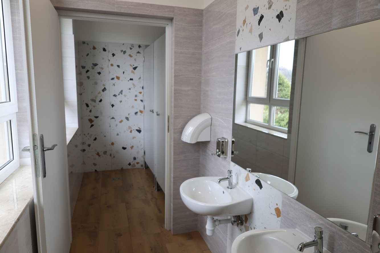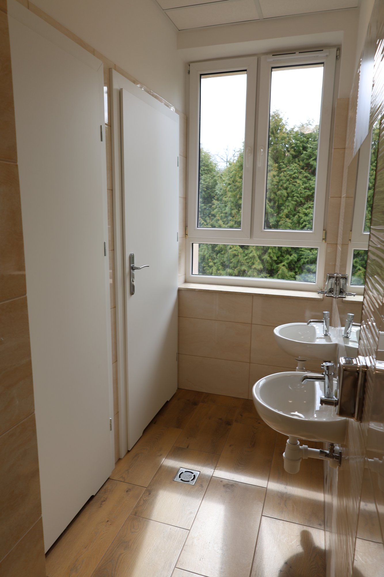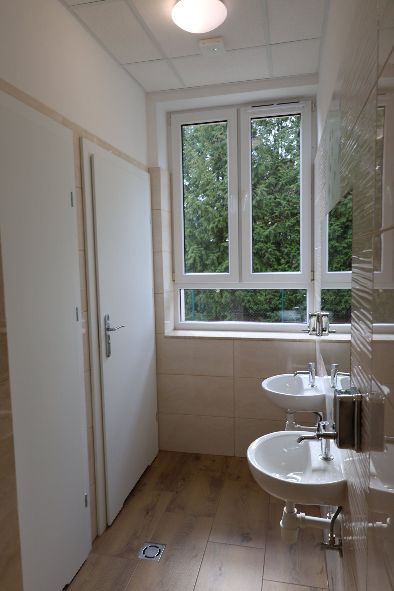 Prace obejmowały modernizację toalet w Szkole Podstawowej w Brzezinach na I i II piętrze (z wyodrębnieniem w węźle sanitarnym części męskiej, damskiej i toalety dla niepełnosprawnych).