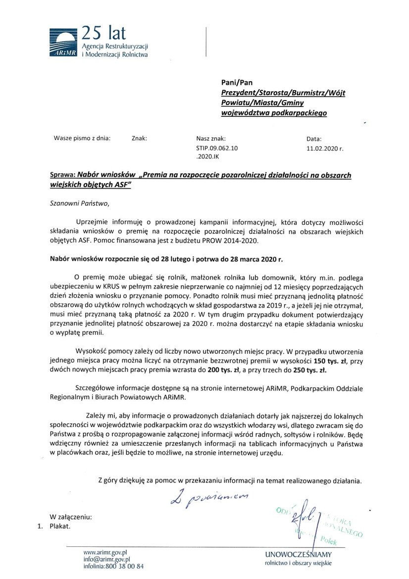 W załączeniu informacja dotycząca możliwości składania wniosków o przyznanie premii na rozpoczęcie pozarolniczej działalności.
