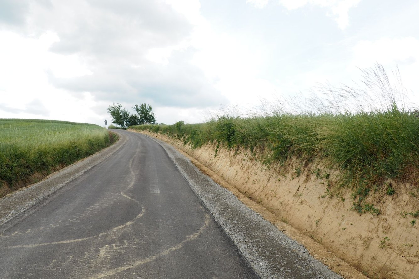 W ramach inwestycji przewidujesię przebudowę drogi na długości 433,75 m poprzez wykonanie nowej nawierzchni, przebudowę zjazdów w zakresie pasa drogowego oraz adaptację istniejącego systemu odwodnienia.