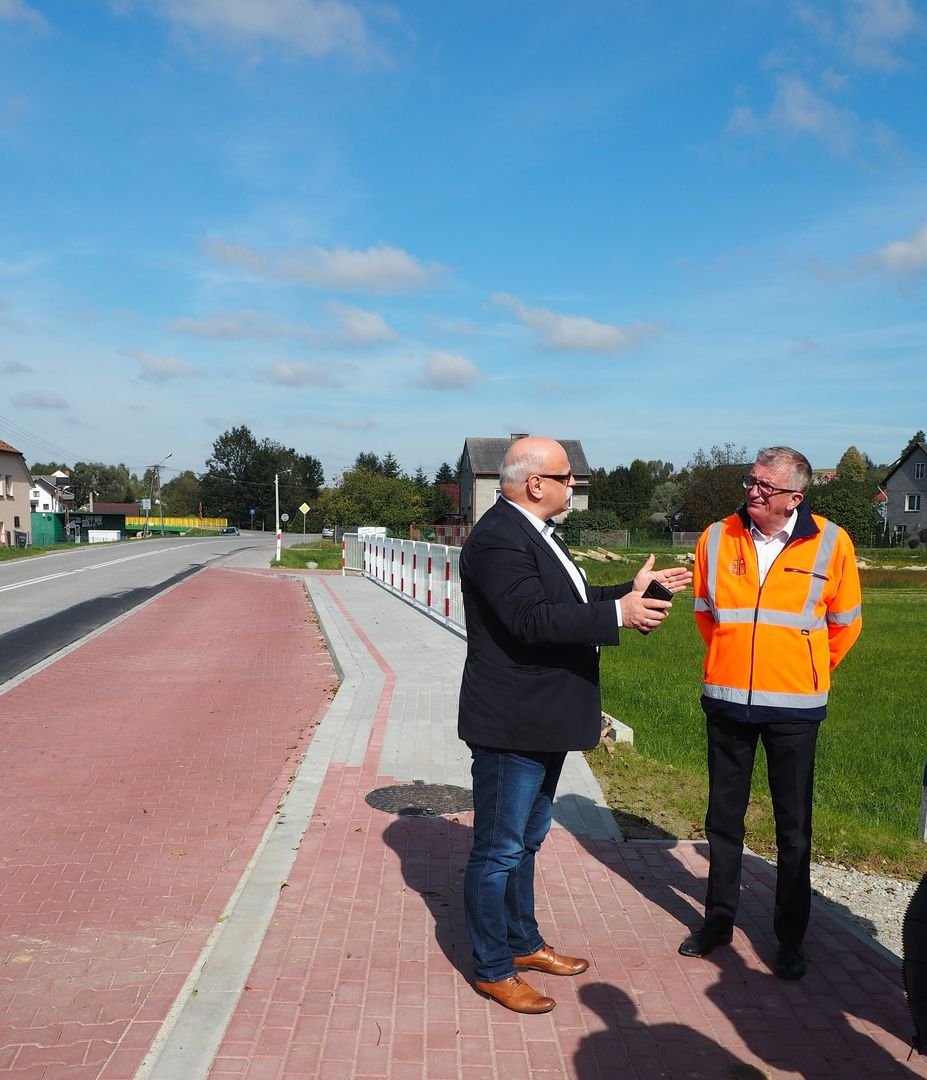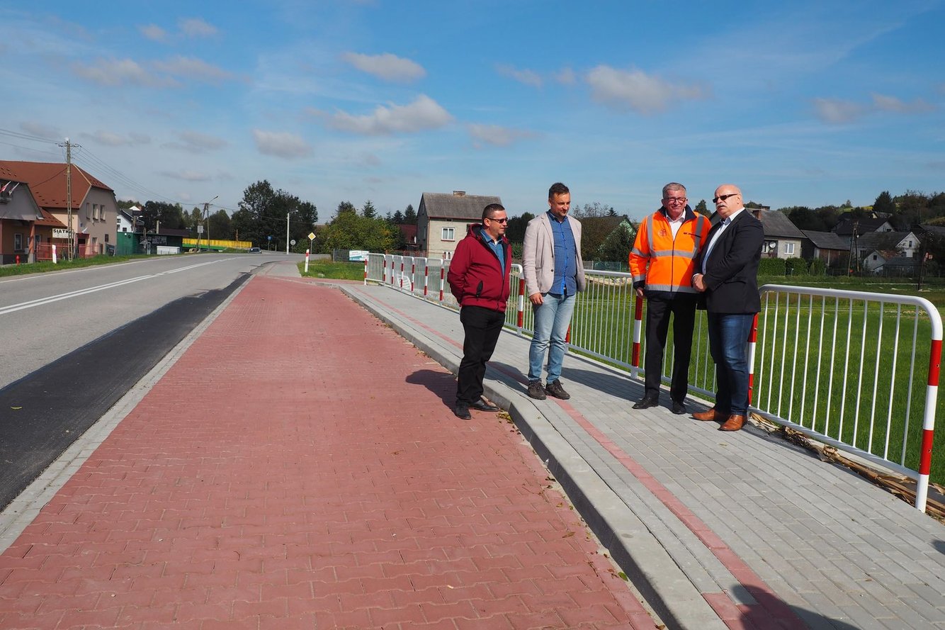 Podczas odbioru zadania obecni byli: Kierownik Rejonu Dróg Wojewódzkich w Mielcu Pan Zbigniew Tymuła, Inspektor Nadzoru Pan Mariusz Sroczyński, wykonawca inwestycji Pan Grzegorz Ozga oraz Wójt Gminy Wielopole Skrzyńskie Pan Marek Tęczar.