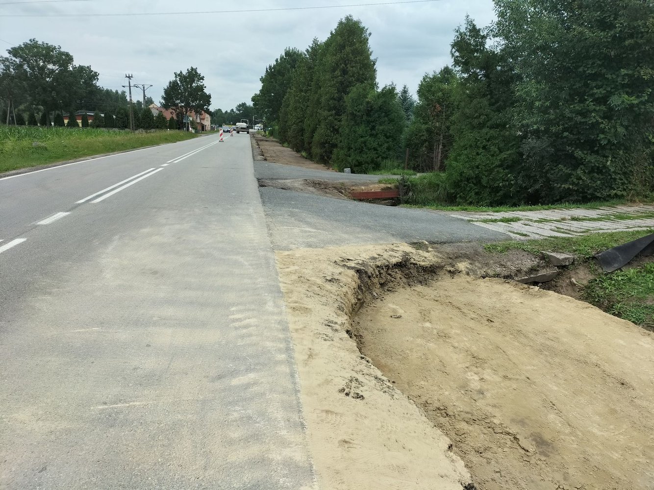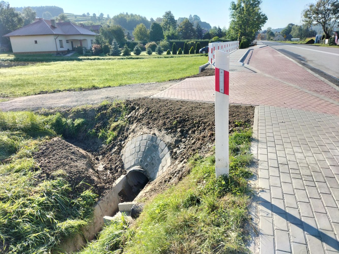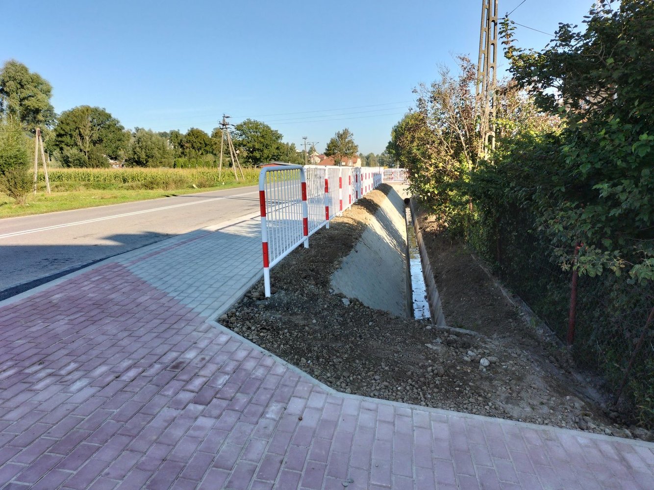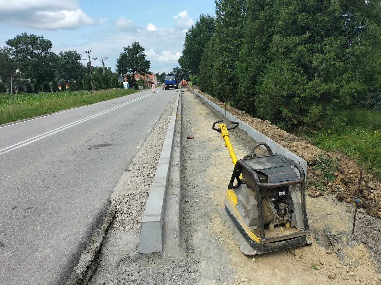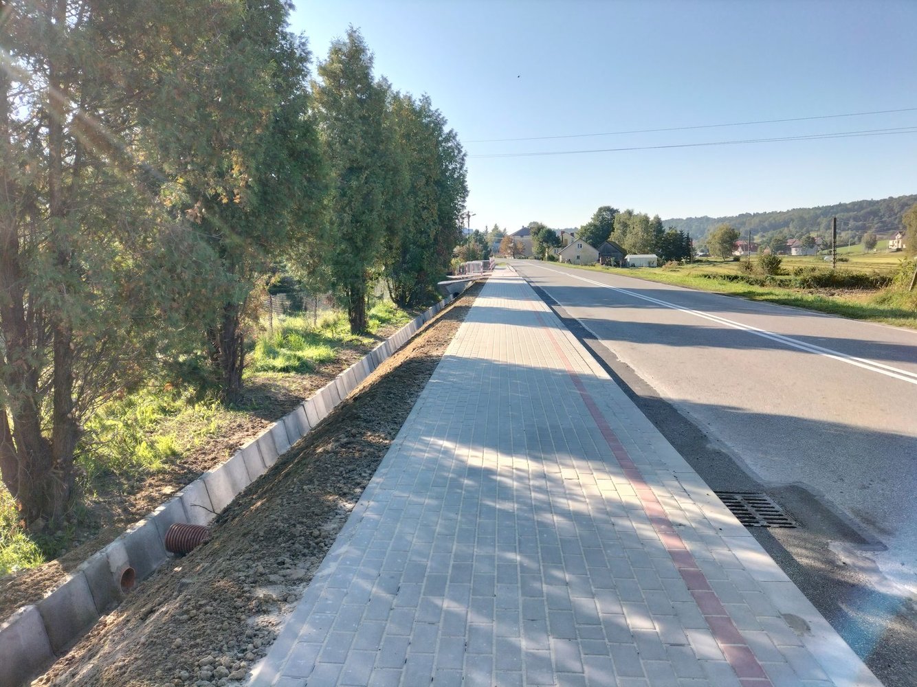 Inwestycja swoim zakresem obejmowała m.in: wykonanie robót pomiarowych, umocnienie rowu, poszerzenie jezdni, utwardzenie nawierzchni zjazdów w granicach pasa drogowego, wykonanie elementów odwodnienia drogi, wykonanie zatoki autobusowej, ułożenie chodnika z kostki brukowej.