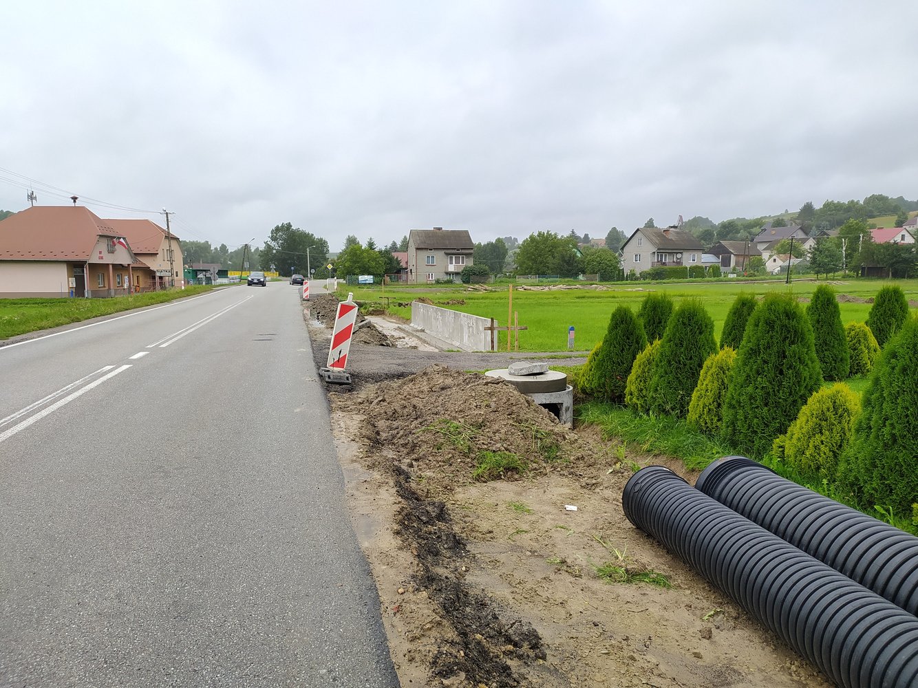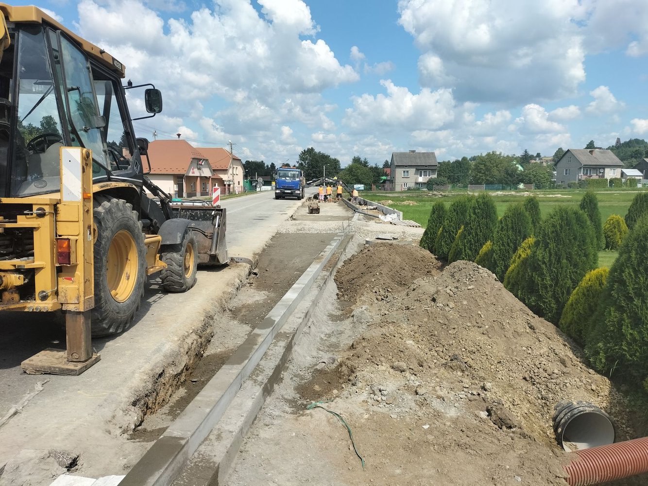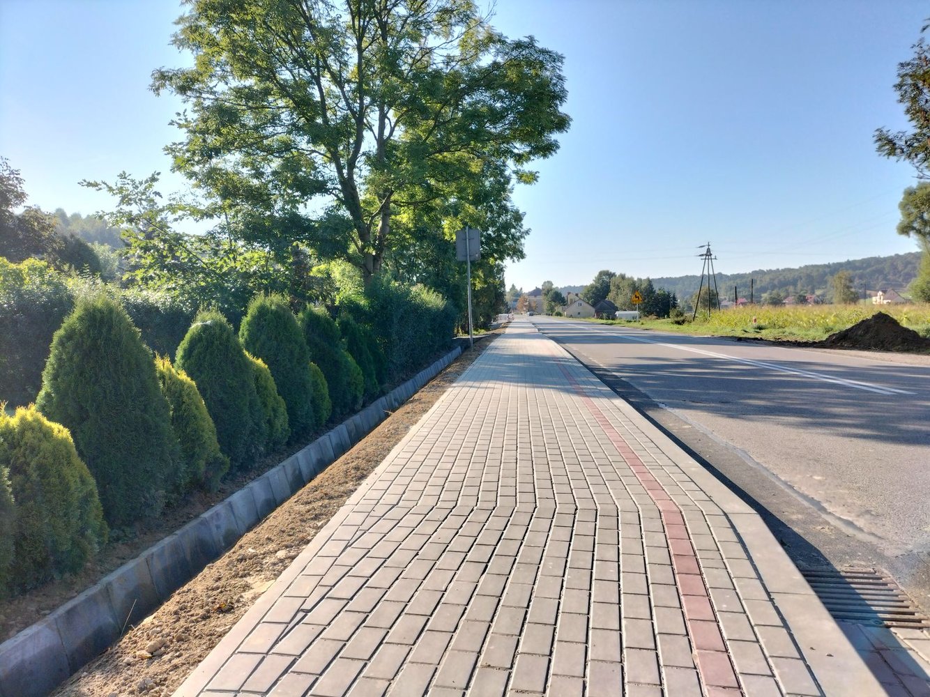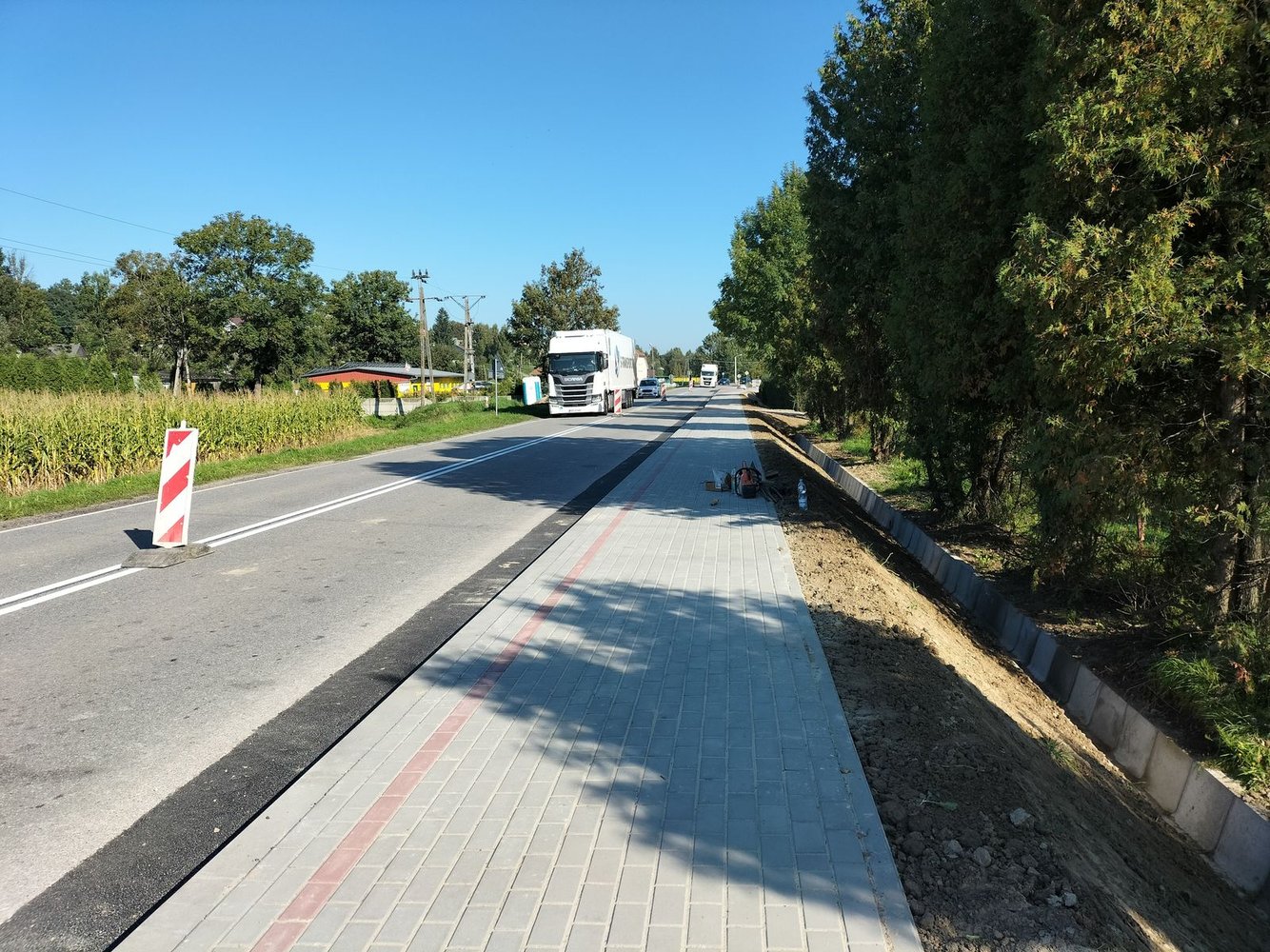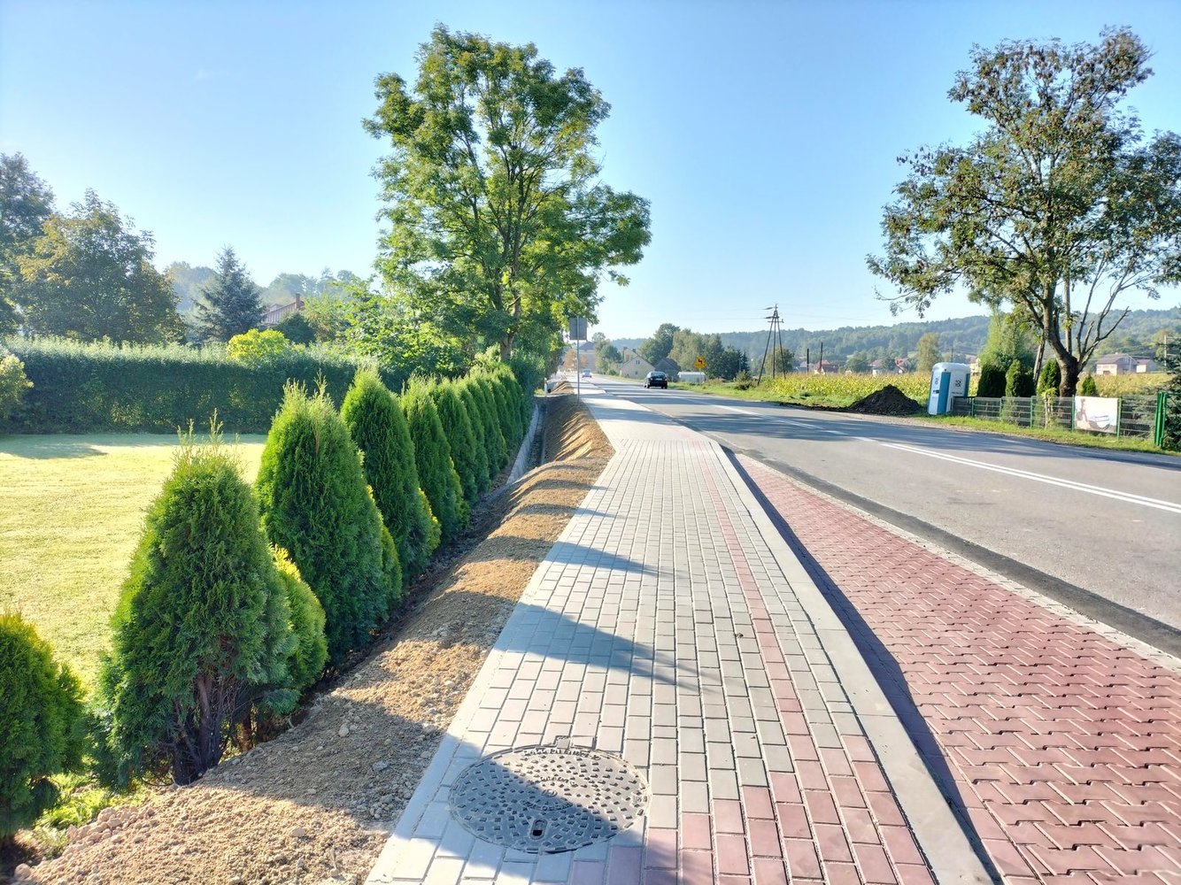Inwestycja swoim zakresem obejmowała m.in: wykonanie robót pomiarowych, umocnienie rowu, poszerzenie jezdni, utwardzenie nawierzchni zjazdów w granicach pasa drogowego, wykonanie elementów odwodnienia drogi, wykonanie zatoki autobusowej, ułożenie chodnika z kostki brukowej.