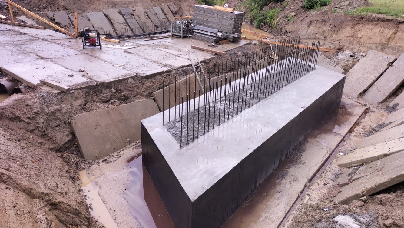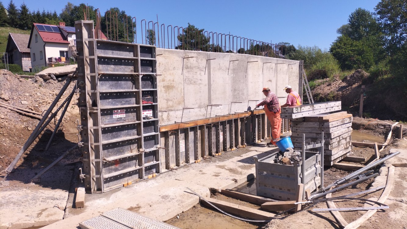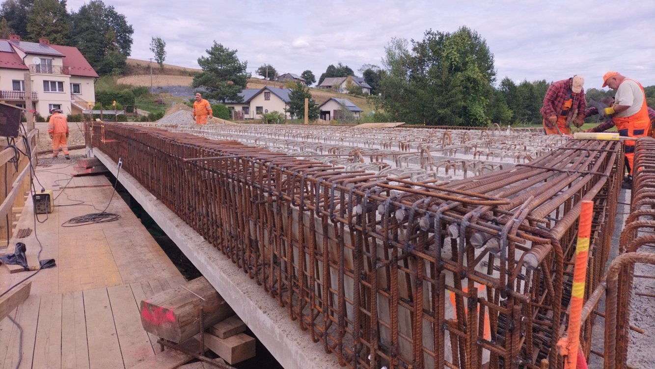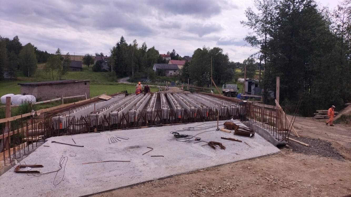 Inwestycja obejmuje przebudowę obiektu mostowego o konstrukcji płytowo-belkowej, (belki prefabrykowane). Zaprojektowano ustrój nośny wykonany z prefabrykowanych belek strunobetonowych typu "KUJAN" wykonanych z betonu klasy C35/45 (B45), o długości L=15,0m i nośności klasy "B" wg PN-85/S- 10030, zespolonych z żelbetową warstwą z betonu grubości min. 15 cm wykonanego z betonu klasy C30/37 (B35) zbrojonego stalą żebrowaną AIII-N. Przyczółki mostu zaprojektowano jako monolityczne żelbetowe posadowione na ławie fundamentowej, opartej bezpośrednio na częściowo wymienionym podłożu gruntowym.