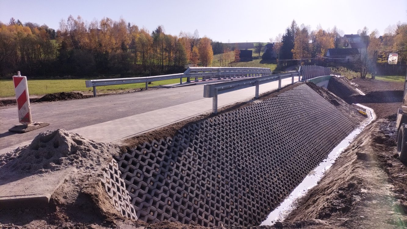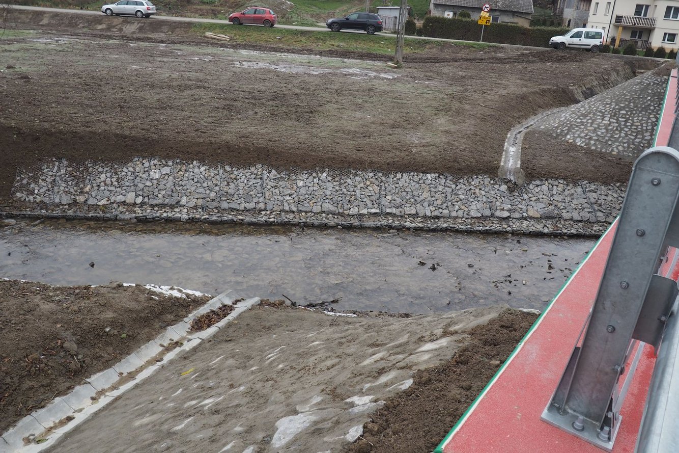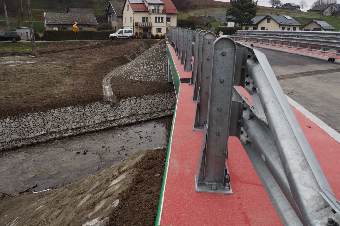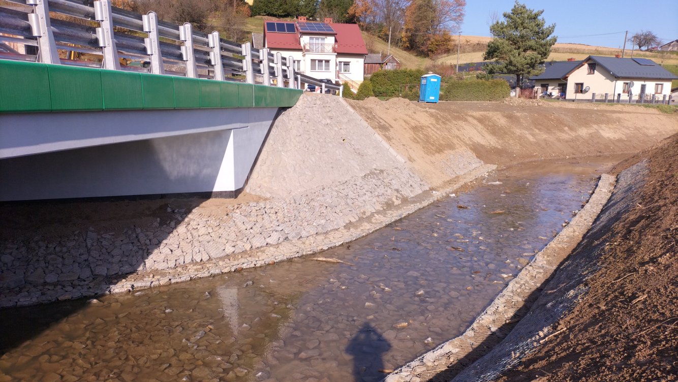 Na końcach mostu przewidziano wykonanie typowych płyt przejściowych. Przewiduje się także odcinkowe umocnienie koryta cieku, a także wykonanie oczyszczenia oraz umocnienia dna grubym narzutem kamiennym. Ponadto skarpy cieku umocnione zostaną koszami siatkowo-kamiennymi oraz materacami kamiennymi.