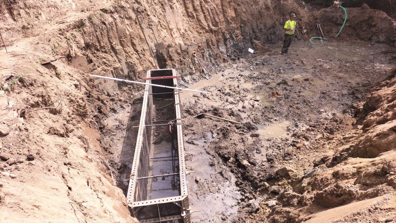 - warstwa ulepszonego gruntu stabilizowana spoiwem hydraulicznym z doziarnieniem pospółką min. Rm=2,5 MPa – gr. 25 cm
