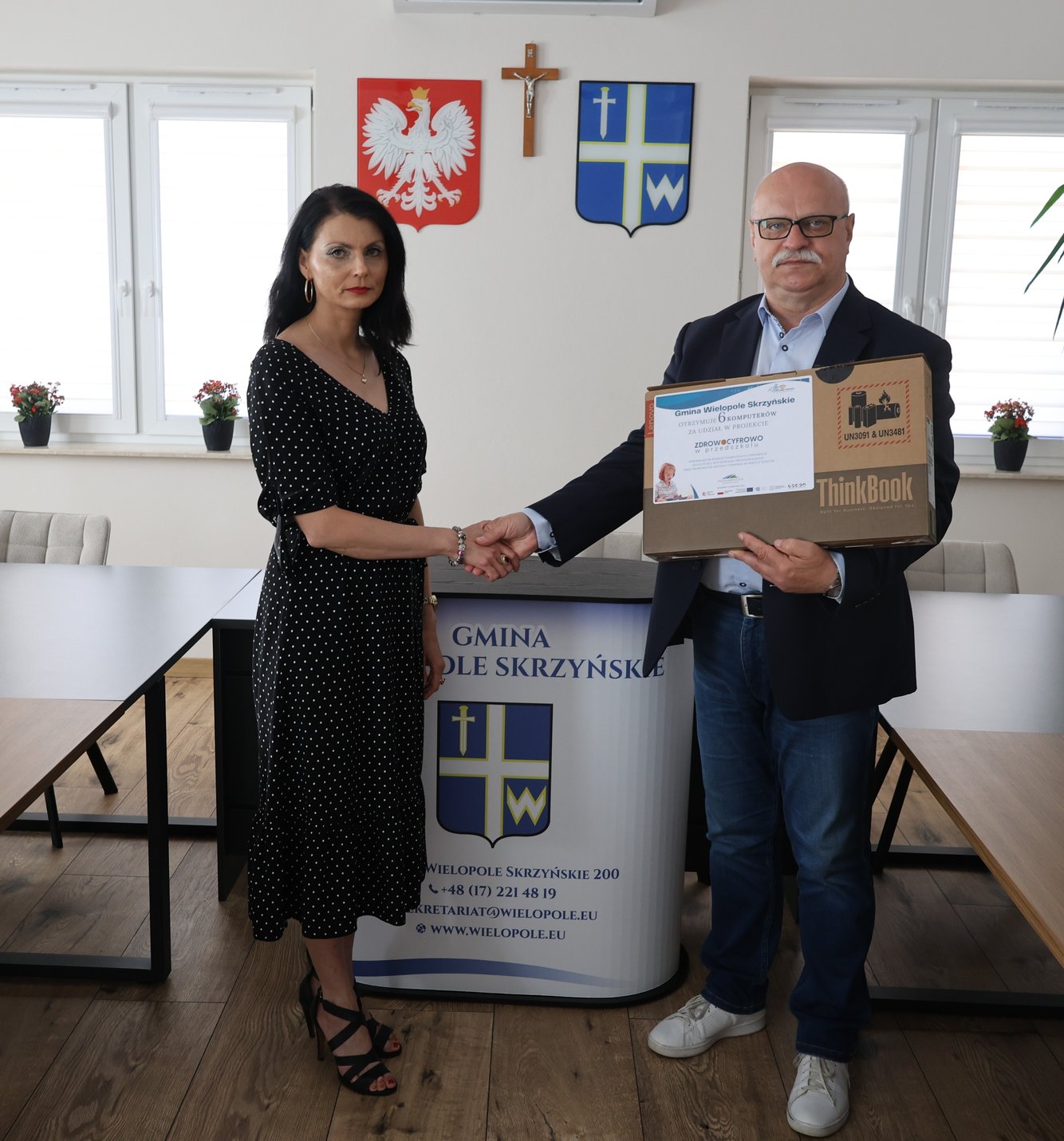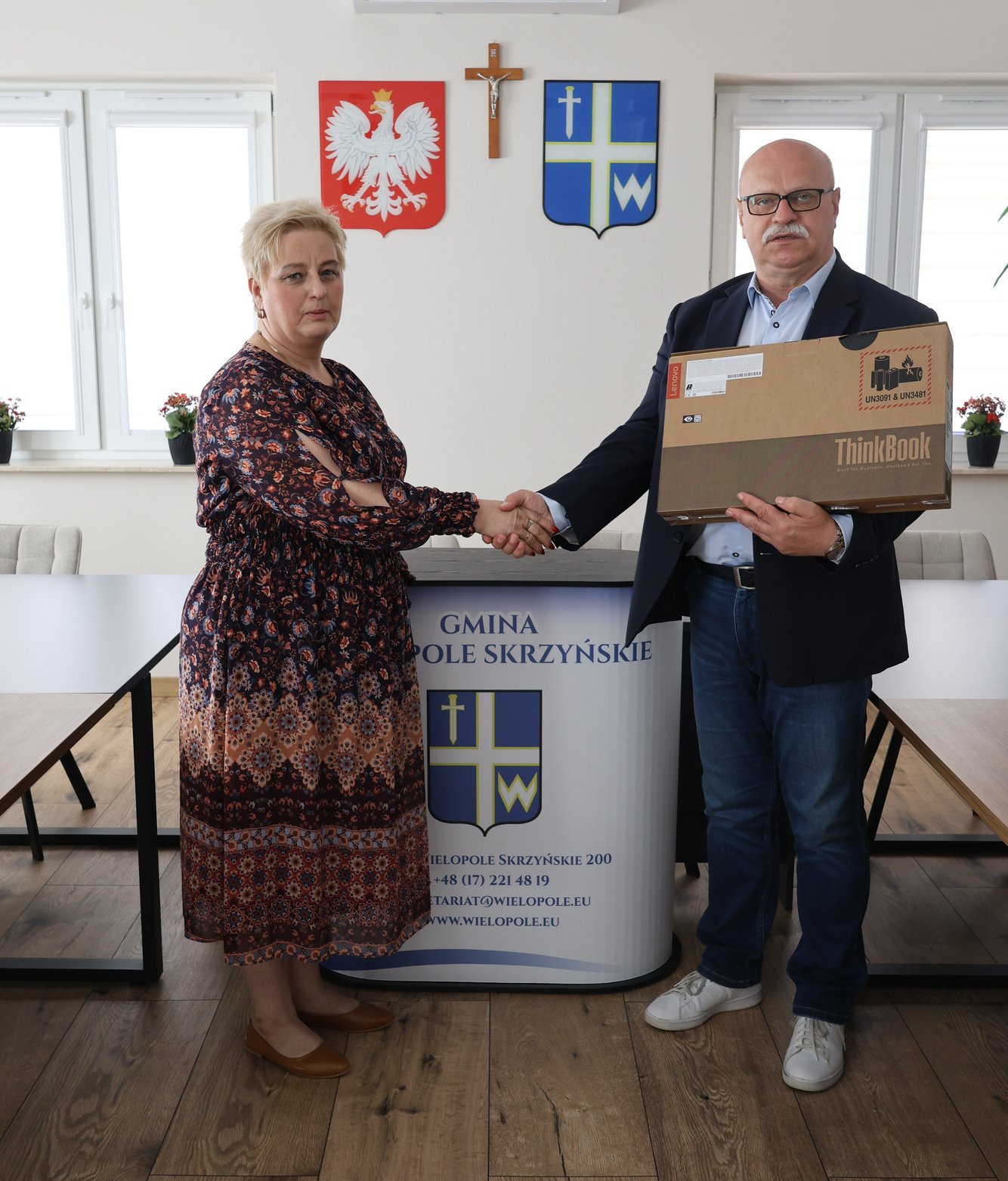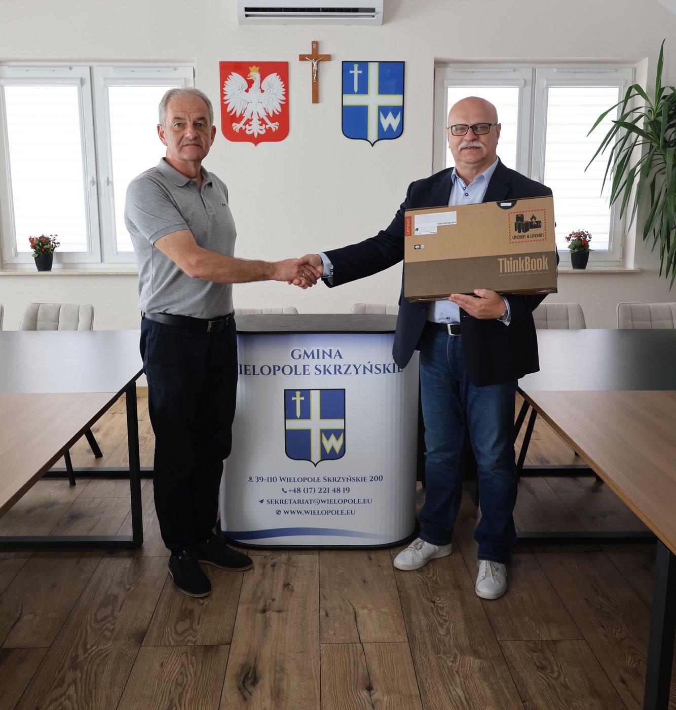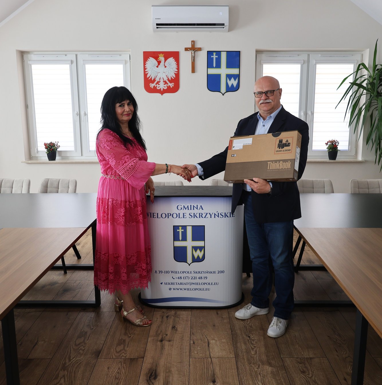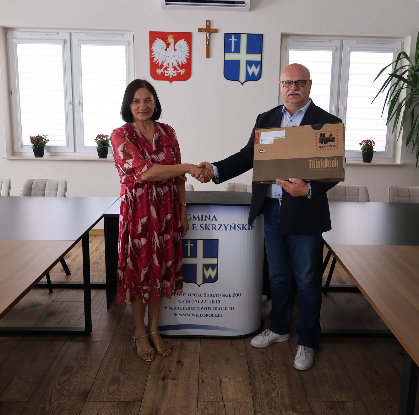 1 lipca 2025 roku Wójt Gminy Wielopole Skrzyńskie Pan Marek Tęczar przekazał sprzęt komputerowy dla przedszkola i oddziałów przedszkolnych o łącznej wartości 25 682,40 zł.