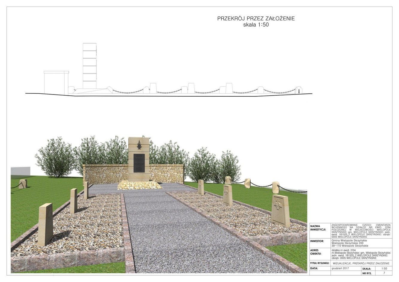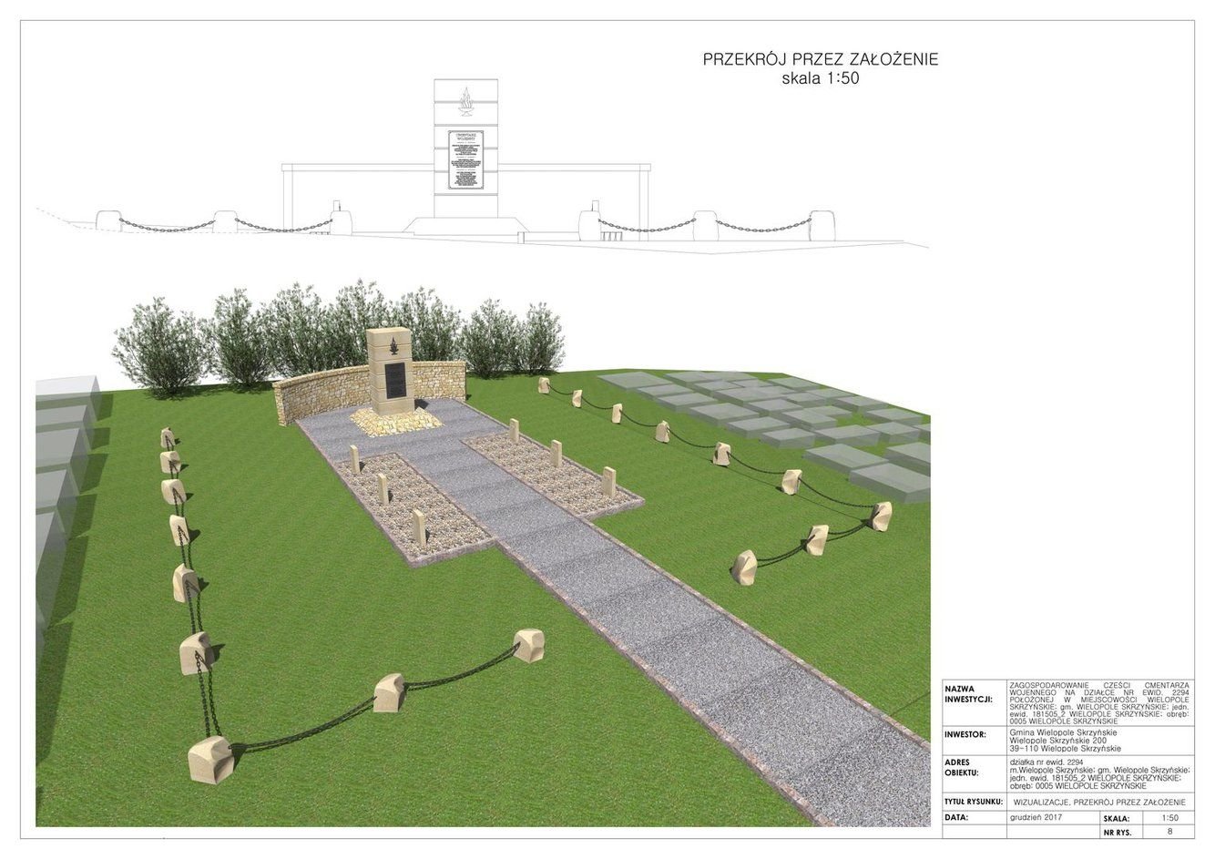 Za otrzymane w 2019 roku środki finansowe przeprowadzone zostaną wszystkie prace związane z zagospodarowaniem terenu wokół odnowionego obiektu. W ramach zadania wykonany zostanie mur dekoracyjny za pomnikiem głównym, ogrodzenie z bloków z piaskowca oraz ścieżka z kostki brukowej.