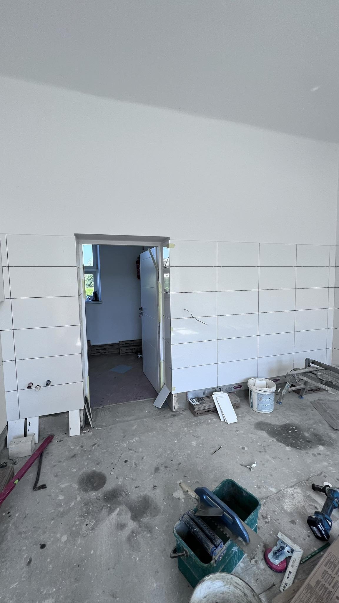 - skucie, wyrównanie i ułożenie płytek ściennych,