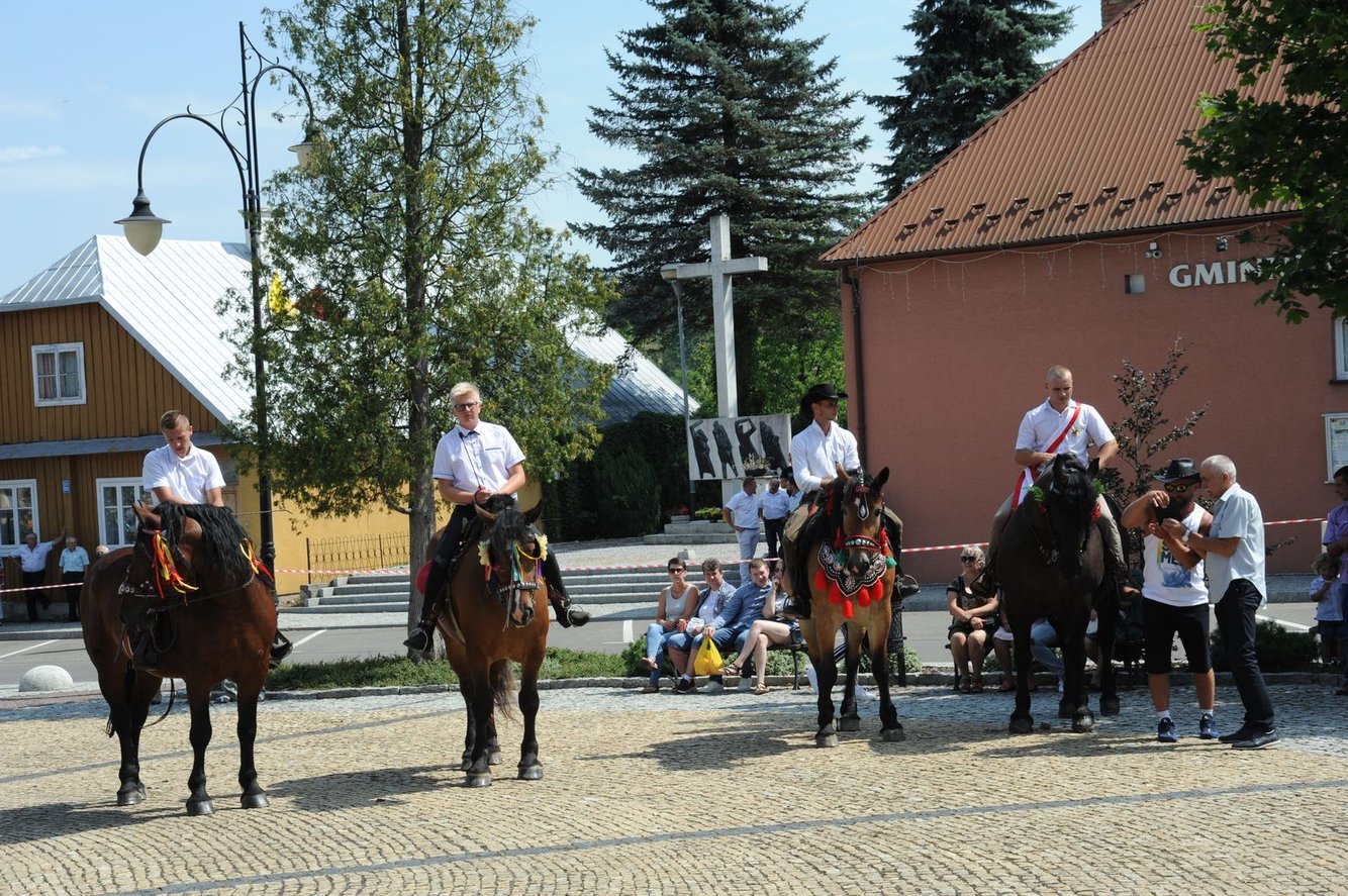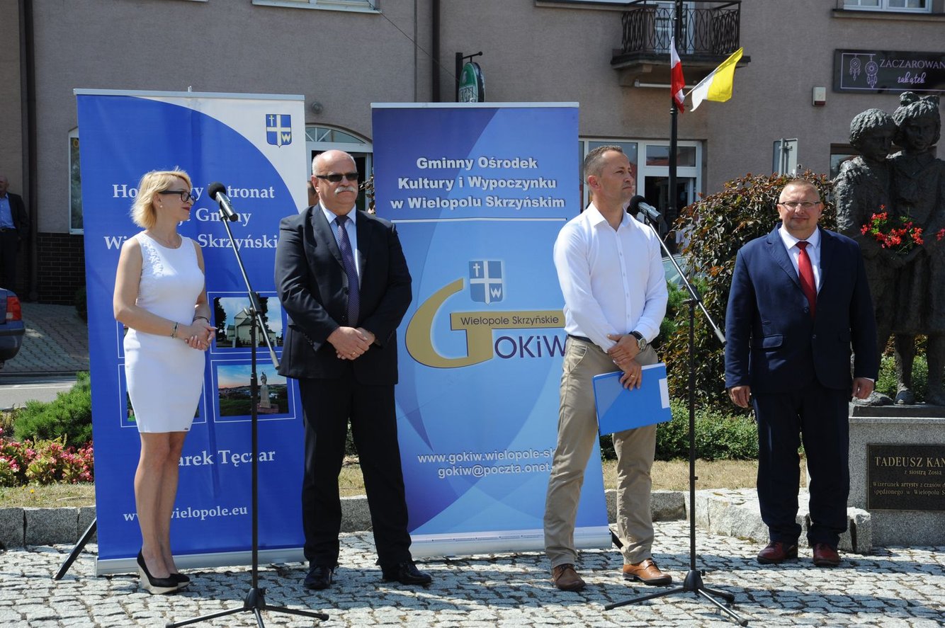 Po uroczystej sumie odpustowej orszak przemaszerował na wielopolski rynek gdzie przybyłych gości powitał Pan Marek Tęczar Wójt Gminy Wielopole Skrzyńskie. Pan Wójt w swoim wystąpieniu podkreślił ważną rolę kultywowania dawnych tradycji i zwyczajów. Zaznaczył również, że udział w tej uroczystości - bez wątpienia sprzyja budowaniu lokalnej integracji i pogłębia wzajemne więzi międzypokoleniowe.