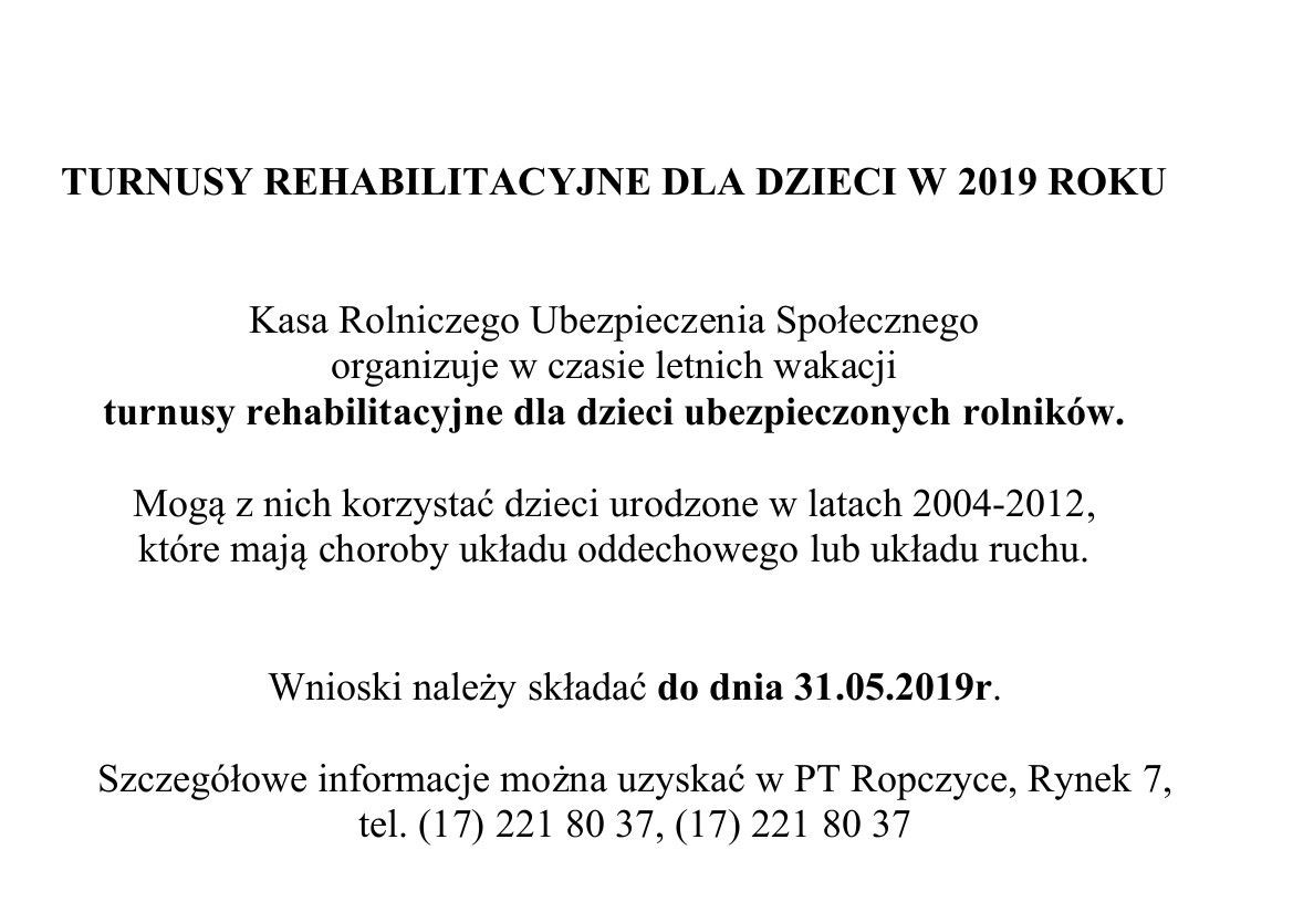 Piątek 29 marca 2019 Turnusy rehabilitacyjne dla dzieci w 2019 roku Strona Główna/Informator/Ogłoszenia