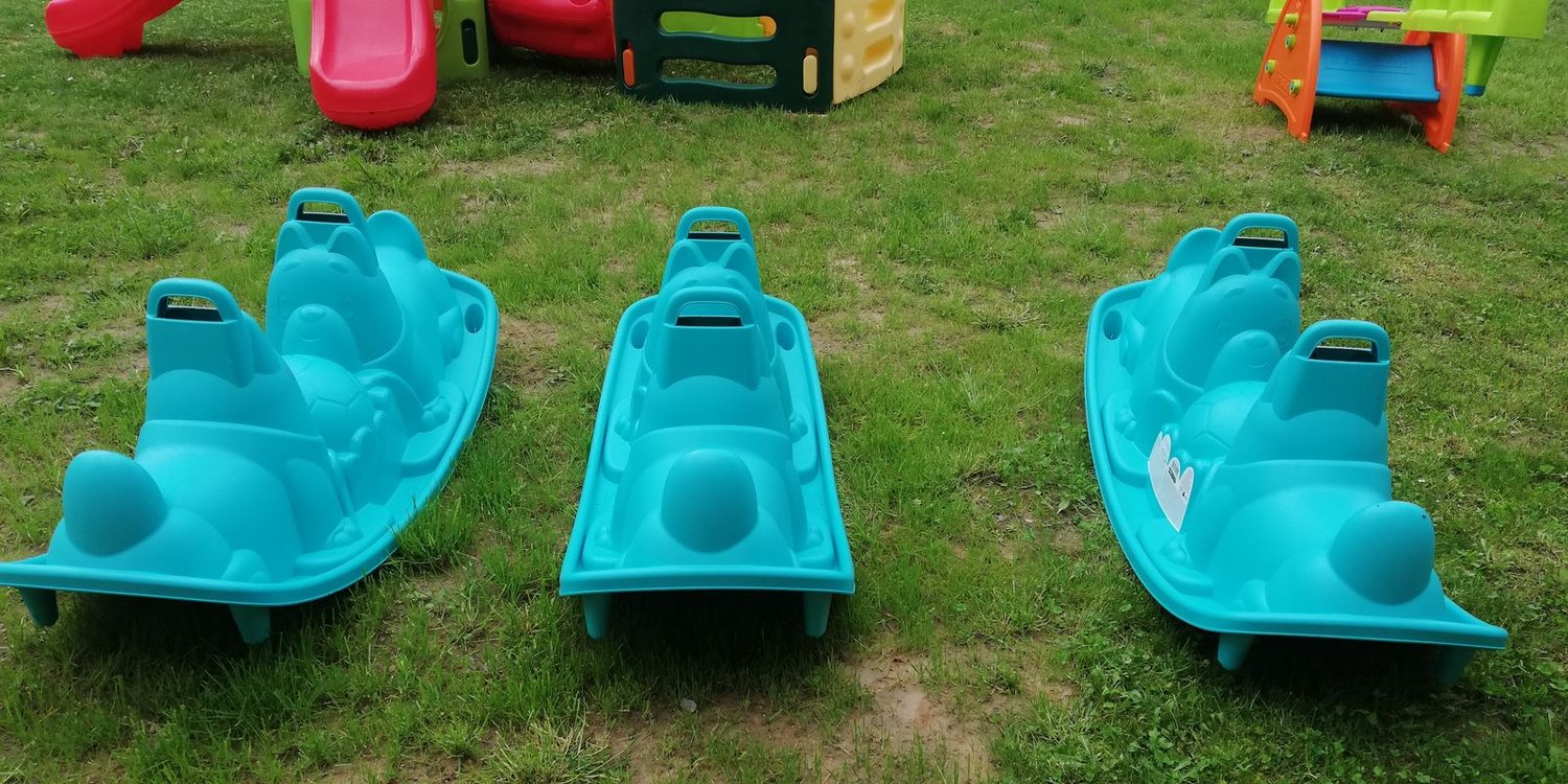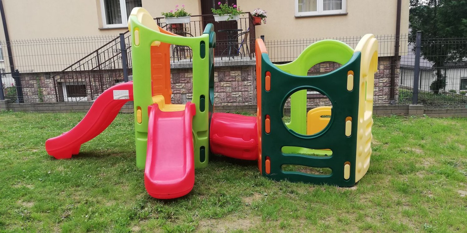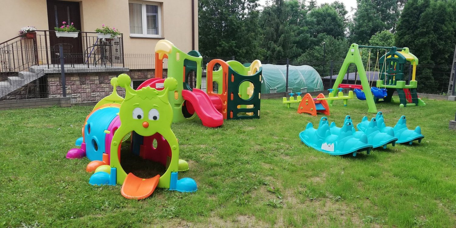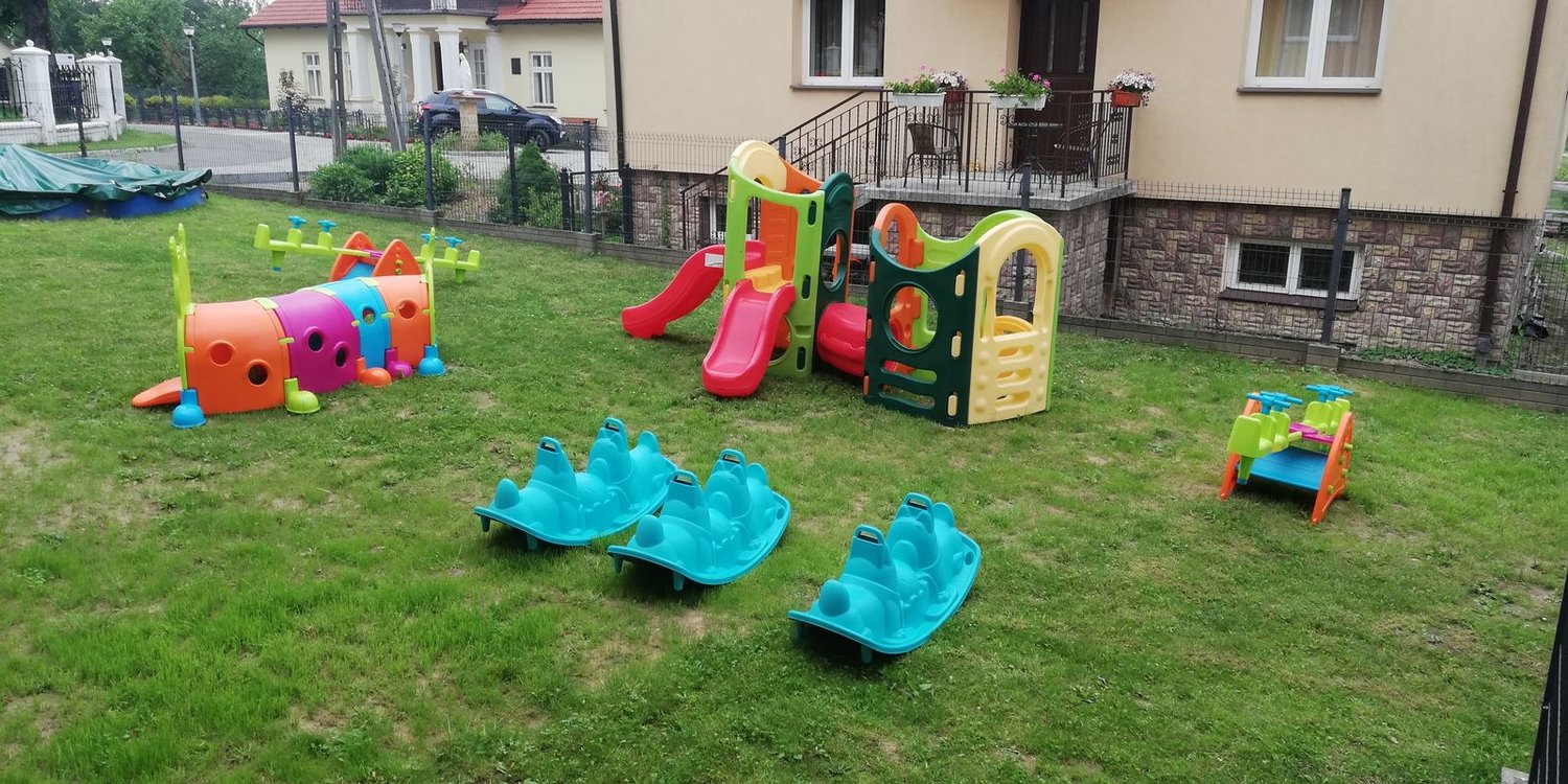 Teren za budynkiem został uporządkowany, zasiano trawnik i ustawiono zabawki ogrodowe, powstało miejsce zabaw dostosowane do potrzeb maluchów, które pod czujnym okiem Opiekunek mogą aktywnie spędzać czas na świeżym powietrzu.