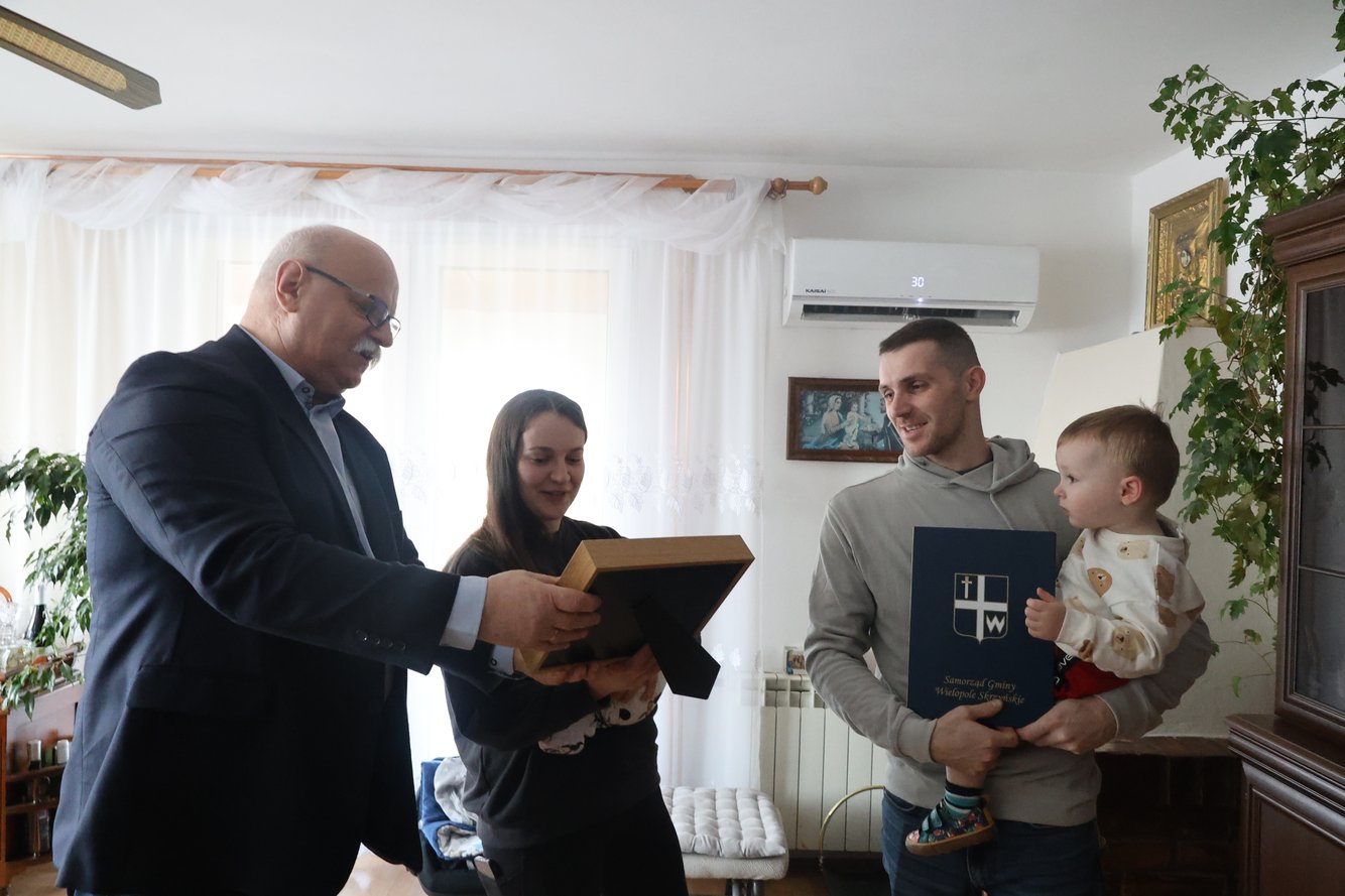 Wójt Gminy Wielopole Skrzyńskie Pan Marek Tęczar dwa lata temu zapoczątkował nowy zwyczaj odwiedzania pierwszego mieszkańca urodzonego w danym roku: „Odwiedzamy seniorów, jubilatów, myślę, że to dobry pomysł, abyśmy mogli też pogratulować rodzicom pierwszego urodzonego w naszej gminie mieszkańca”. Wójt Gminy przekazał na ręce rodziców serdeczne gratulacje z okazji narodzin syna.