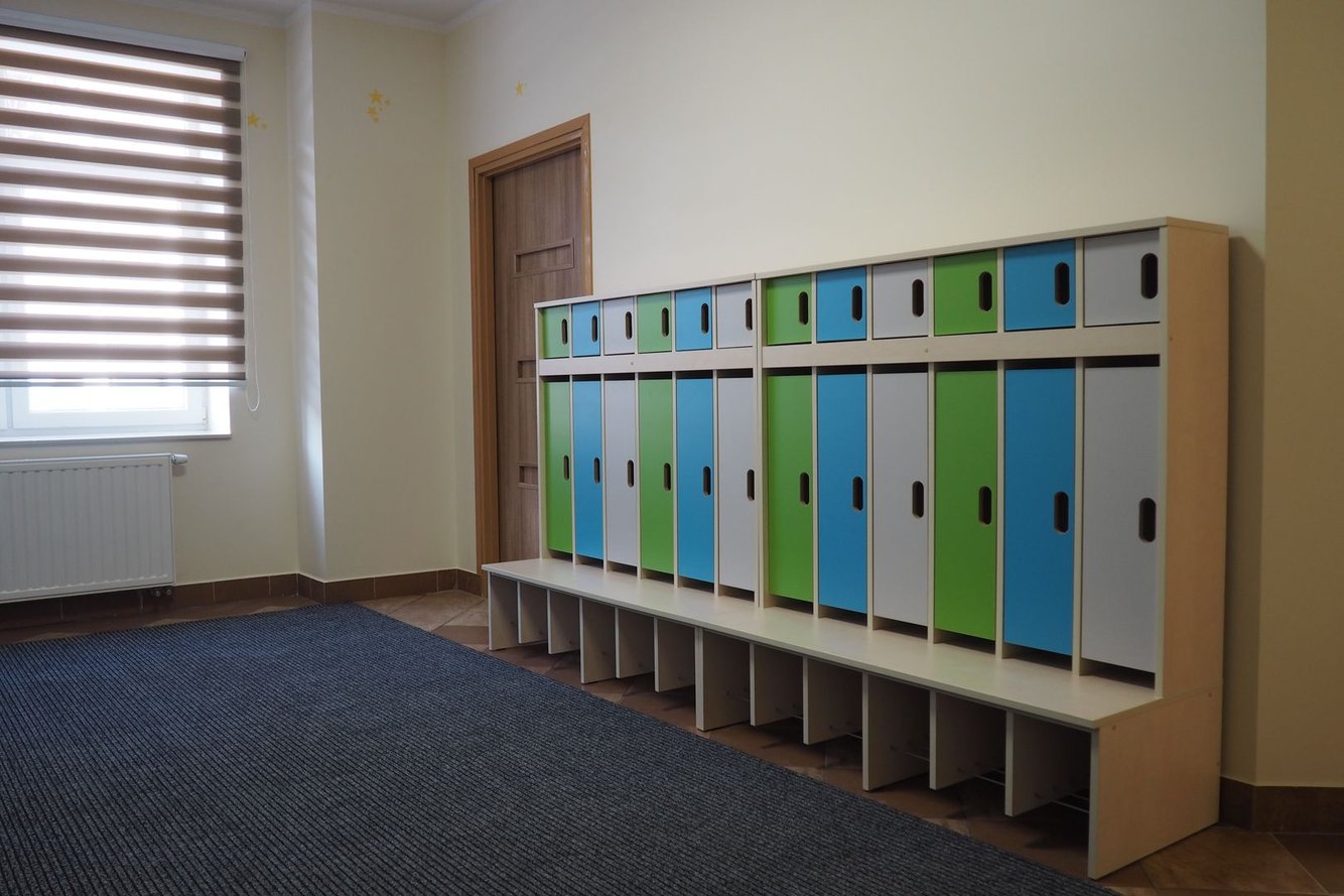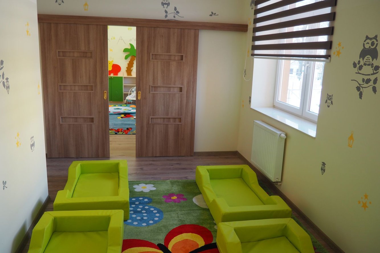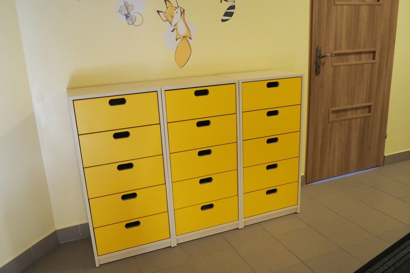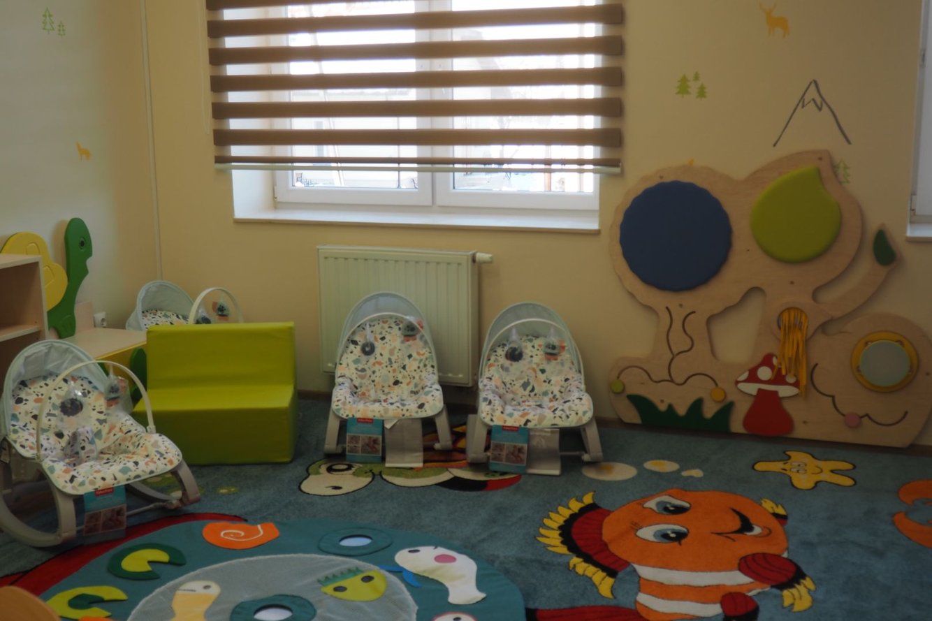 5. Zakup mebli. Zakupiono kompletne wyposażenie meblowe sali zabaw i sypialni dla dzieci m.in. szafy, komody, regały szatniowe dla dzieci i obsługi żłobka, dywany oraz gotowe zestawy zabawowe. Pomieszczenia Żłobka zostały wyposażone w nowe rolety i moskitiery.