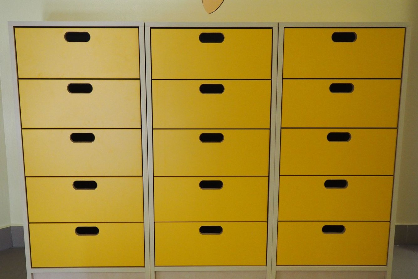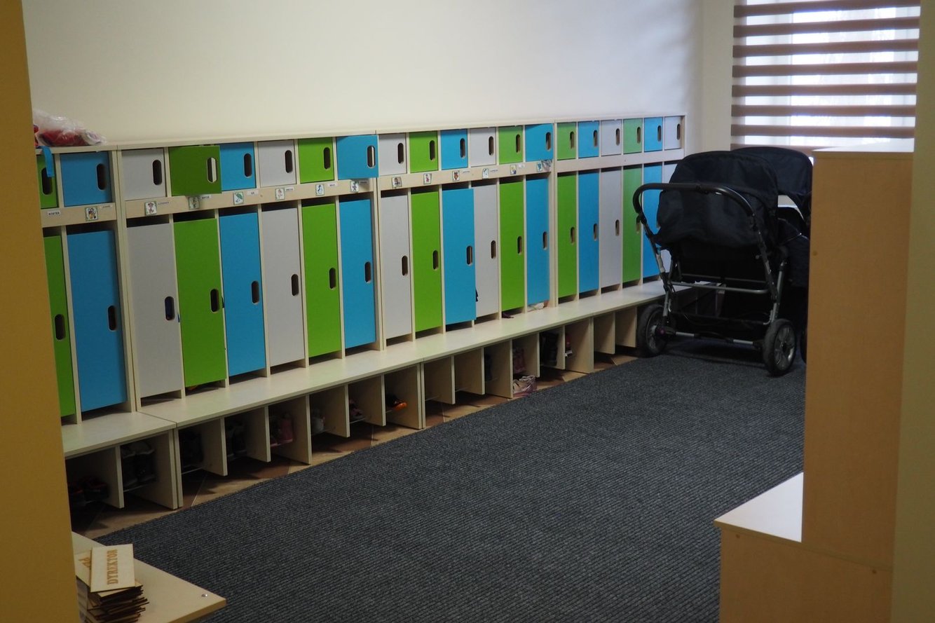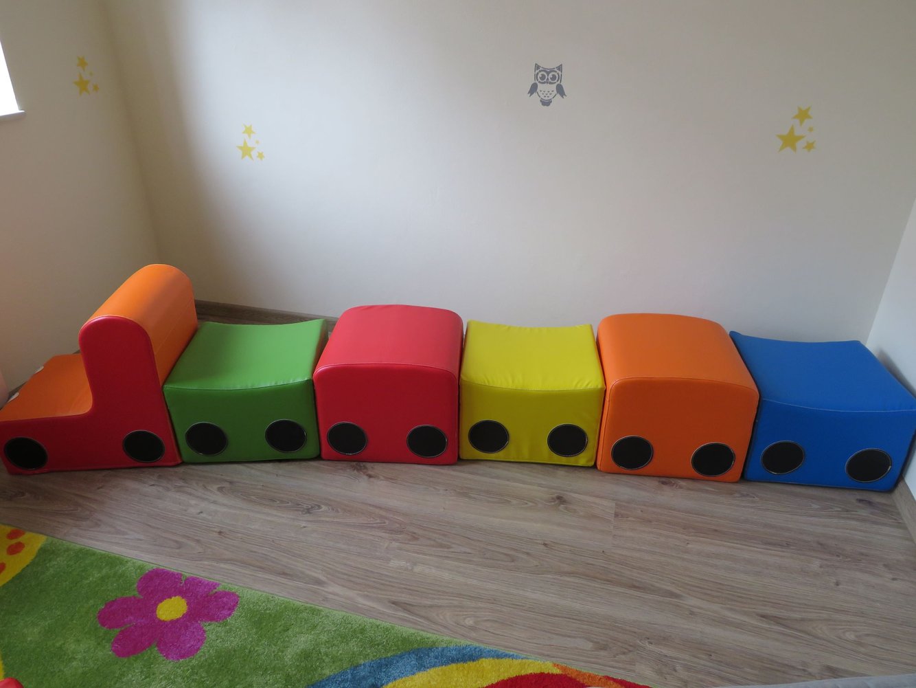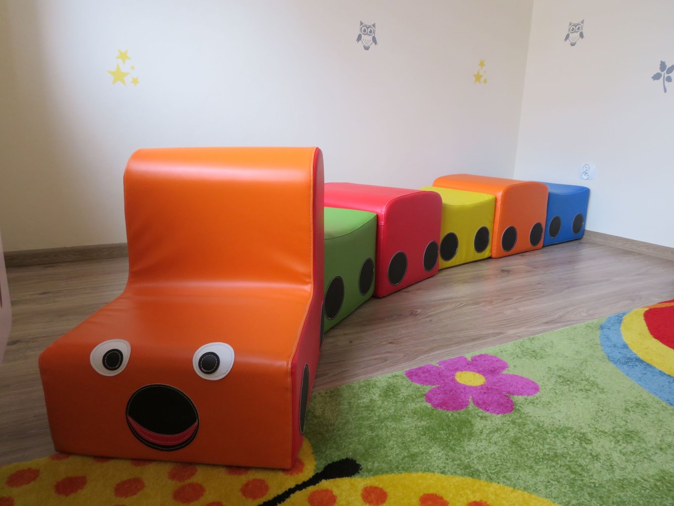 5. Zakup mebli. Zakupiono kompletne wyposażenie meblowe sali zabaw i sypialni dla dzieci m.in. szafy, komody, regały szatniowe dla dzieci i obsługi żłobka, dywany oraz gotowe zestawy zabawowe. Pomieszczenia Żłobka zostały wyposażone w nowe rolety i moskitiery.