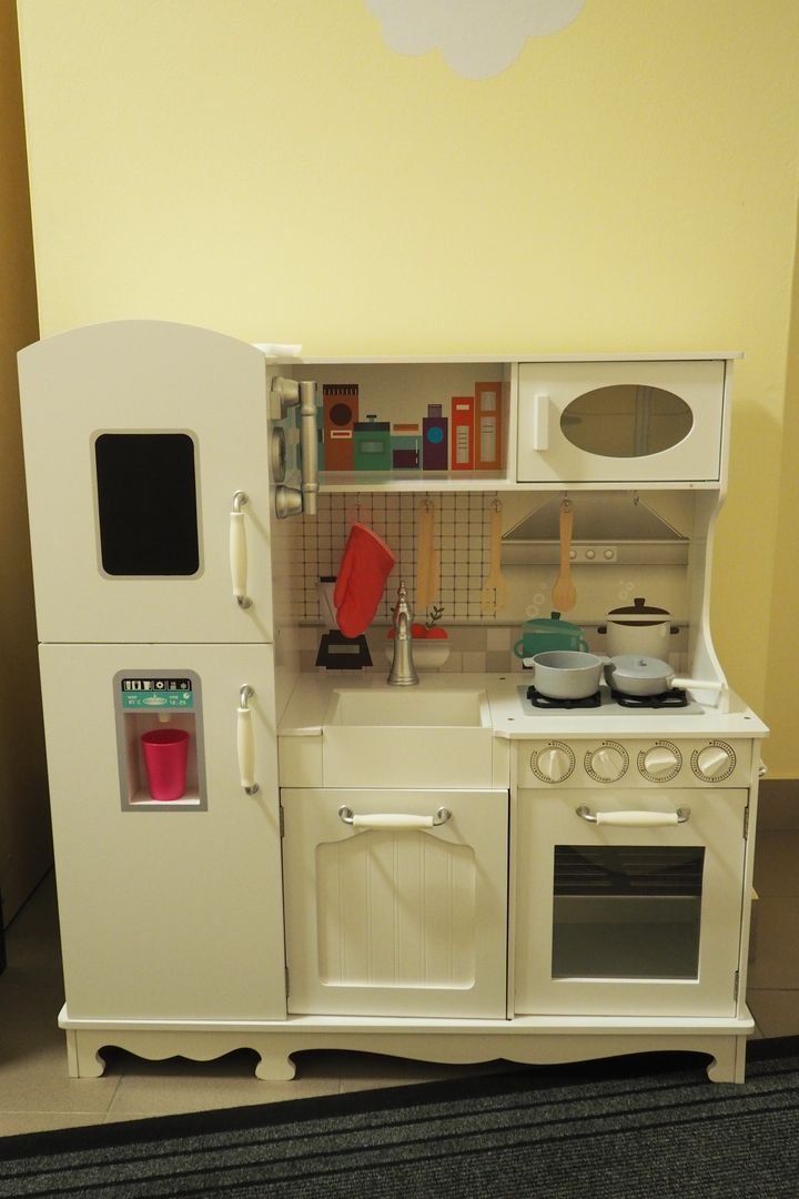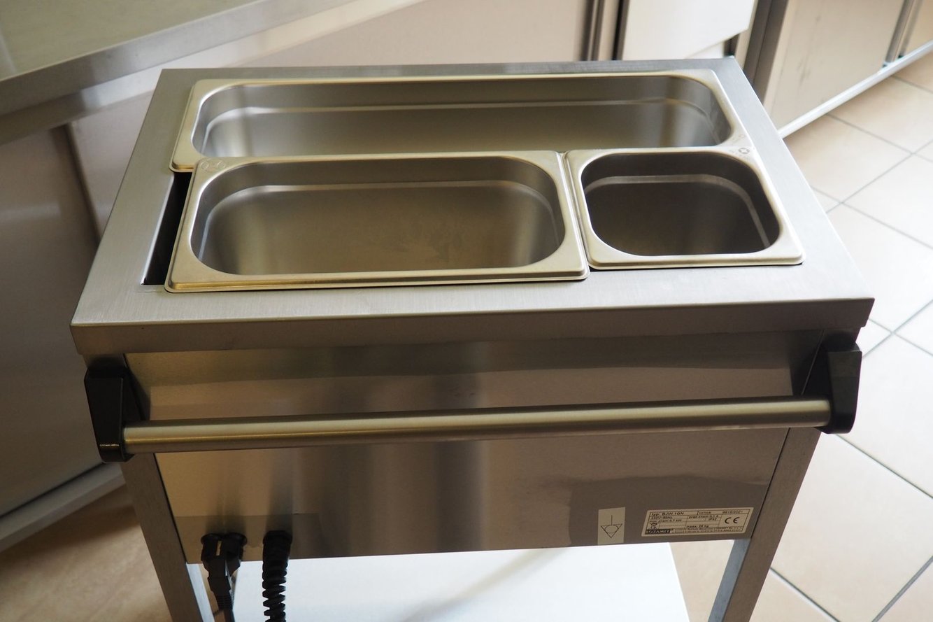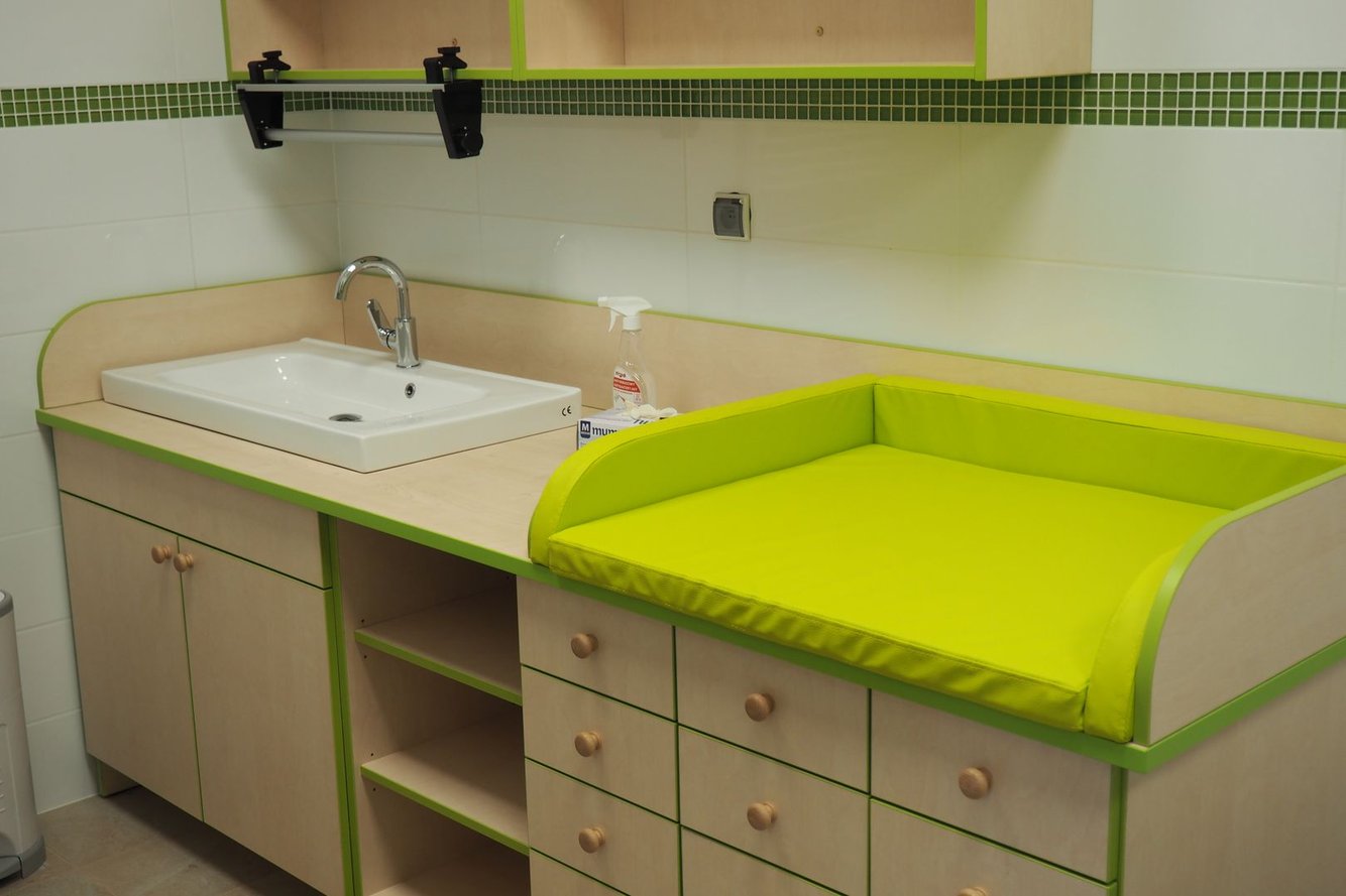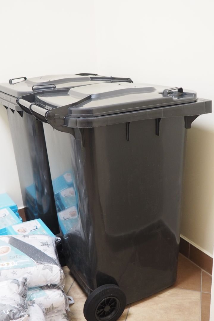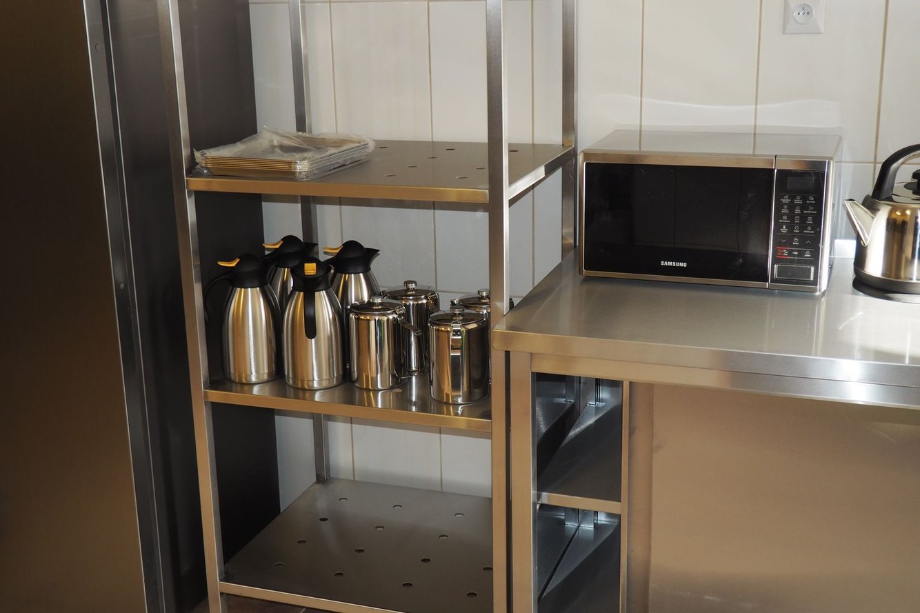 4.Wyposażenie zaplecza żłobka w tym zaplecza kuchni. Zakupiono meble ze stali nierdzewnej do kuchni, naczynia i sztućce do serwowania posiłków dla dzieci, brakujący sprzęt AGD (czajniki, warnik, profesjonalny blender, duża mikrofalówka, bemar jezdny, wózek kelnerski), a także sprzęt do sprzątania w formie profesjonalnego odkurzacza, myjki do okien, wózka do sprzątania , mopów, pojemników na odpady.