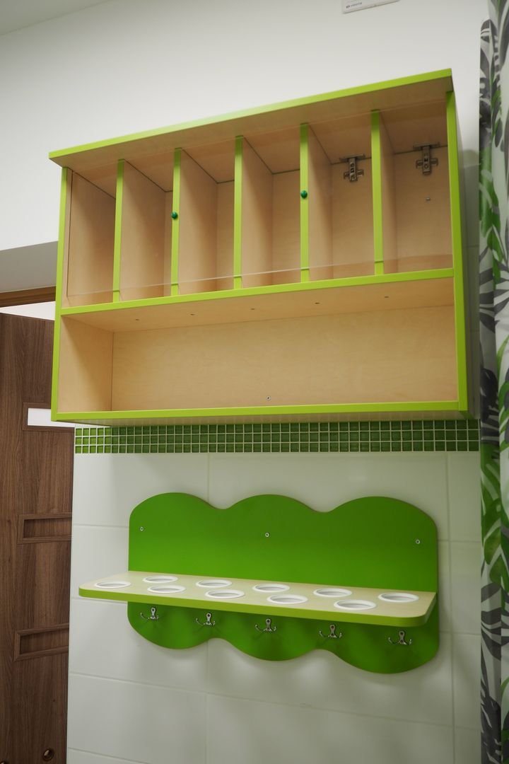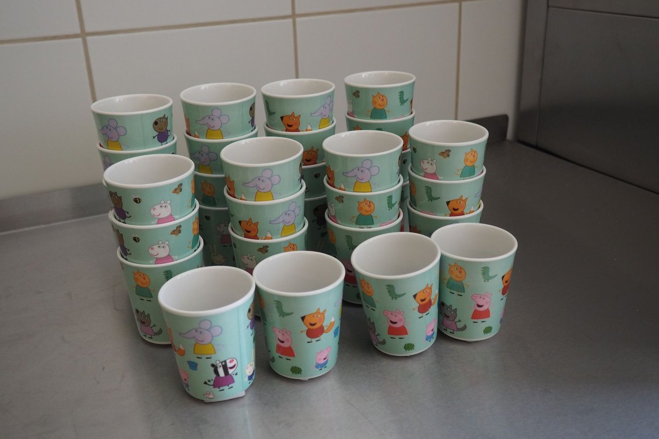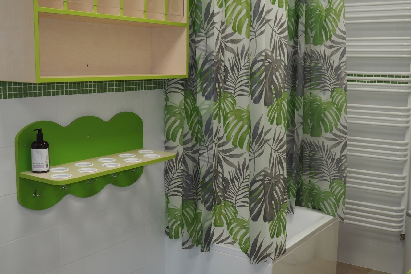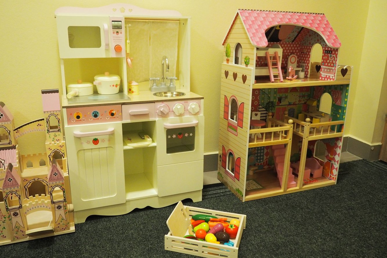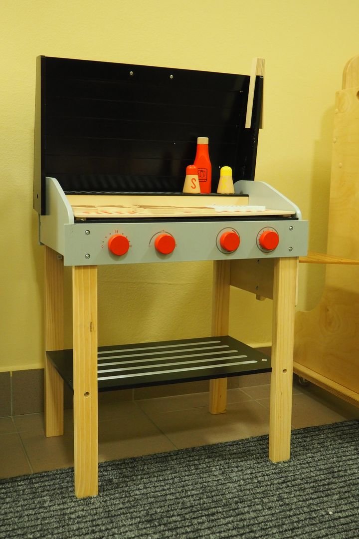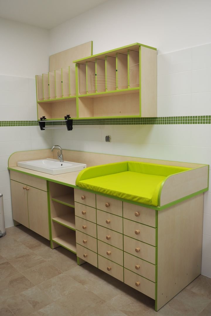 4.Wyposażenie zaplecza żłobka w tym zaplecza kuchni. Zakupiono meble ze stali nierdzewnej do kuchni, naczynia i sztućce do serwowania posiłków dla dzieci, brakujący sprzęt AGD (czajniki, warnik, profesjonalny blender, duża mikrofalówka, bemar jezdny, wózek kelnerski), a także sprzęt do sprzątania w formie profesjonalnego odkurzacza, myjki do okien, wózka do sprzątania , mopów, pojemników na odpady.