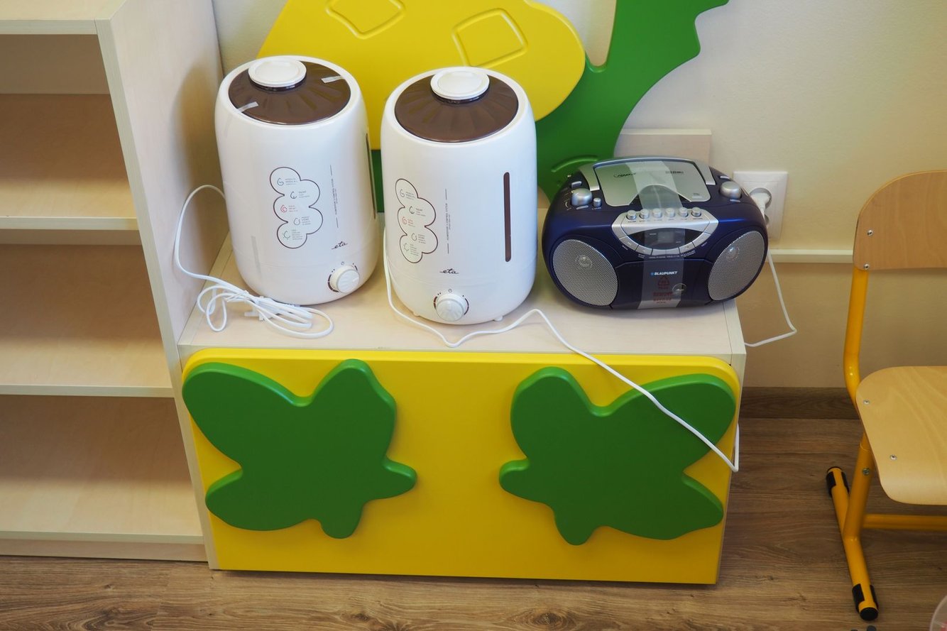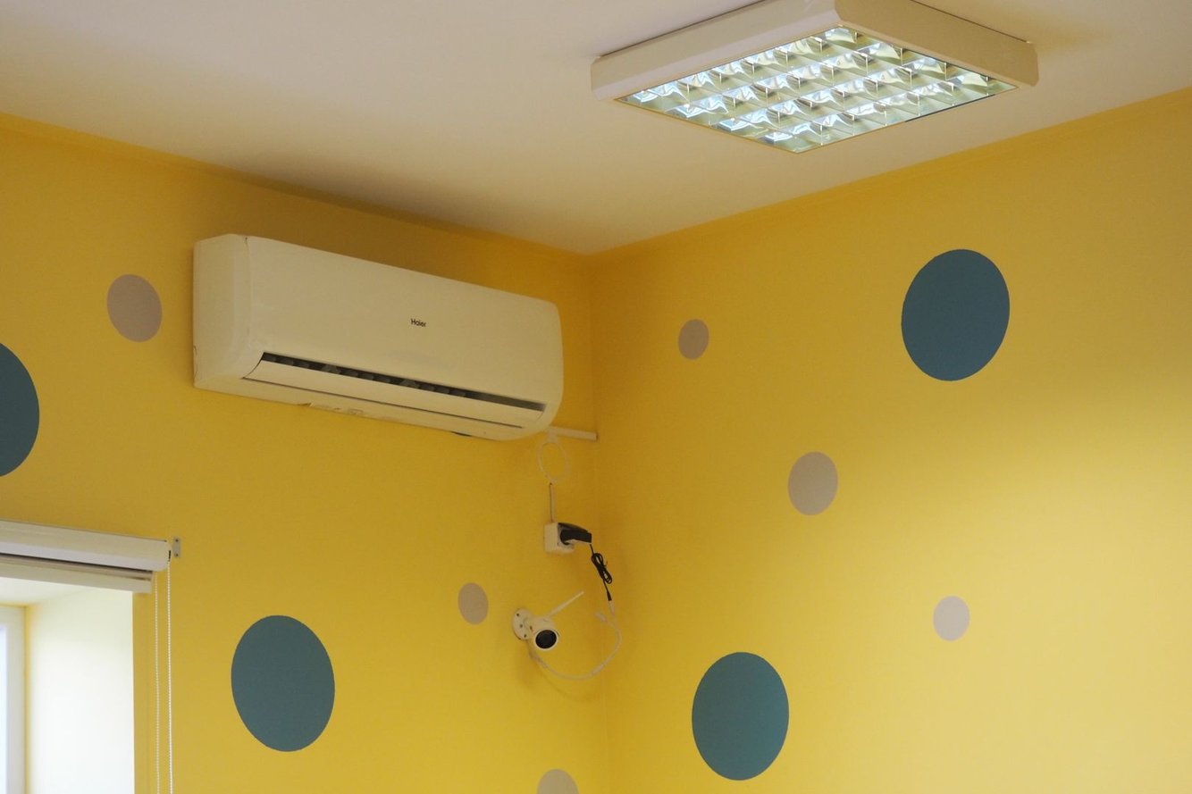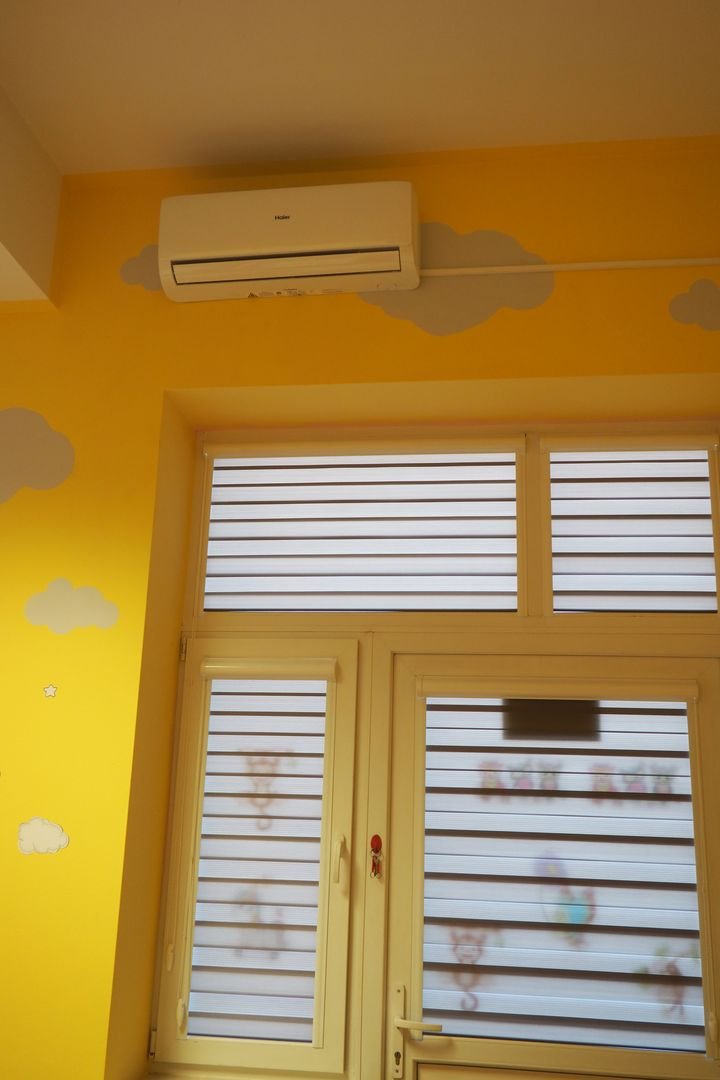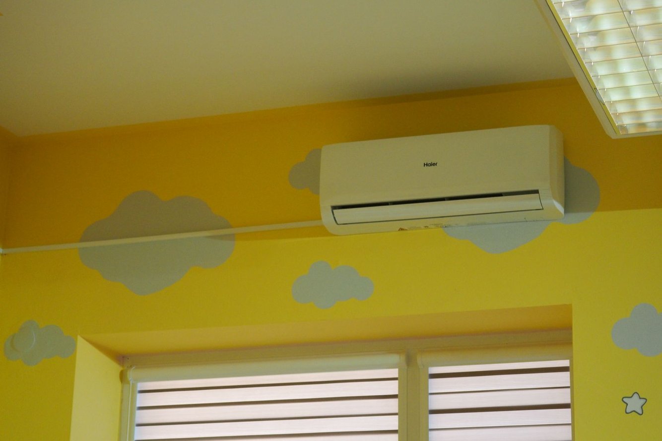 1. Montaż systemu klimatyzacji w pomieszczeniach żłobka – w salach zabaw i sypialniach w których przebywają dzieci zamontowano klimatyzację.