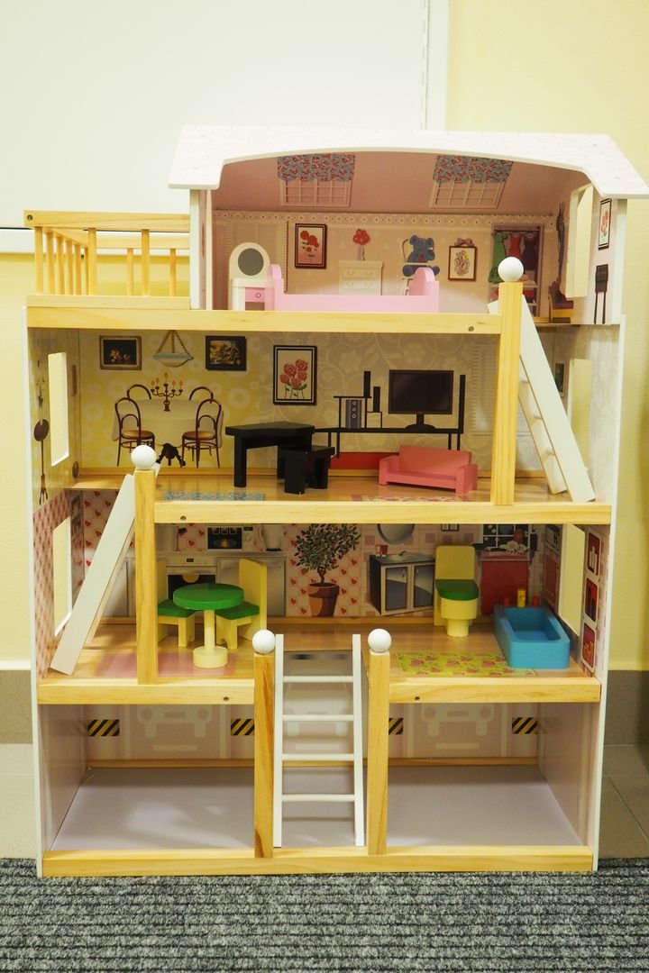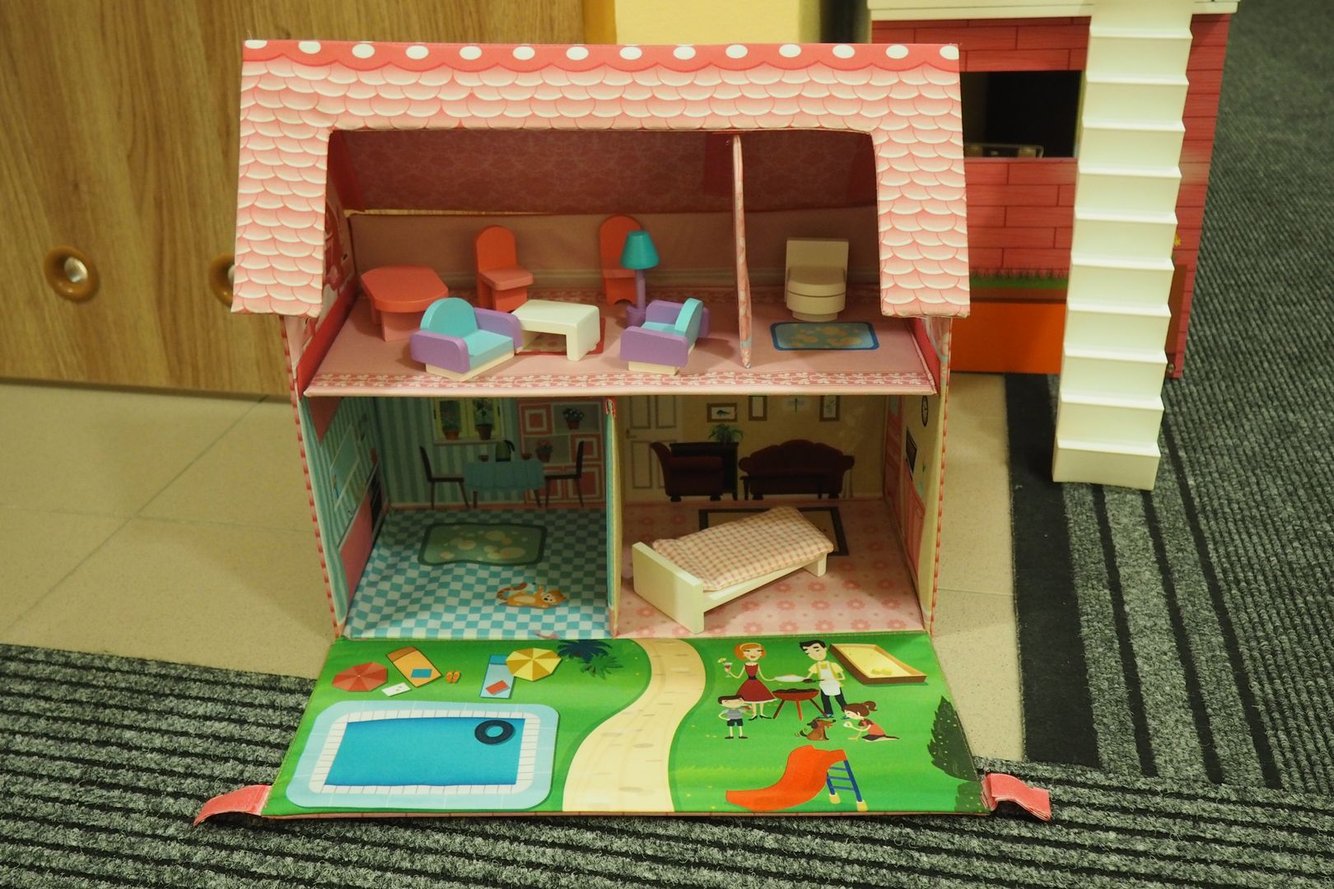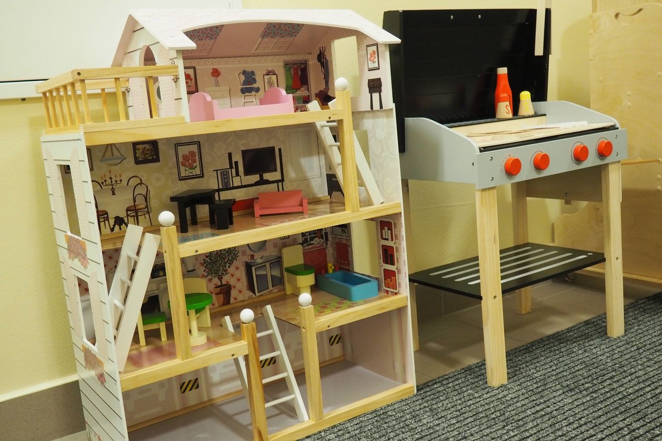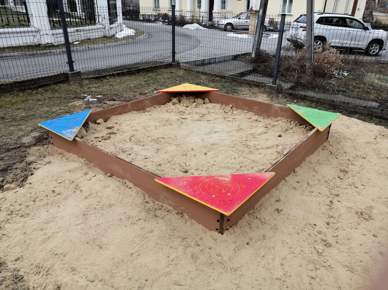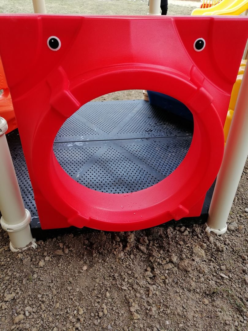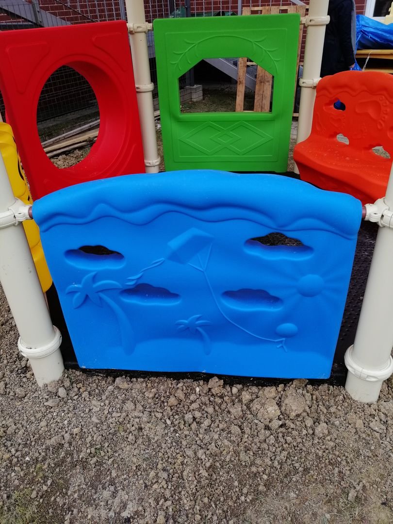 8. Ostatnim etapem będzie doposażenie przy żłobkowego placu zabaw. Zostały zamówione dwa zestawy zabawowe ze zjeżdżalniami, domek oraz ławeczki i stoliki ogrodowe dla dzieci.