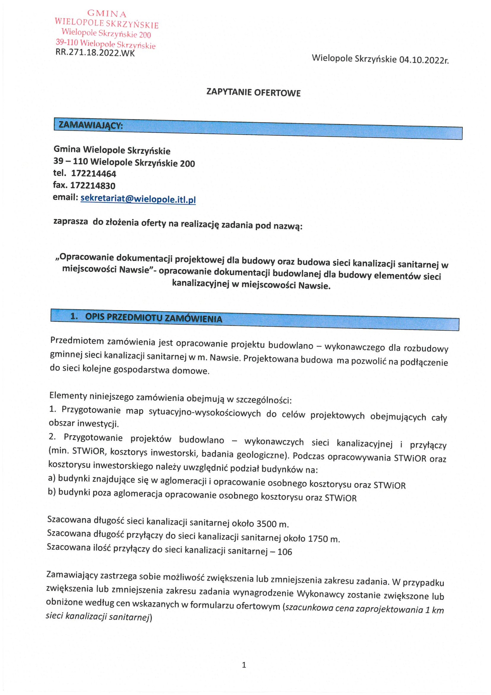 Zapytanie Ofertowe RR.271.18.2022.WK