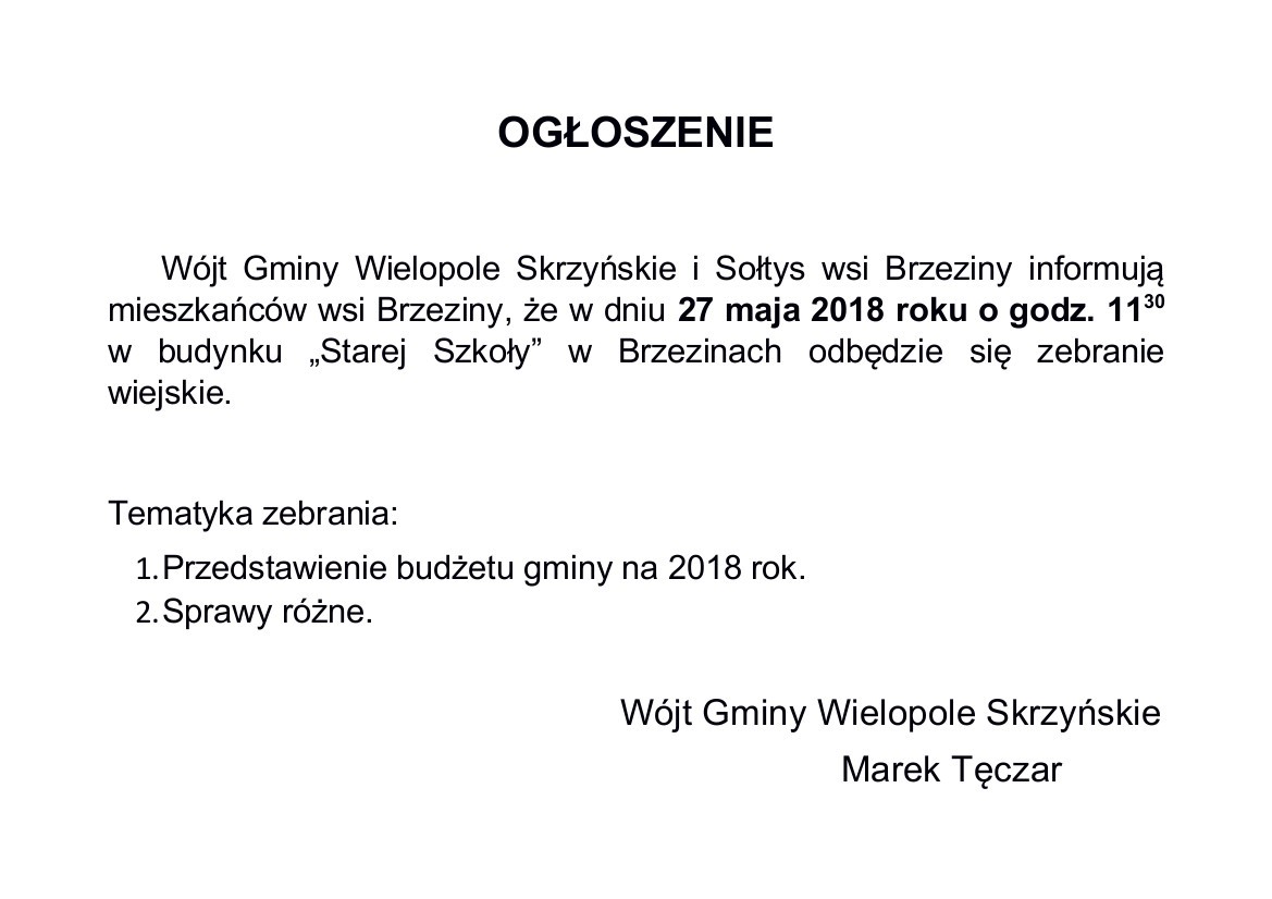 Zebranie dla Mieszkańców sołectwa Brzeziny