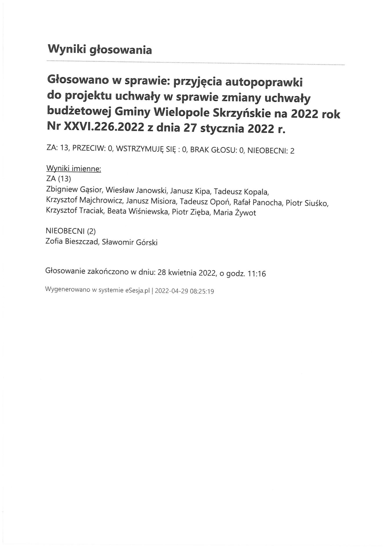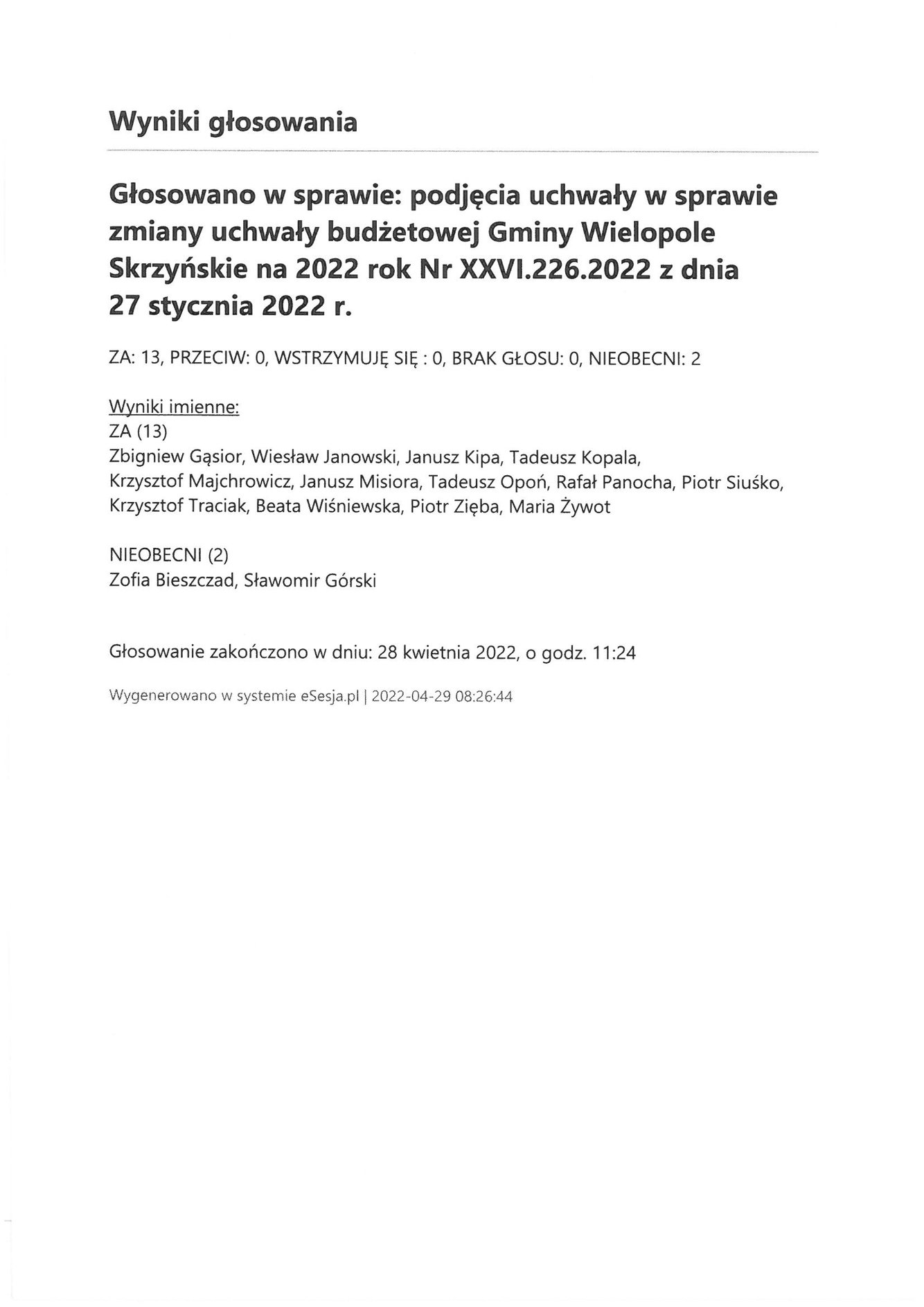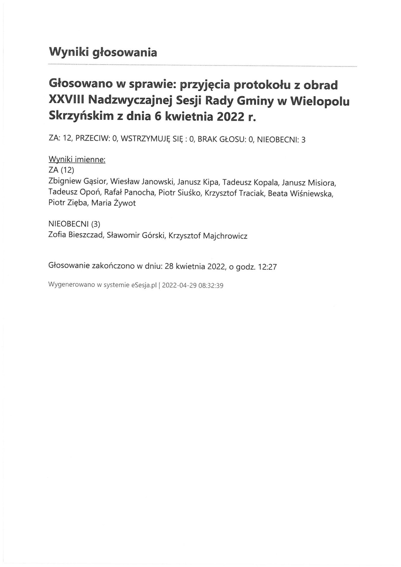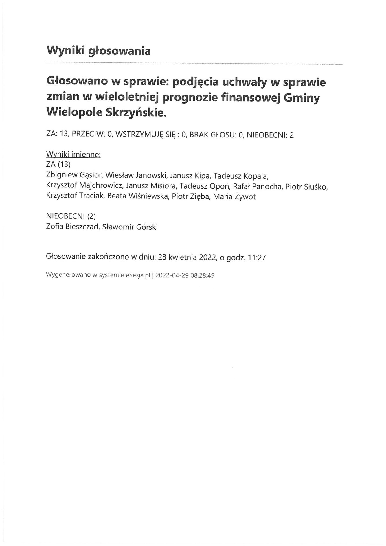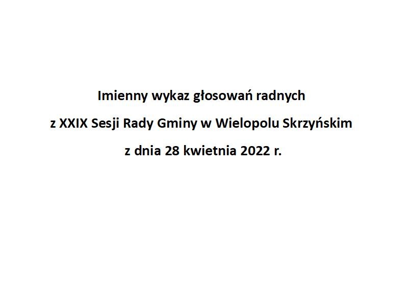 Piątek 29 kwietnia 2022 Imienny wykaz głosowań radnych Strona Główna/Informator/InformacjeImienny wykaz głosowań radnychImienny wykaz głosowań radnych