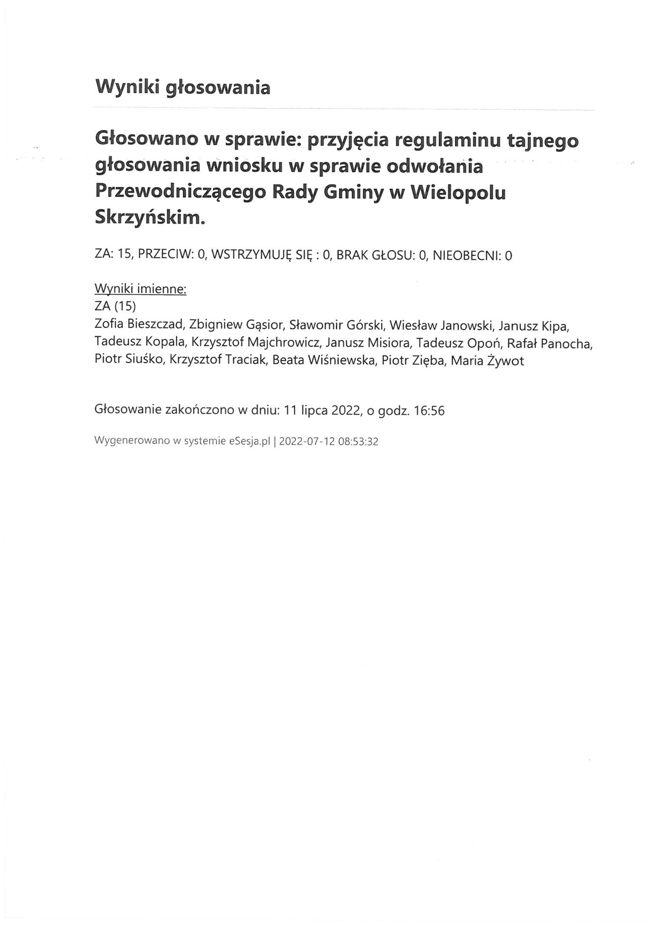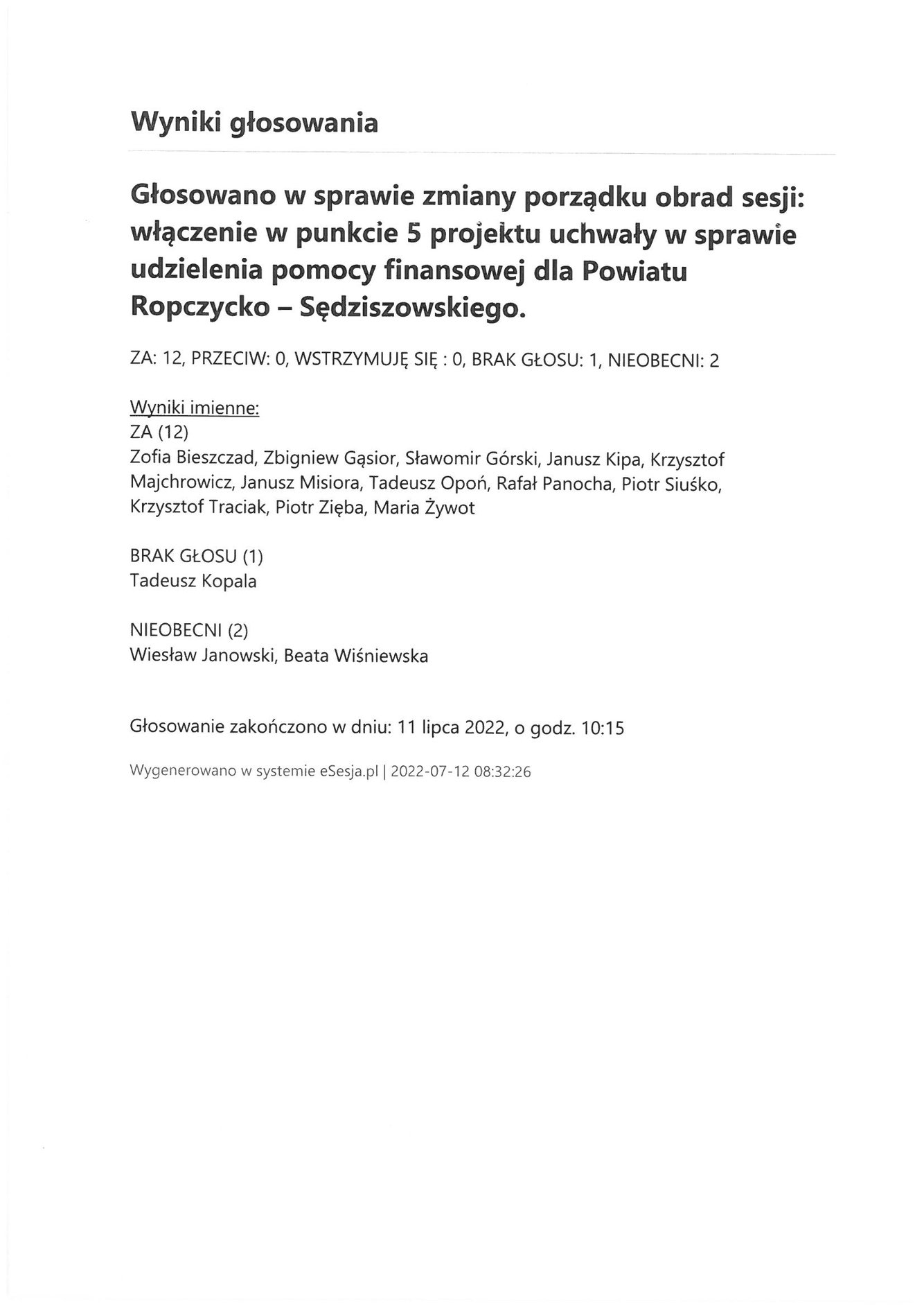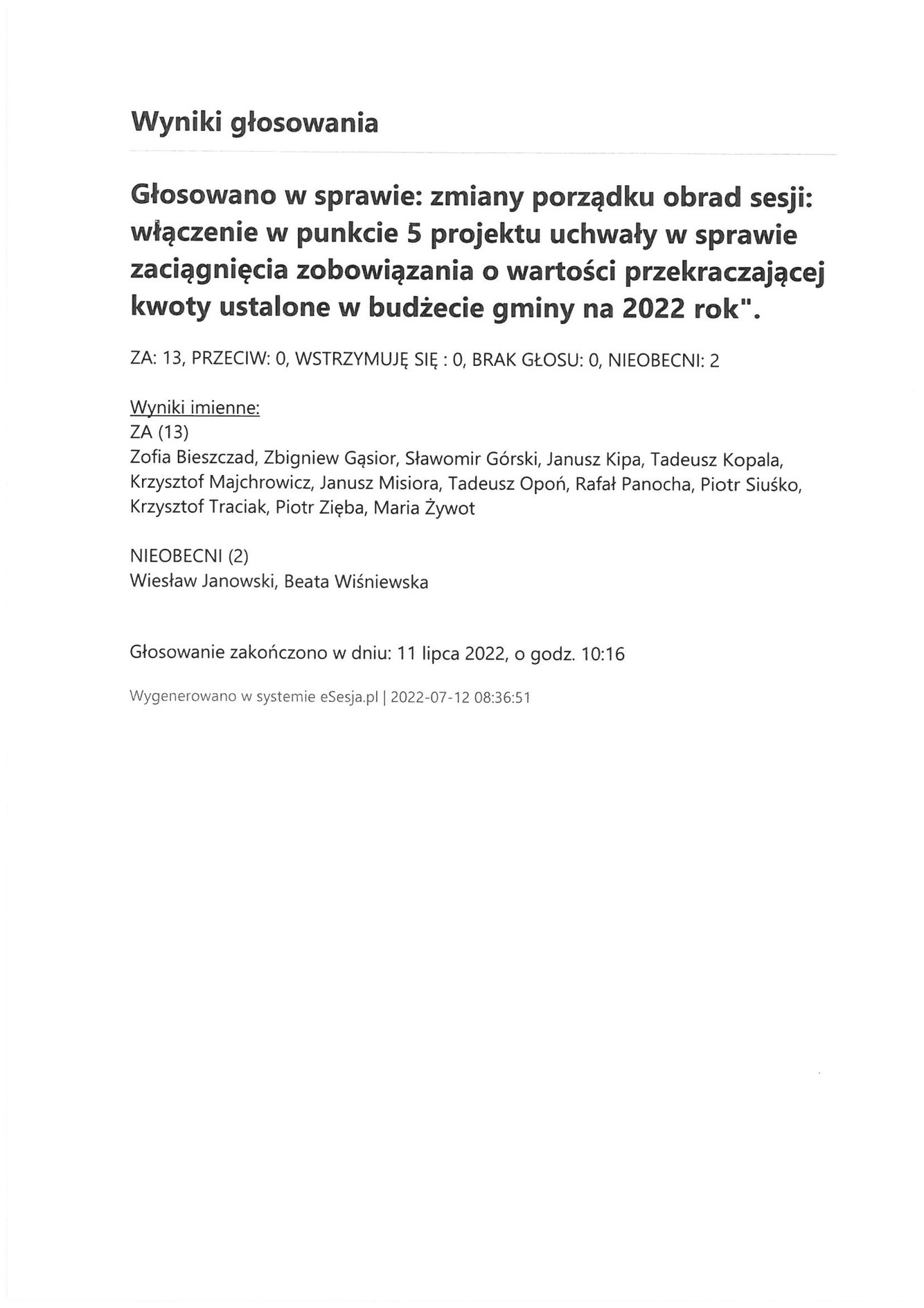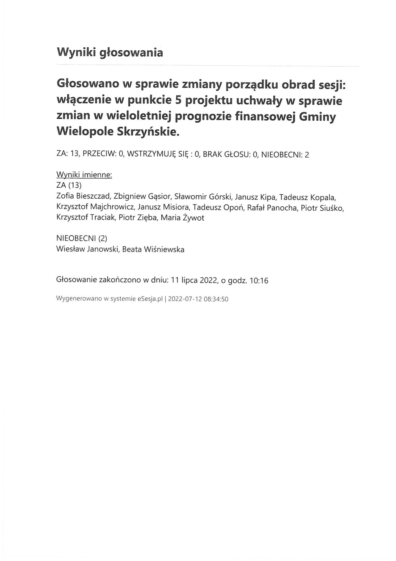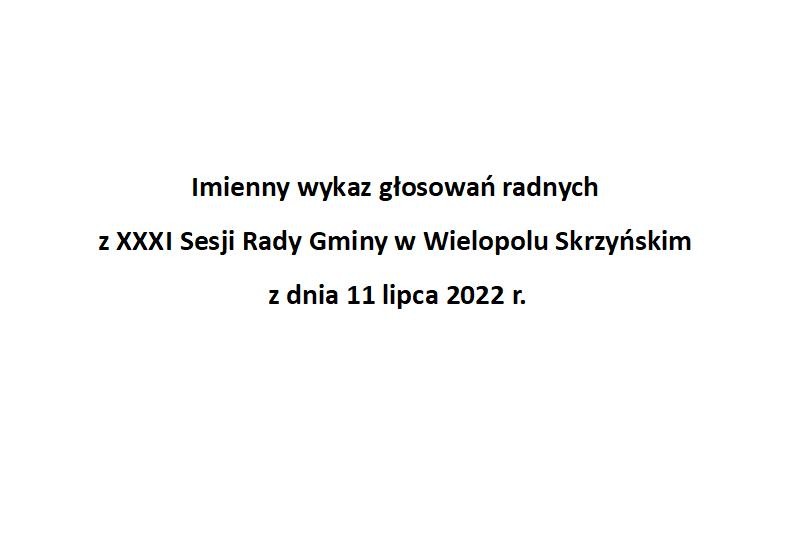 Wtorek 12 lipca 2022 Imienny wykaz głosowań radnych Strona Główna/Informator/InformacjeImienny wykaz głosowań radnychImienny wykaz głosowań radnych