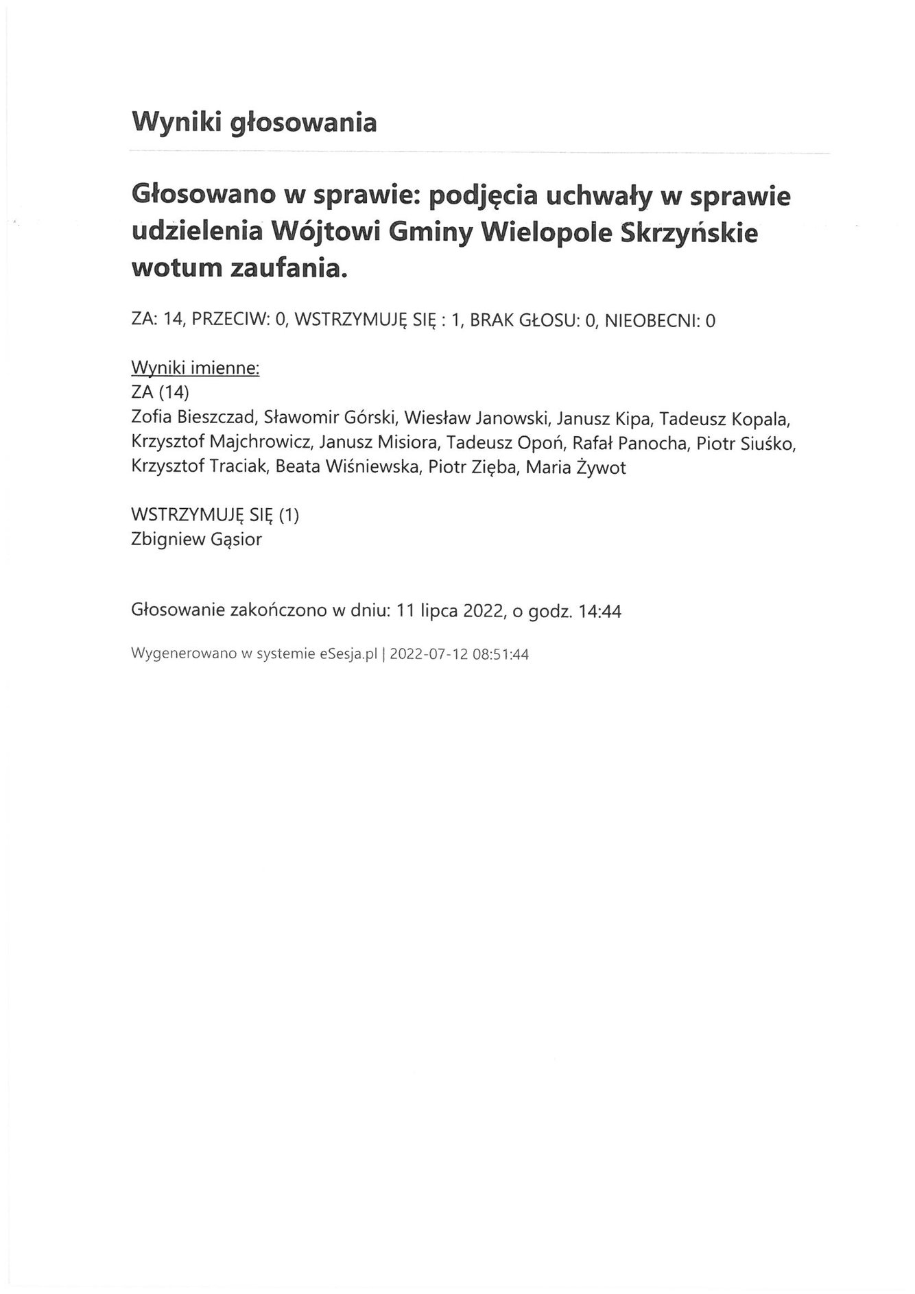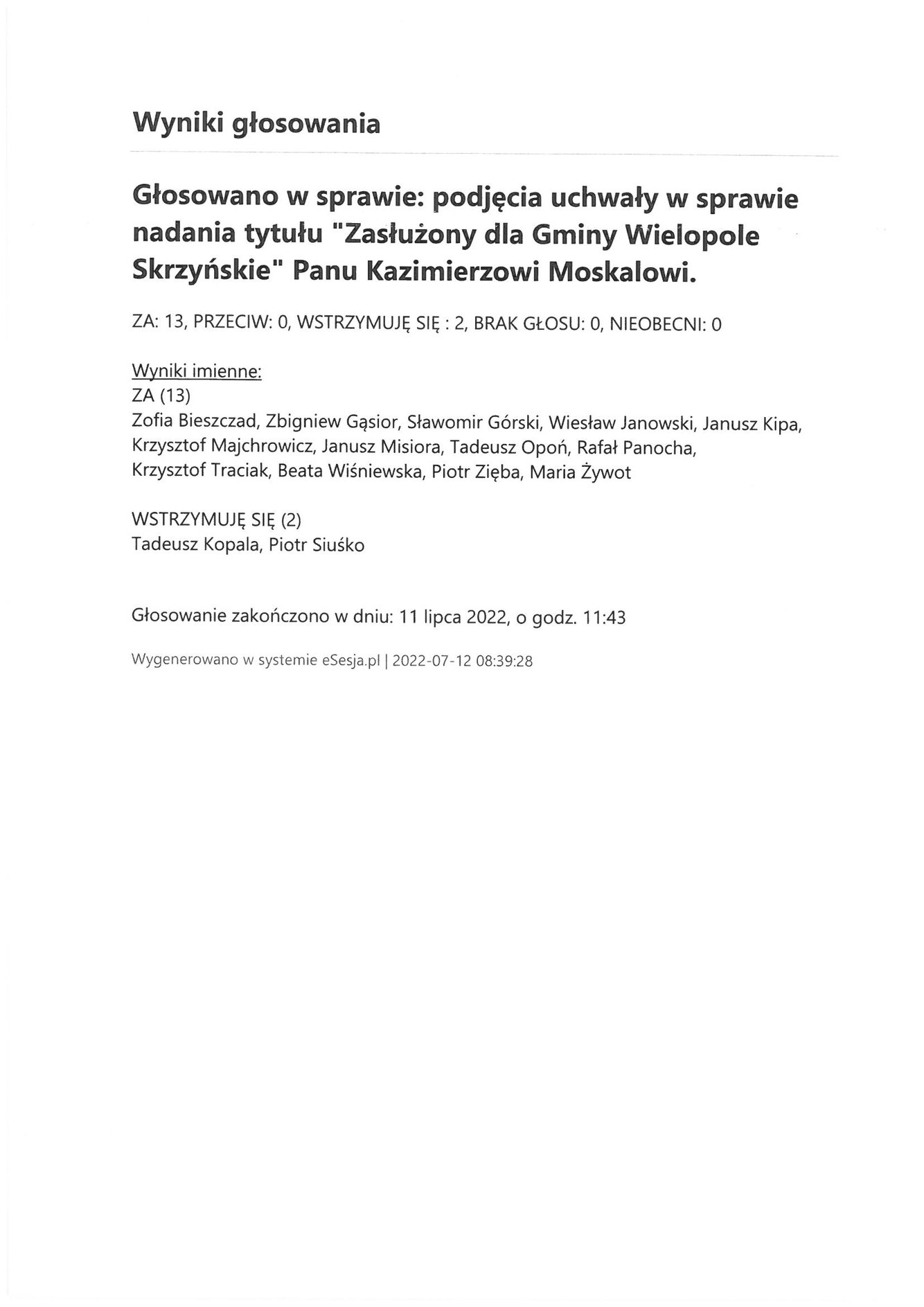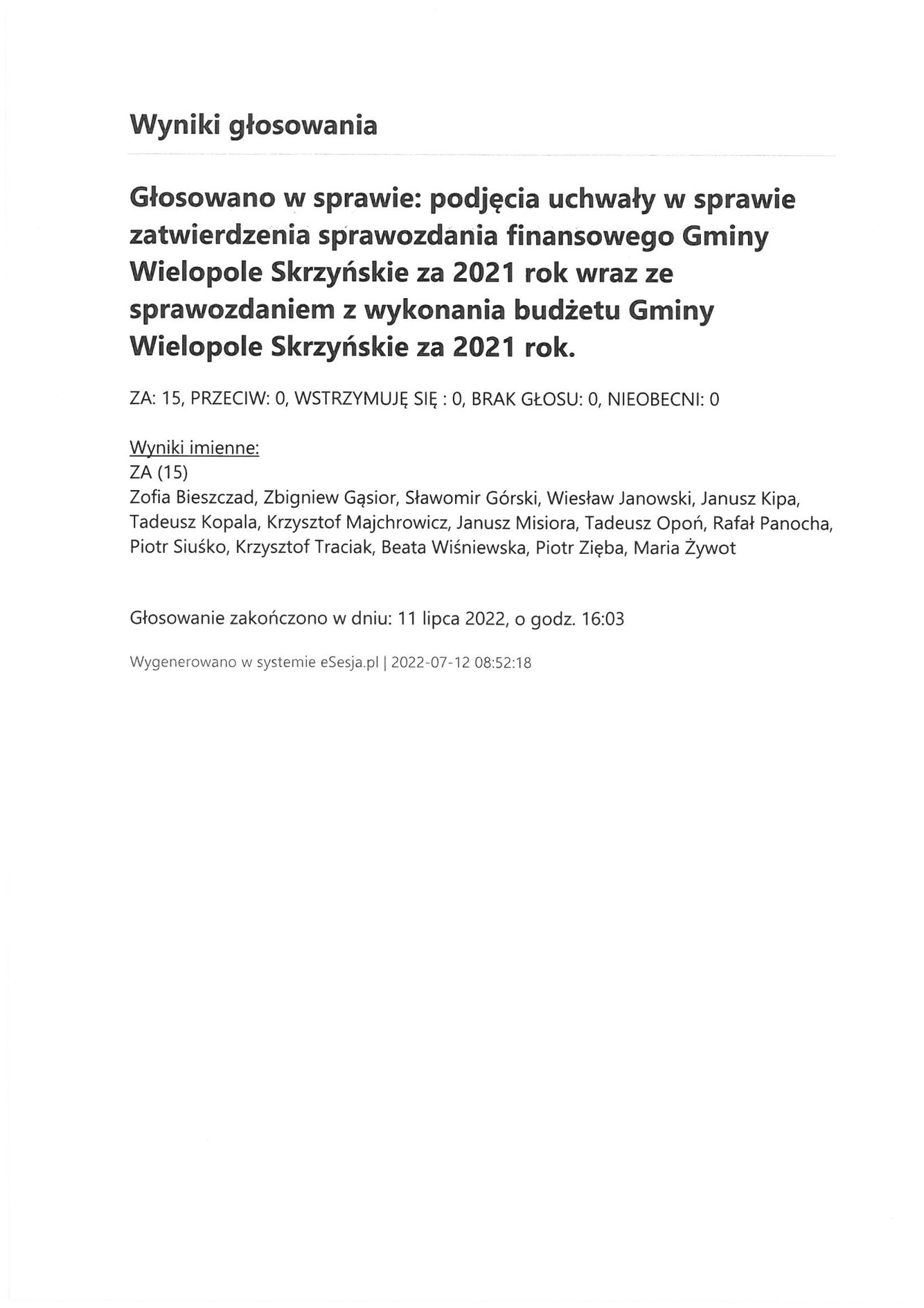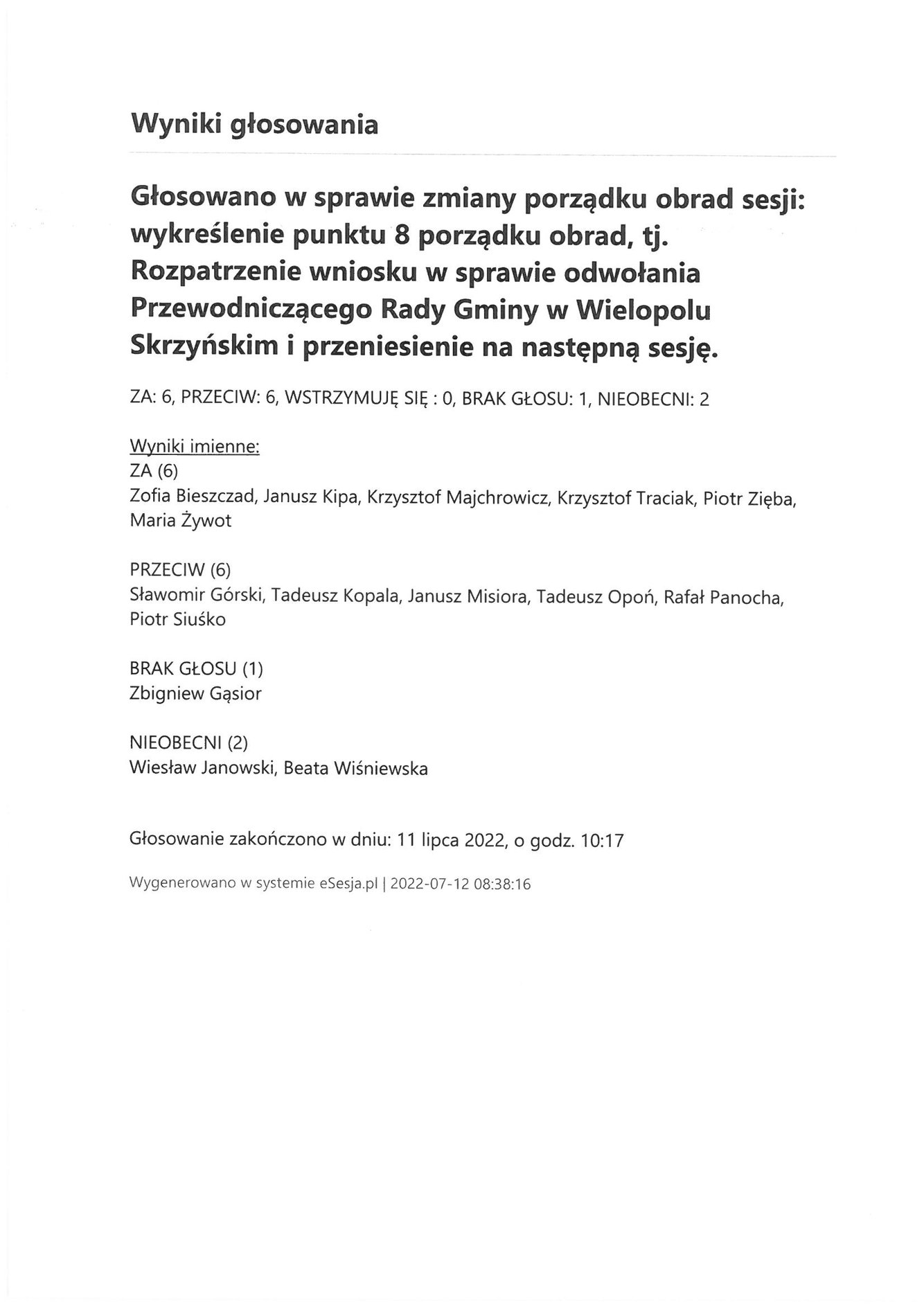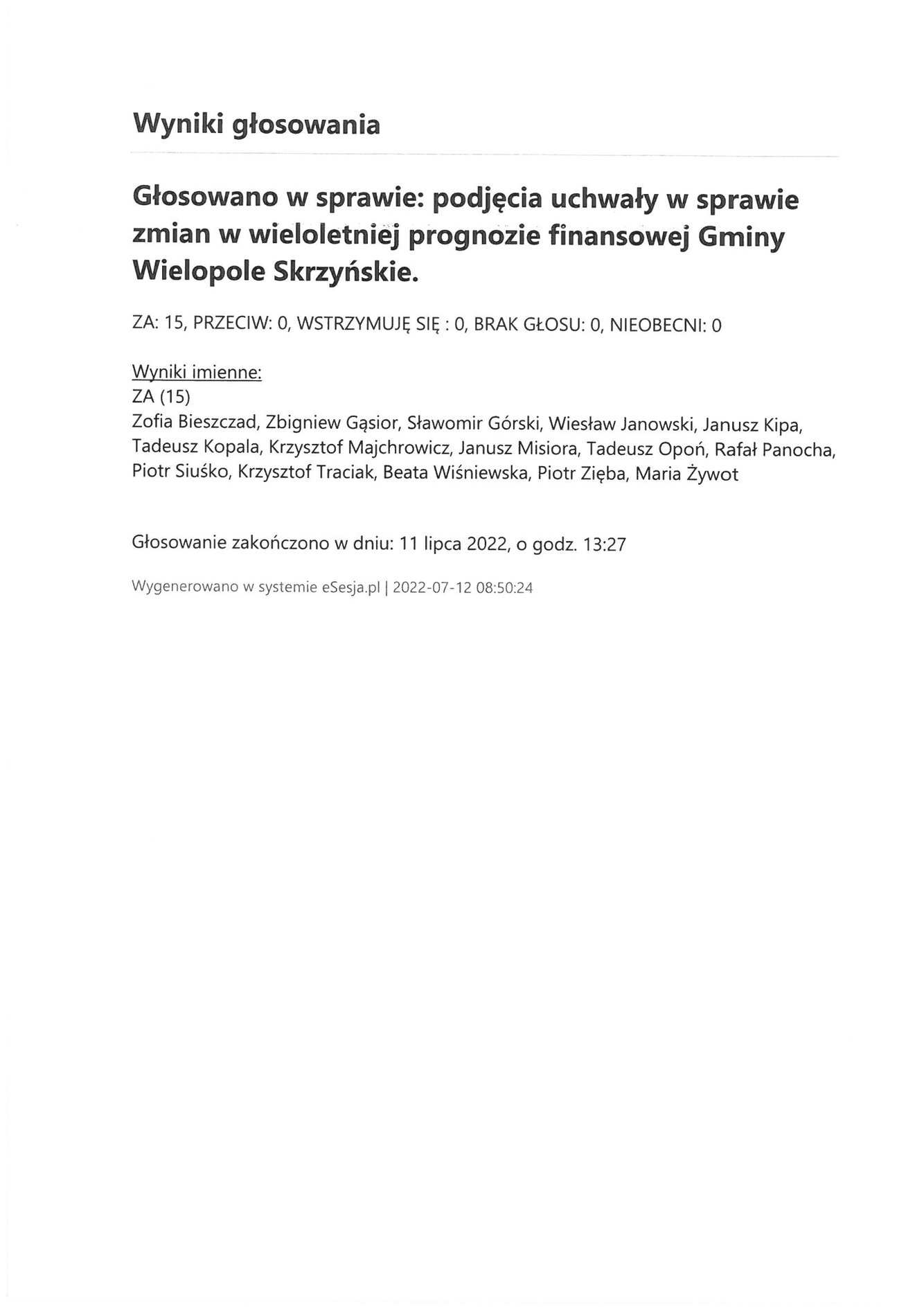 Wtorek 12 lipca 2022 Imienny wykaz głosowań radnych Strona Główna/Informator/InformacjeImienny wykaz głosowań radnychImienny wykaz głosowań radnych