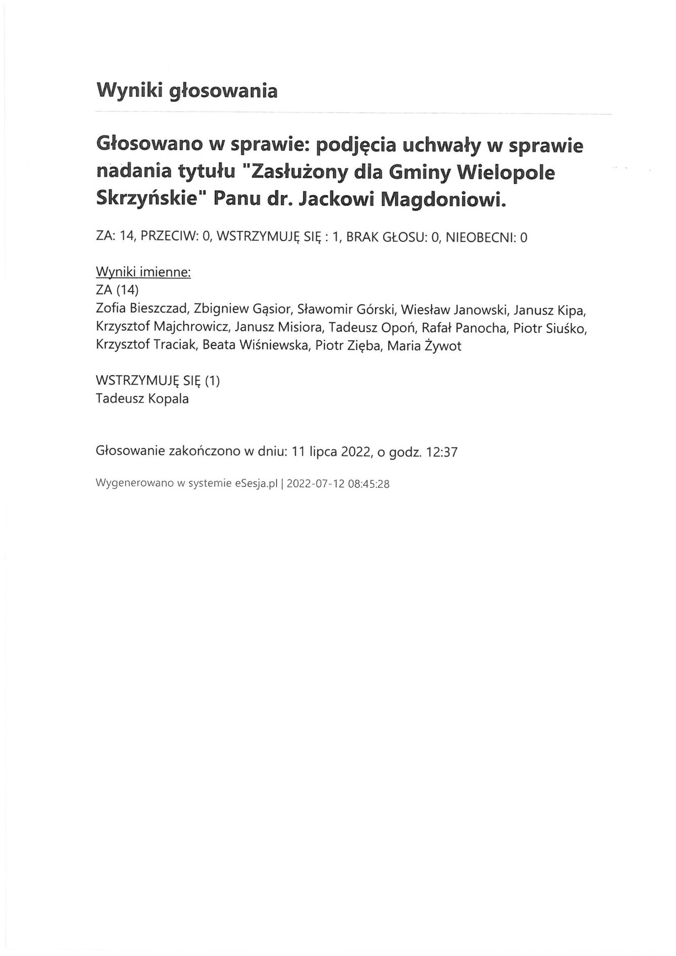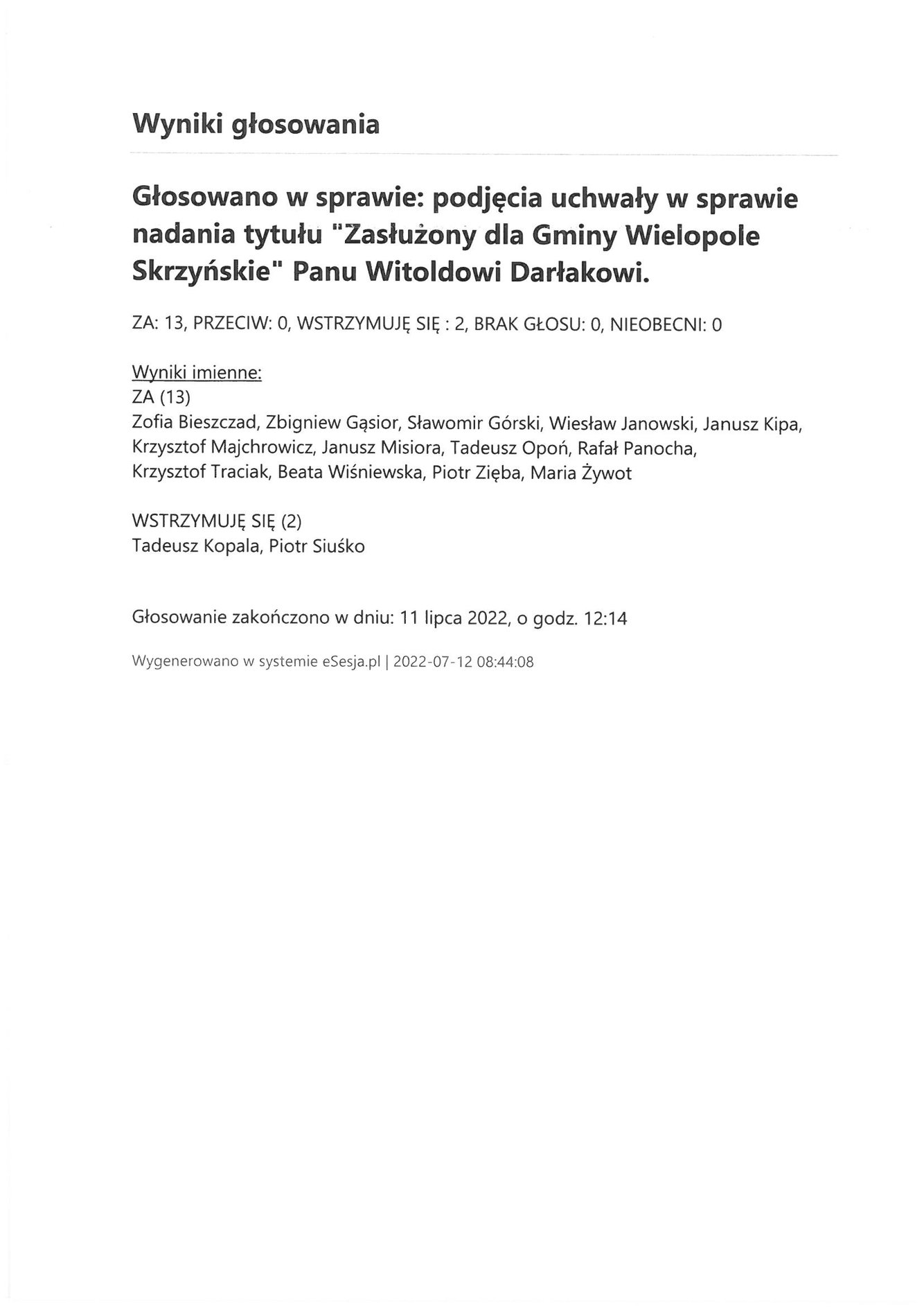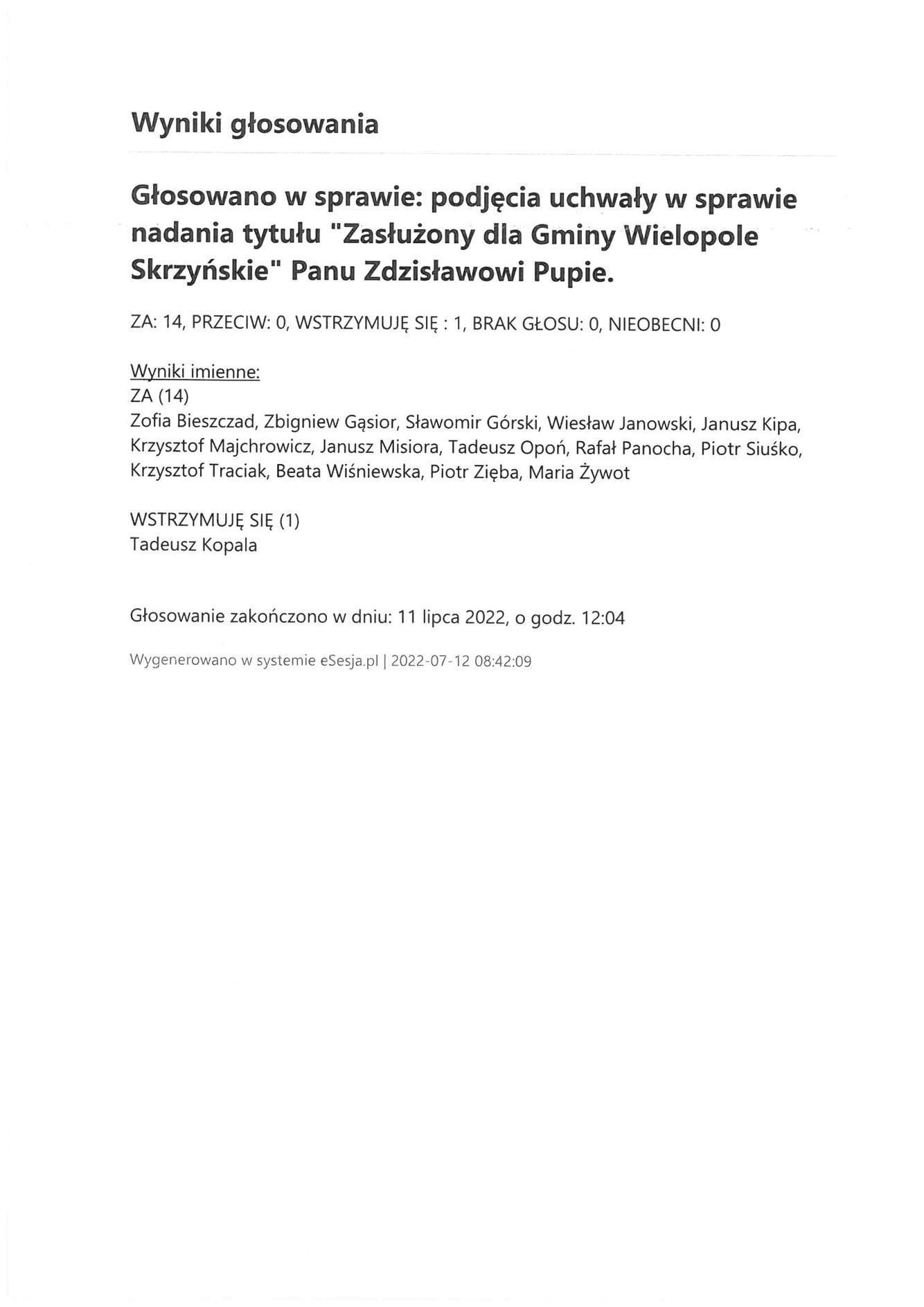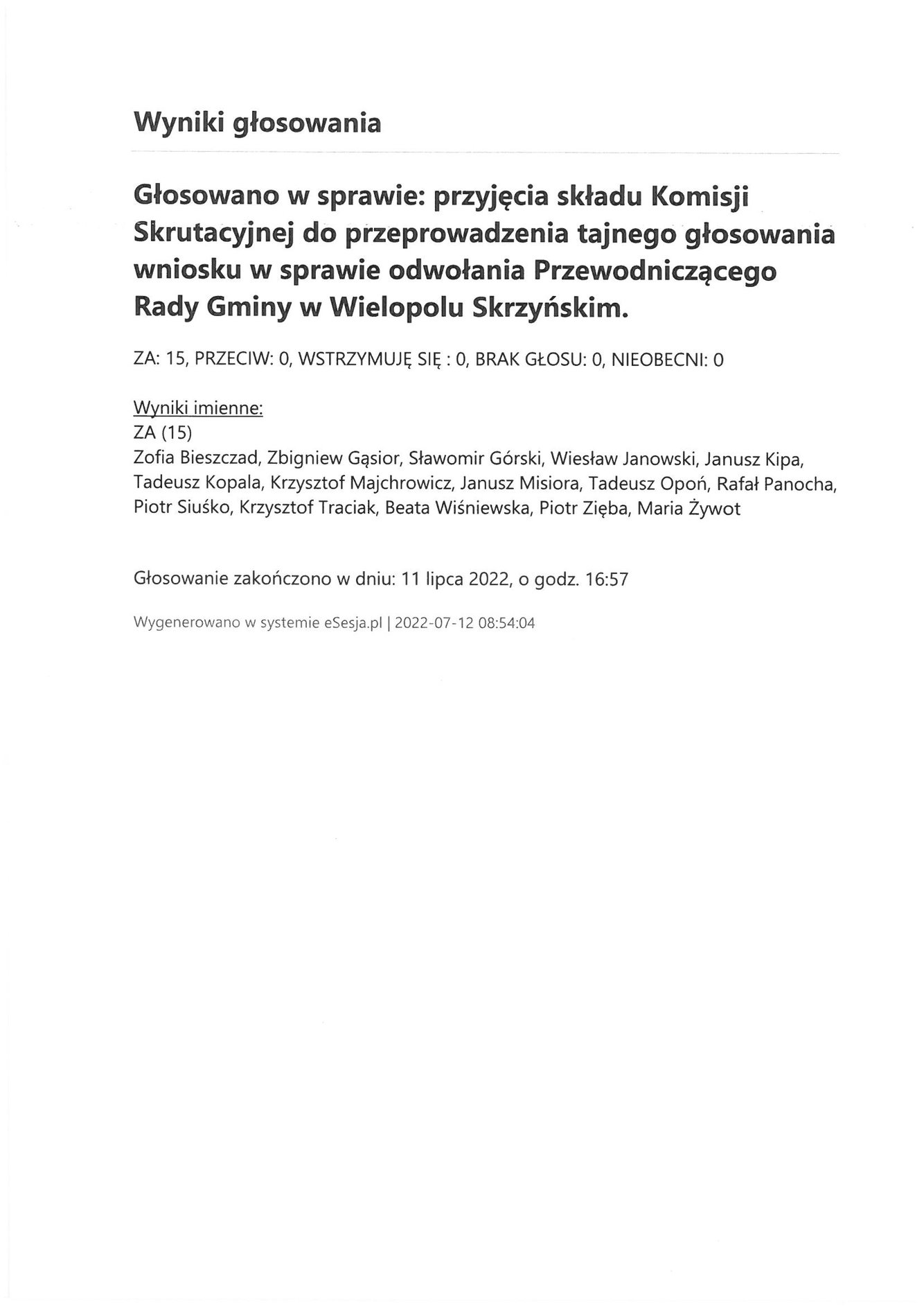 Wtorek 12 lipca 2022 Imienny wykaz głosowań radnych Strona Główna/Informator/InformacjeImienny wykaz głosowań radnychImienny wykaz głosowań radnych