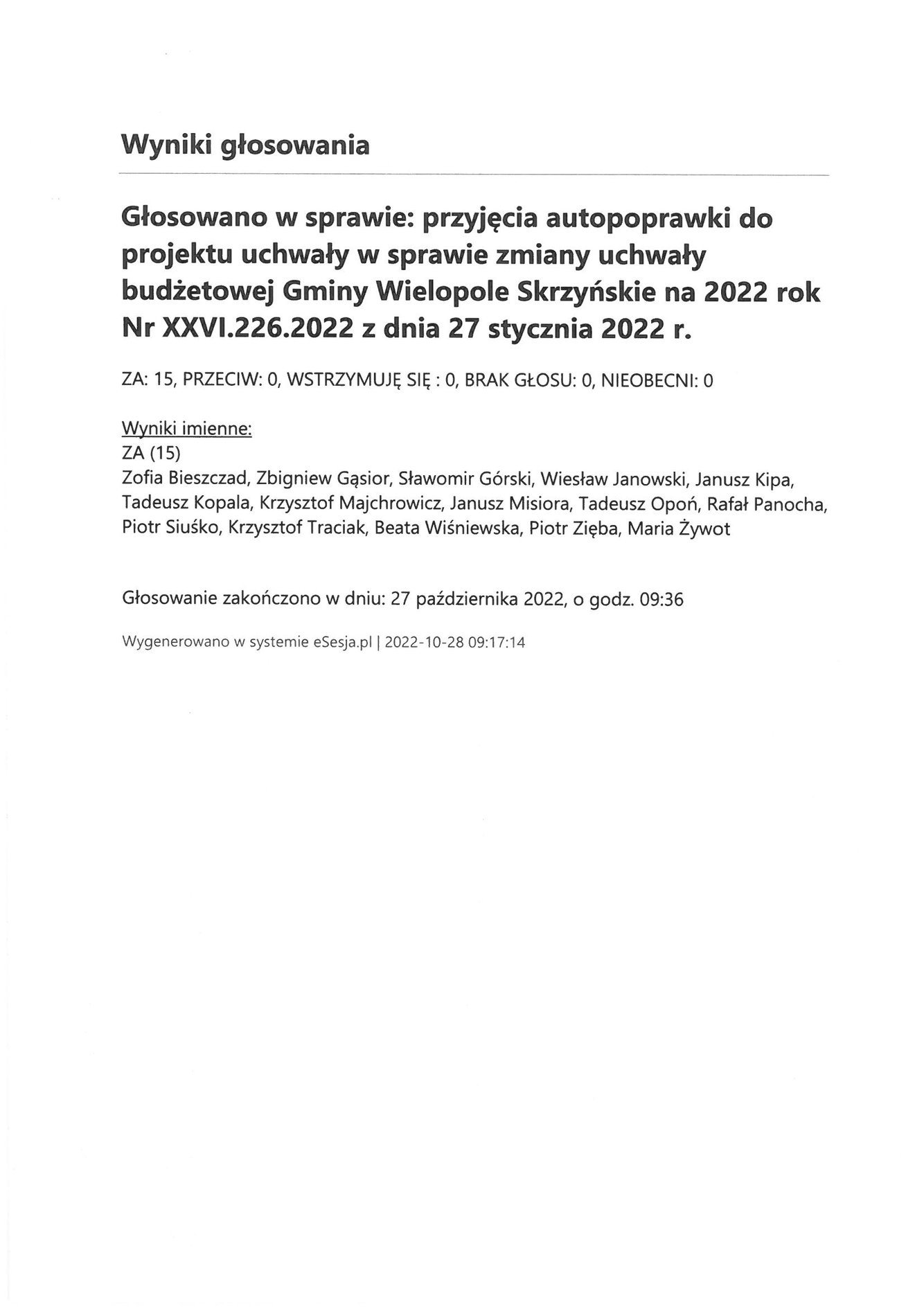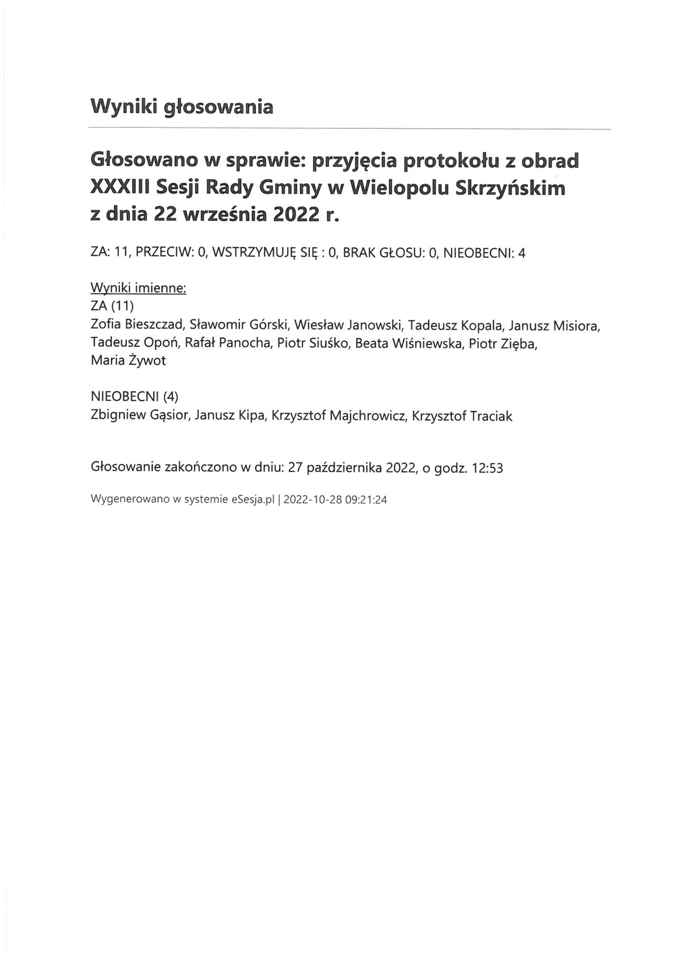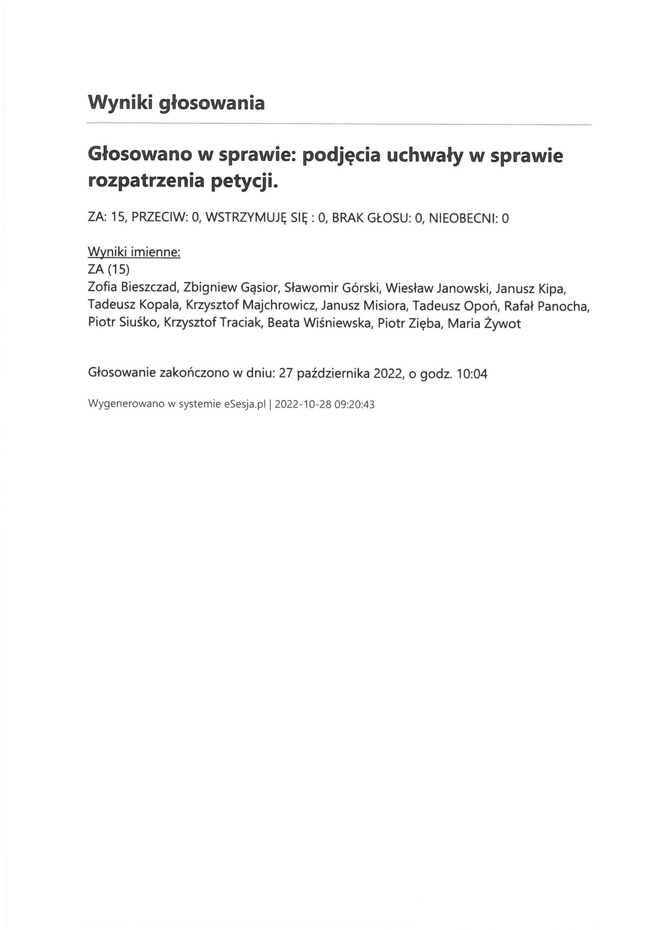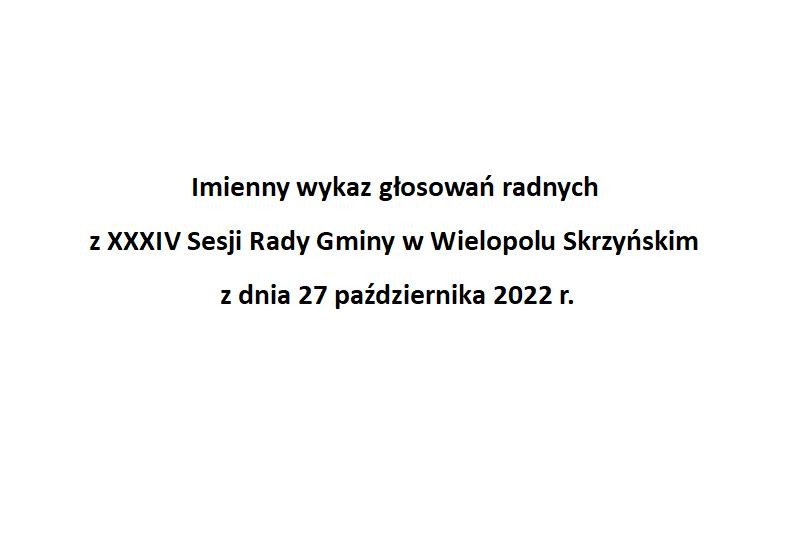 Piątek 28 października 2022 Imienny wykaz głosowań radnych Strona Główna/Informator/InformacjeImienny wykaz głosowań radnychImienny wykaz głosowań radnych