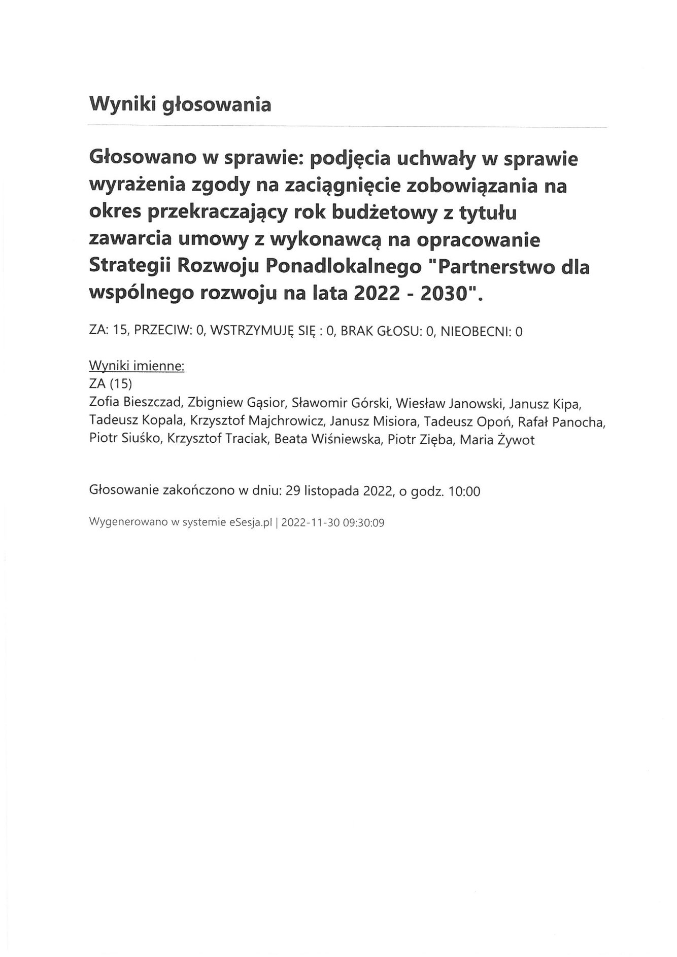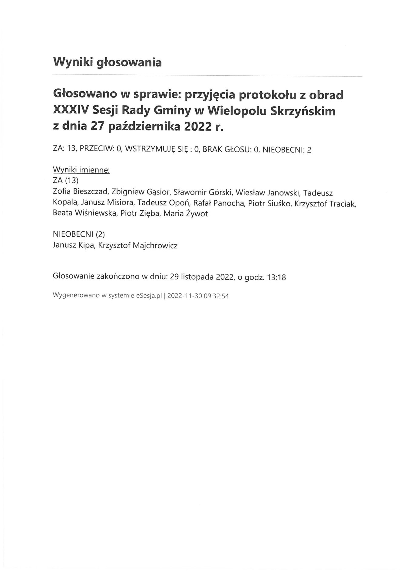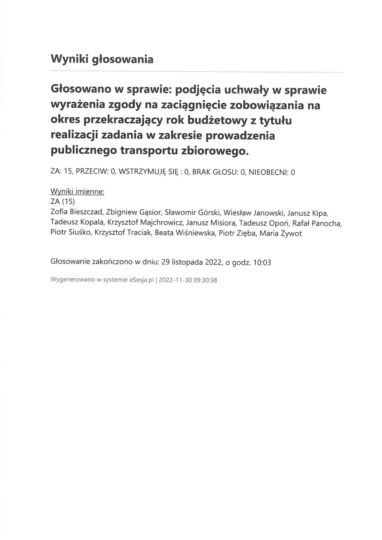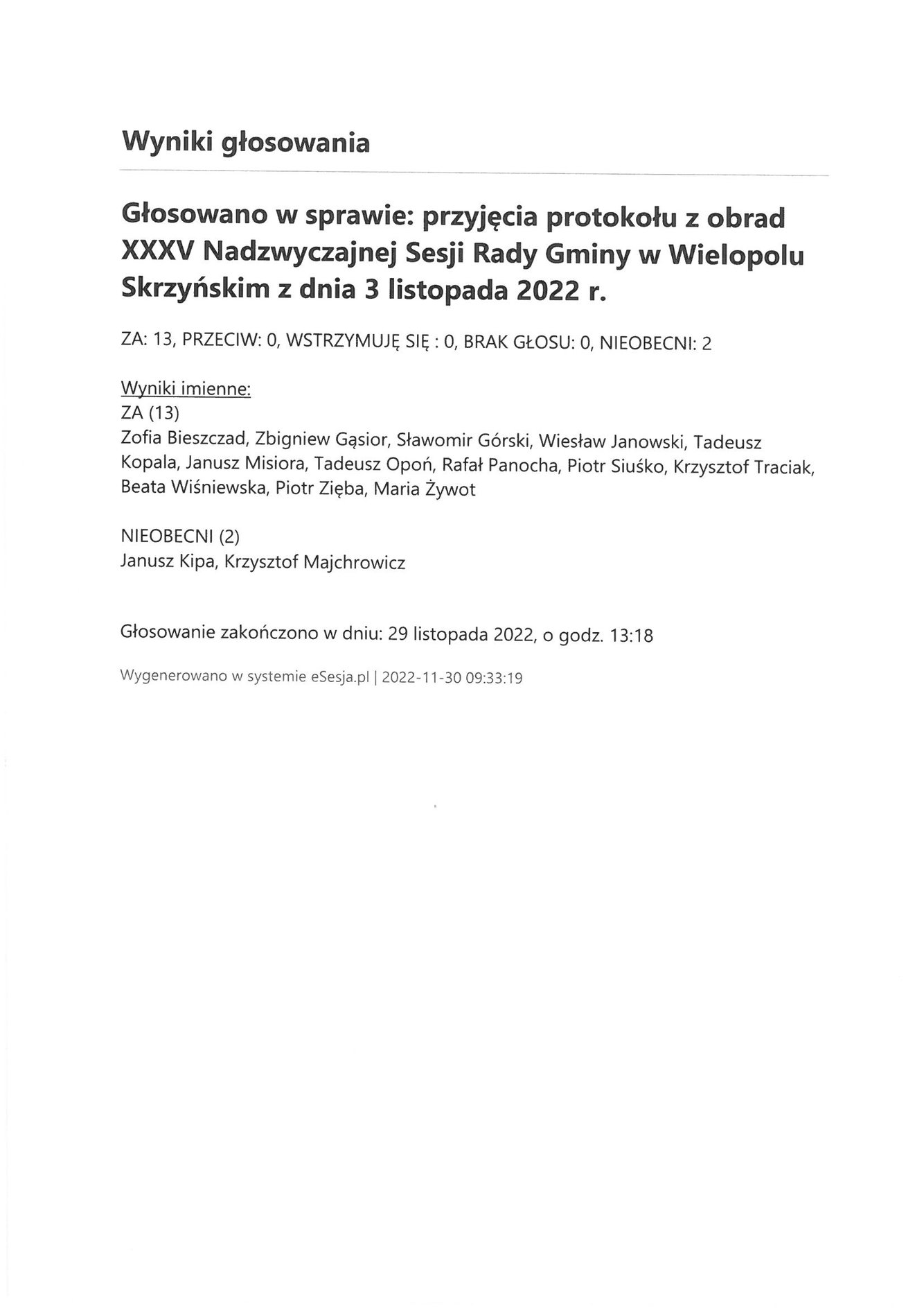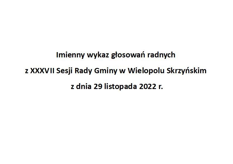 Środa 30 listopada 2022 Imienny wykaz głosowań radnych Strona Główna/Informator/InformacjeImienny wykaz głosowań radnychImienny wykaz głosowań radnych