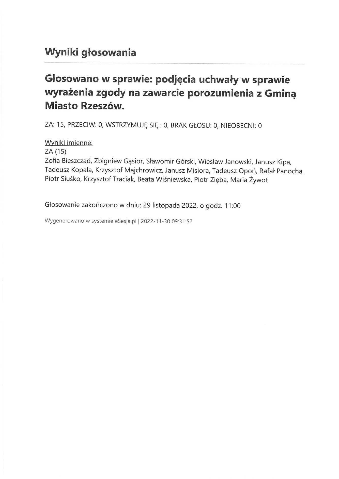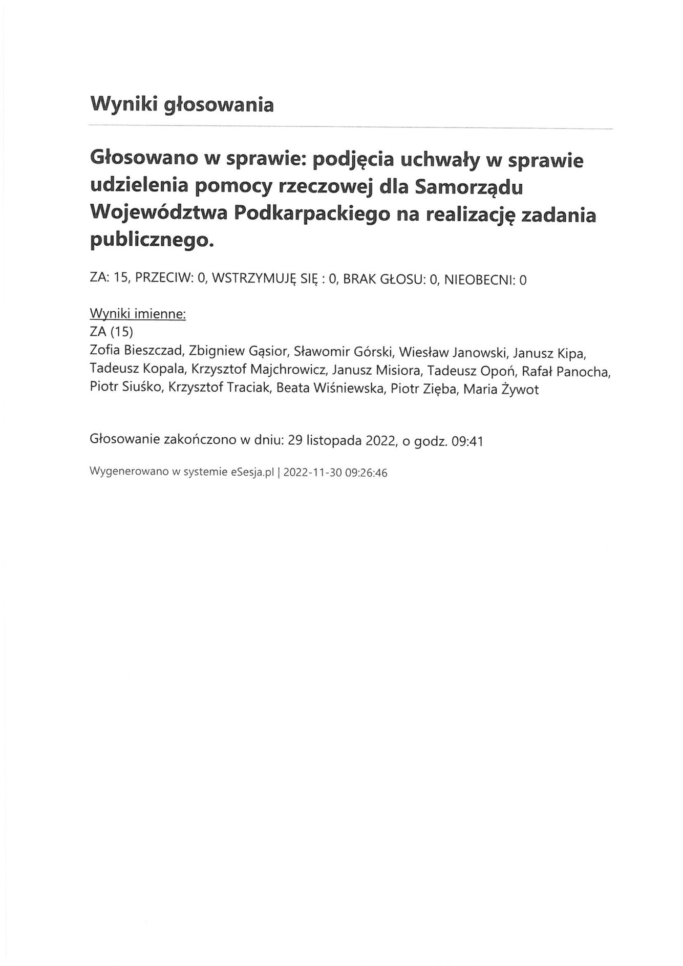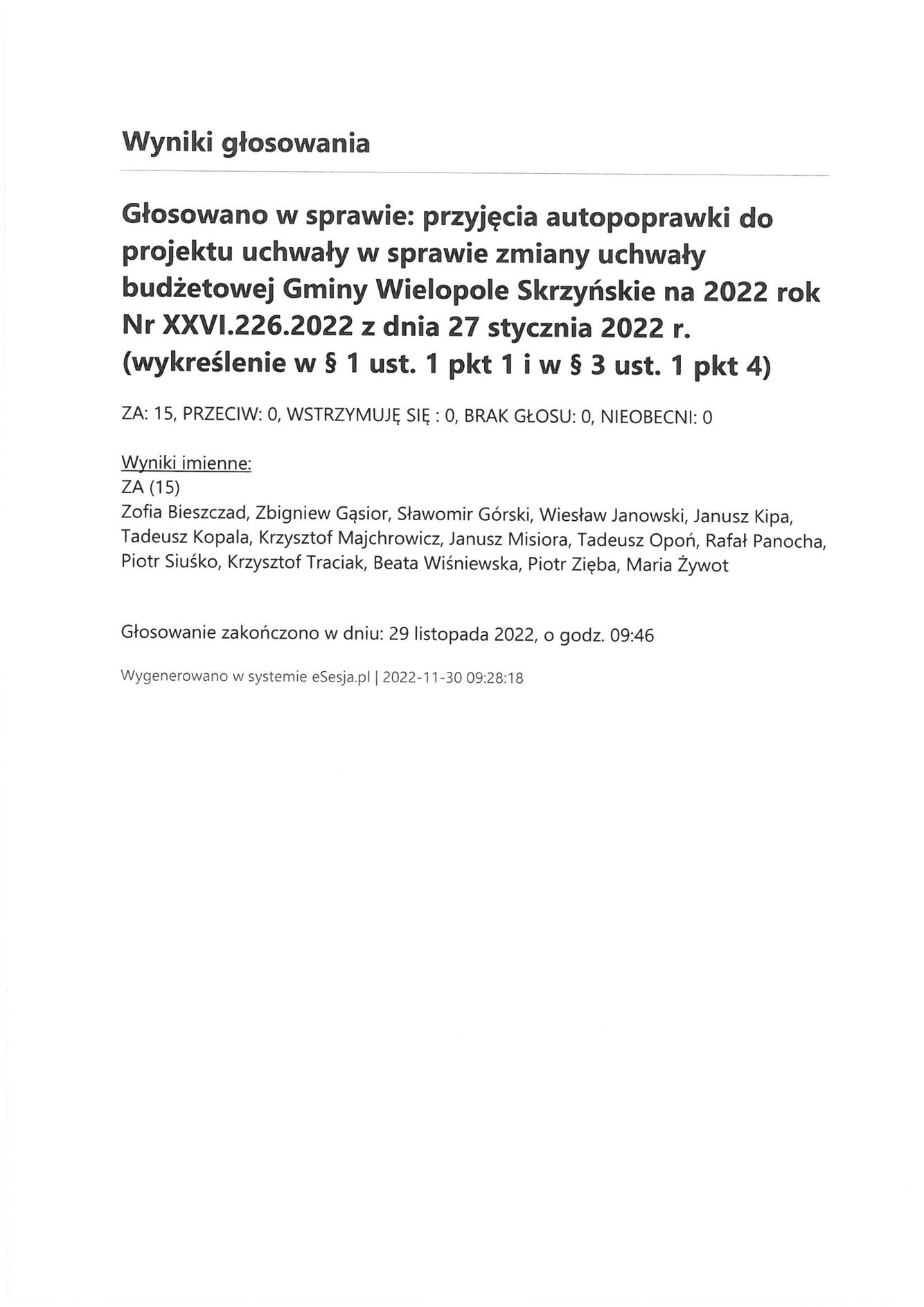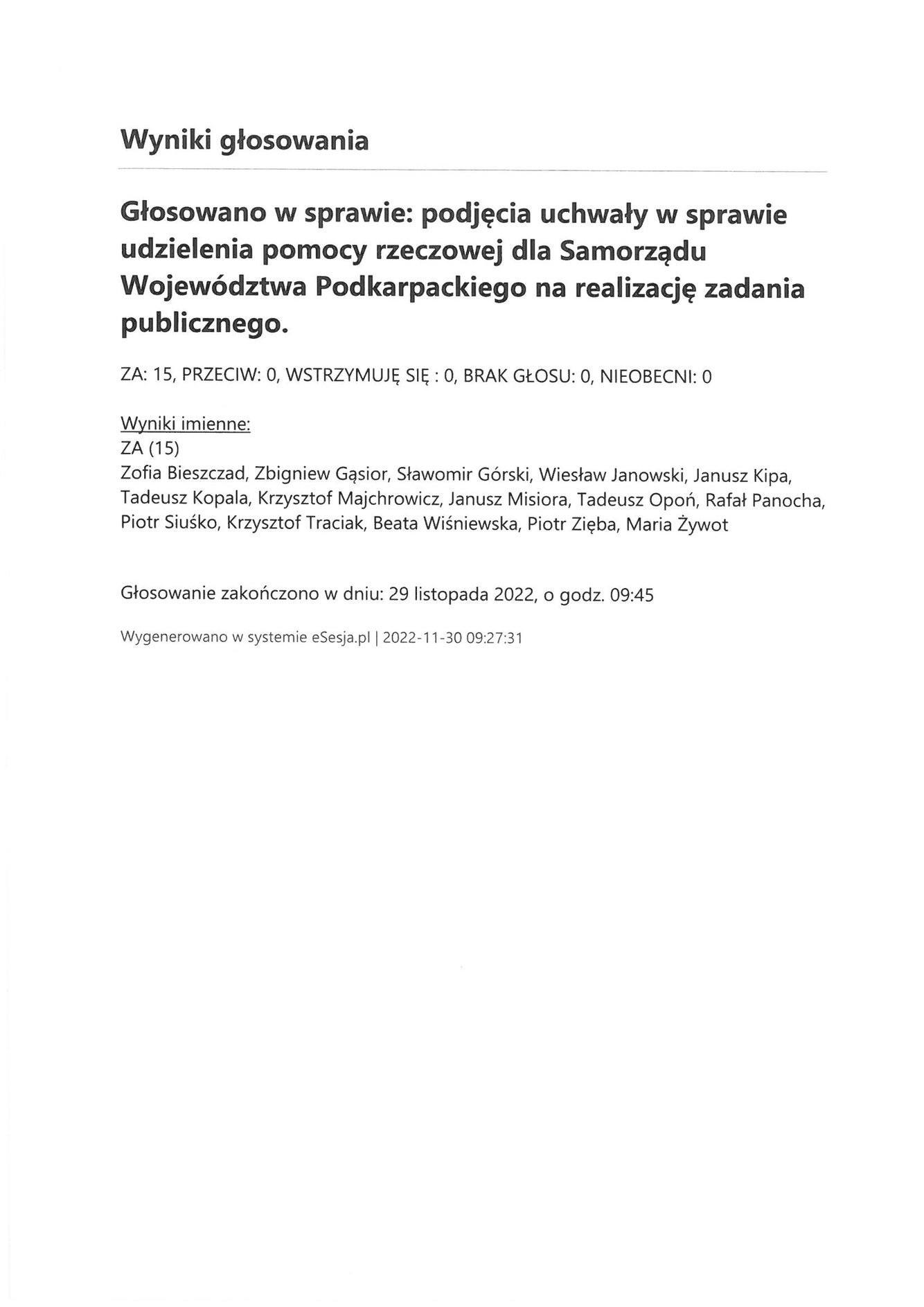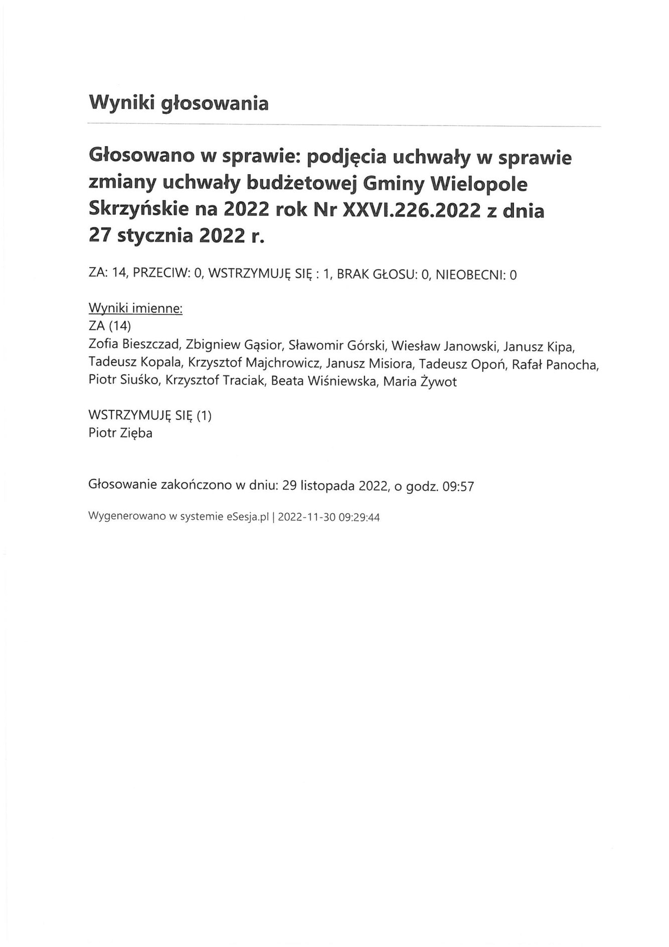 Środa 30 listopada 2022 Imienny wykaz głosowań radnych Strona Główna/Informator/InformacjeImienny wykaz głosowań radnychImienny wykaz głosowań radnych