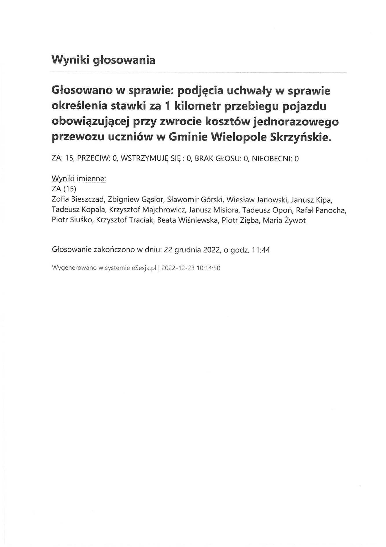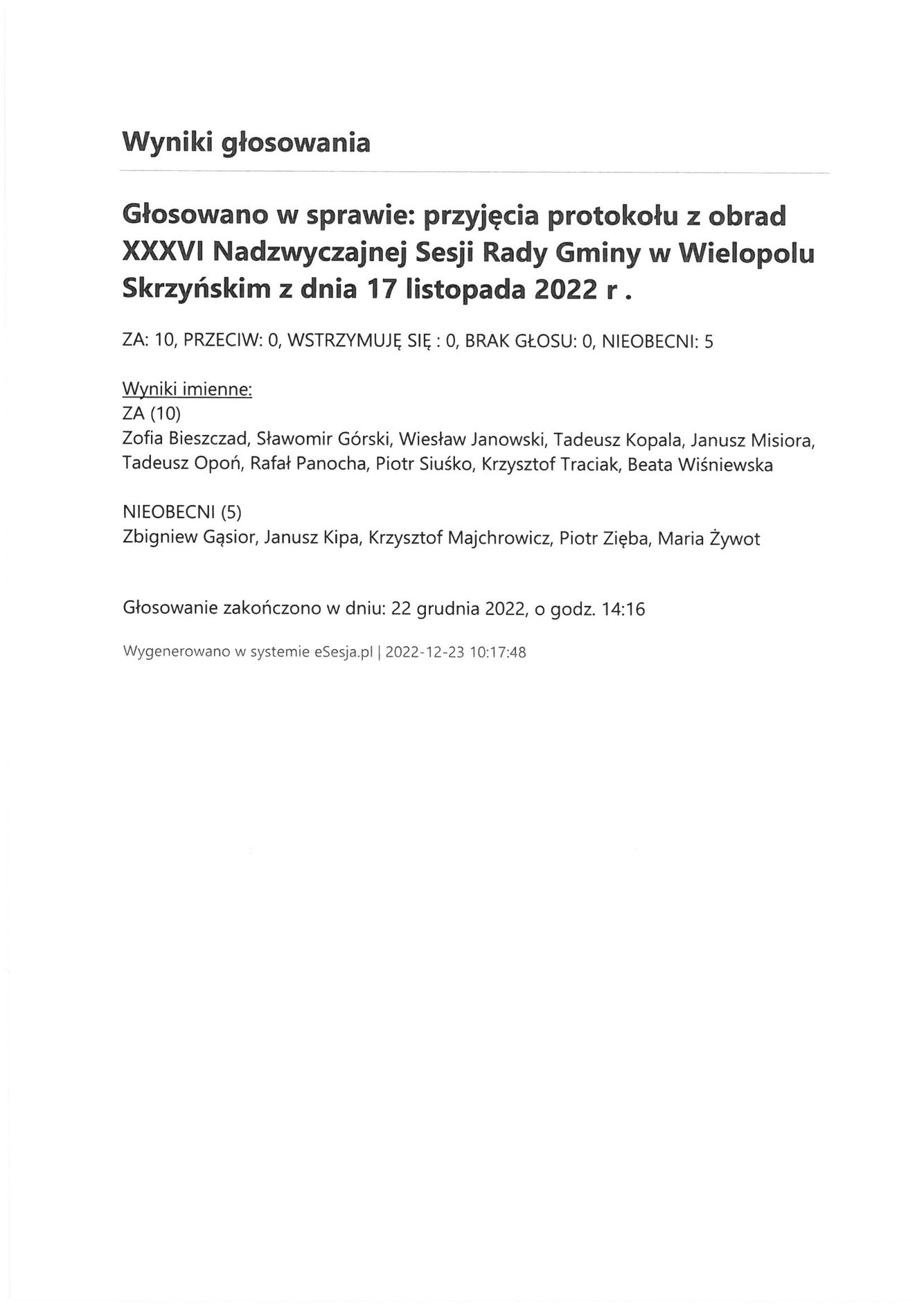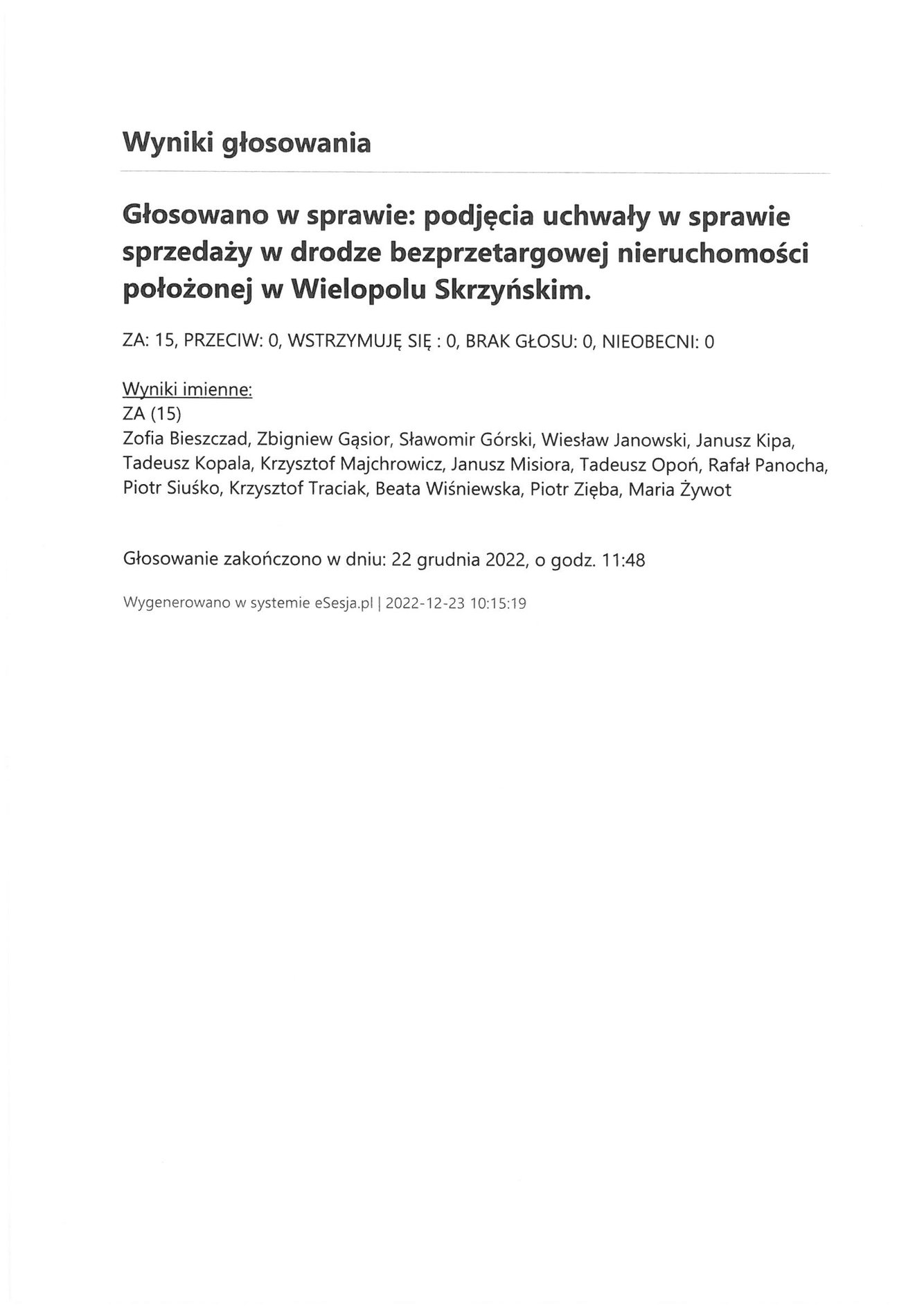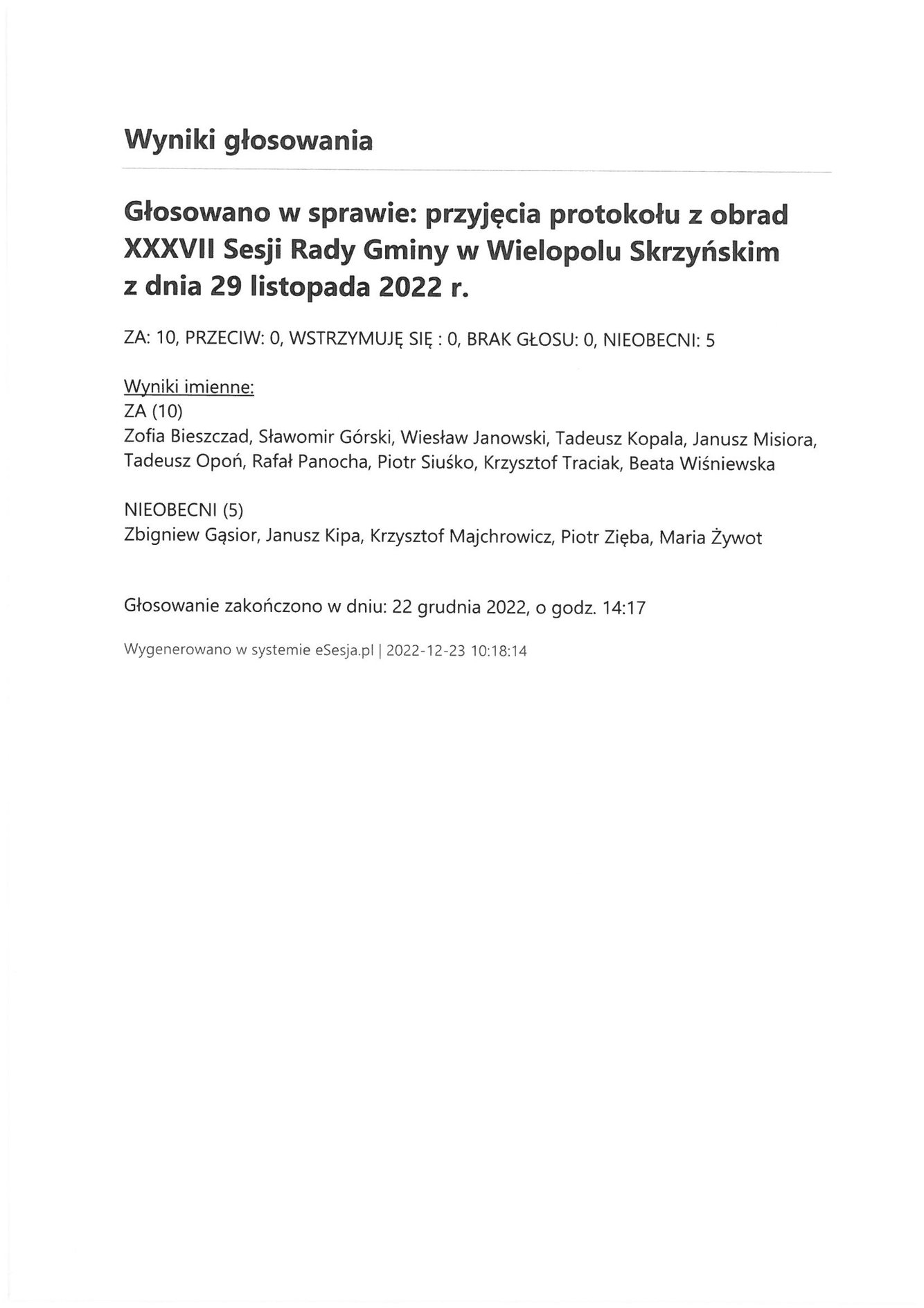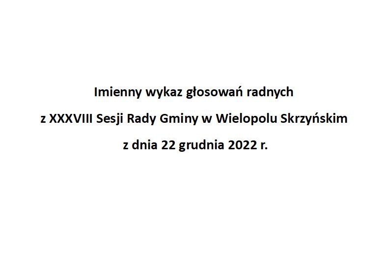 Piątek 23 grudnia 2022 Imienny wykaz głosowań radnych Strona Główna/Informator/InformacjeImienny wykaz głosowań radnychImienny wykaz głosowań radnych