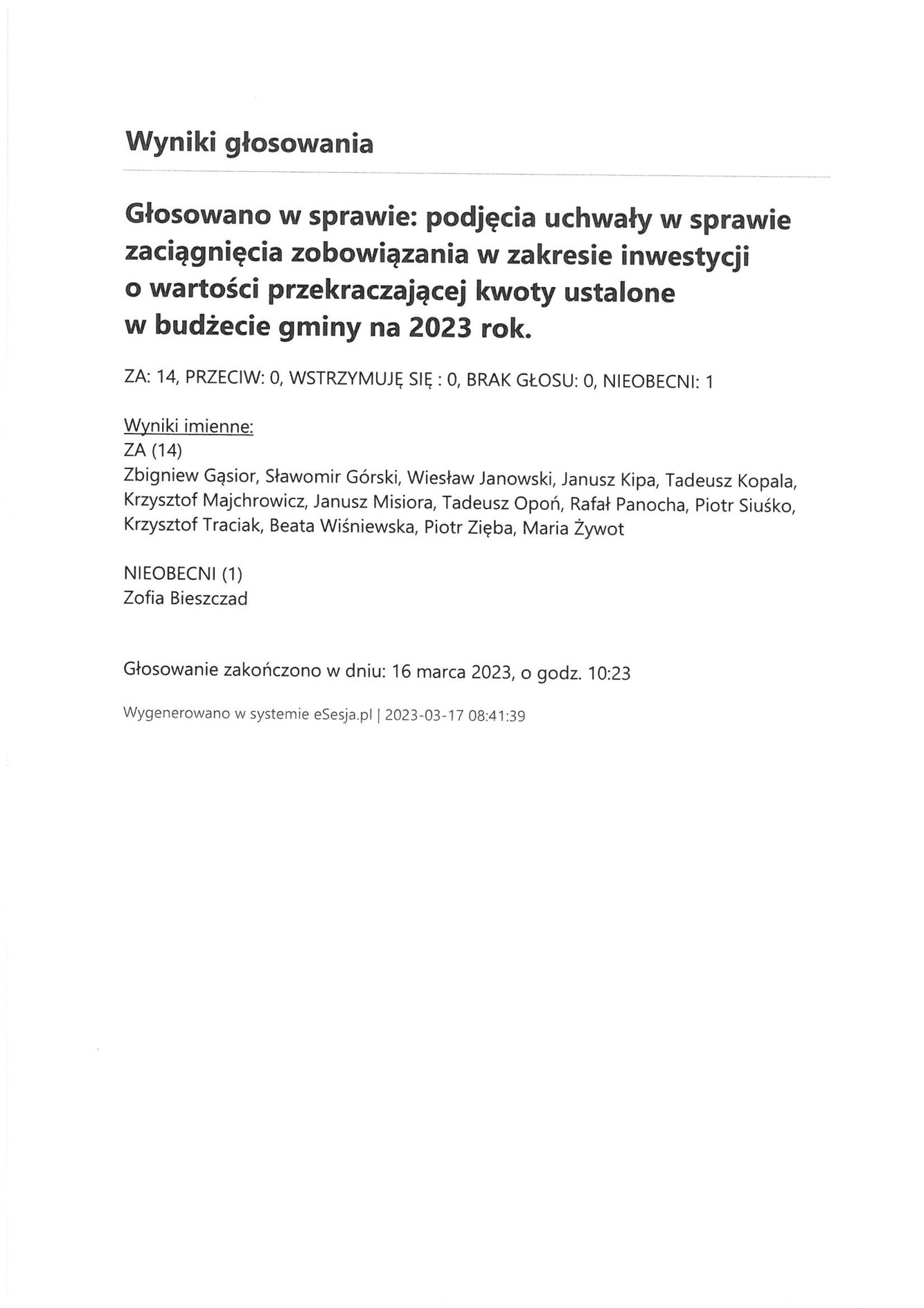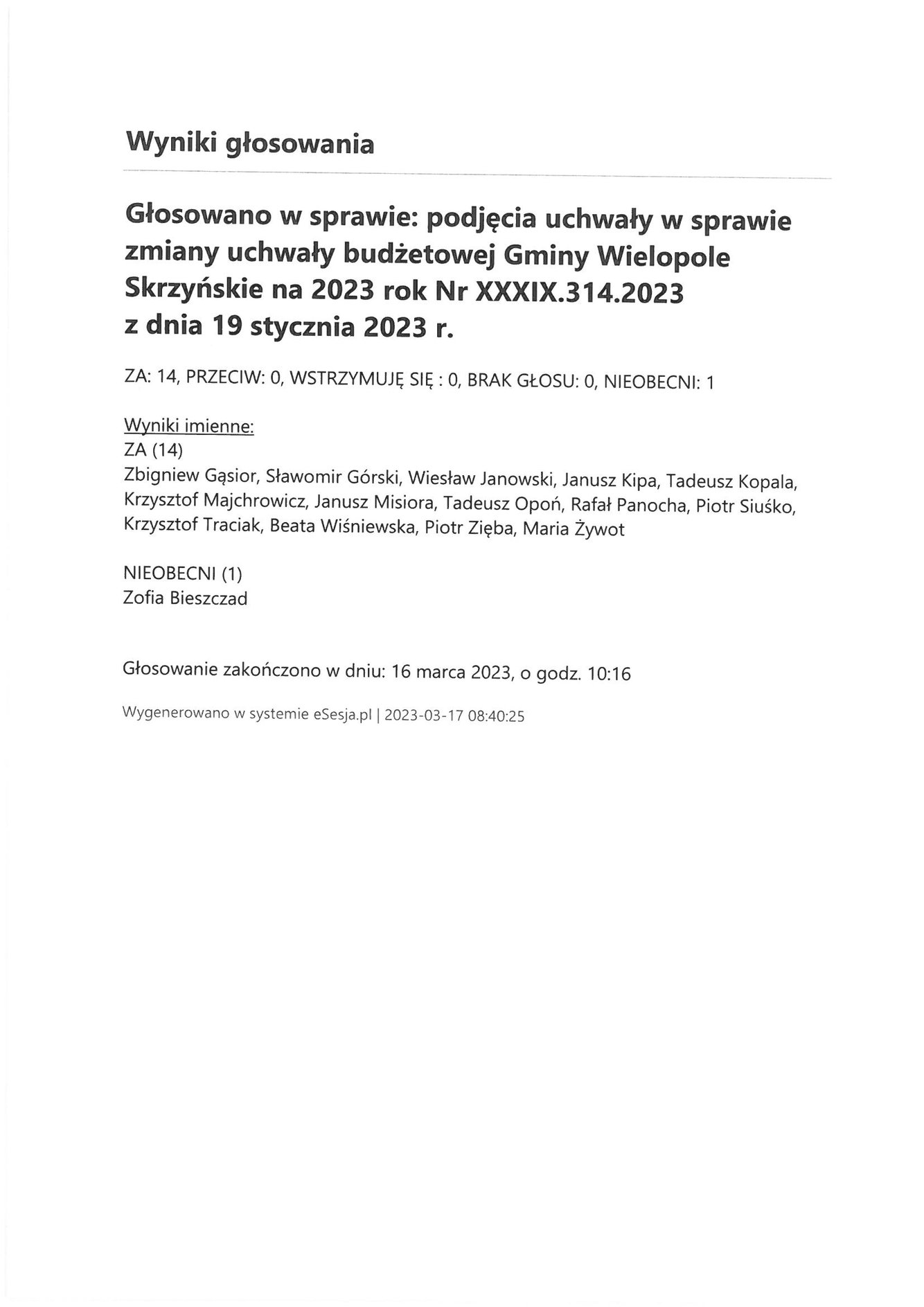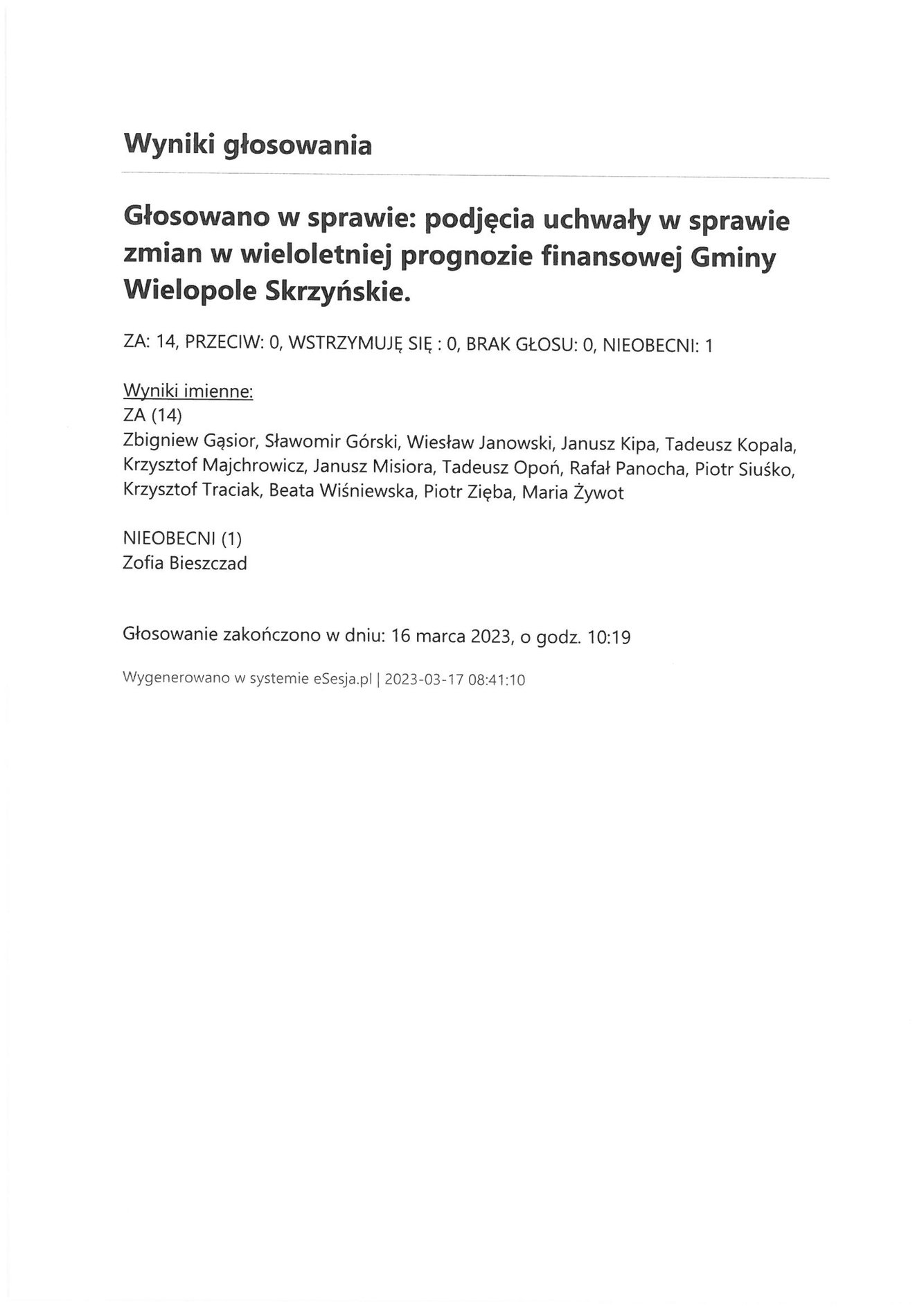 Środa 22 marca 2023 Imienny wykaz głosowań radnych Strona Główna/Informator/InformacjeImienny wykaz głosowań radnychImienny wykaz głosowań radnych