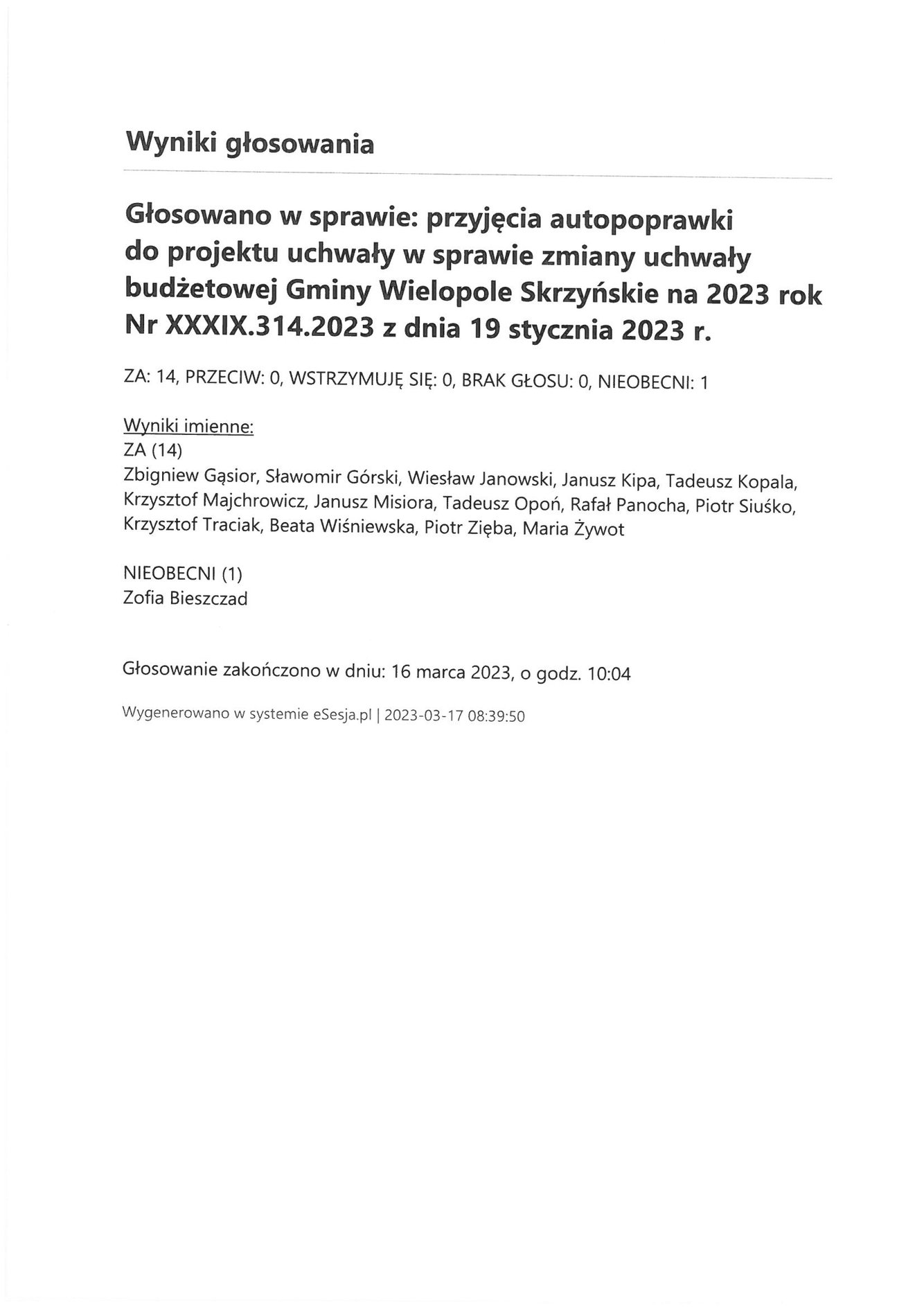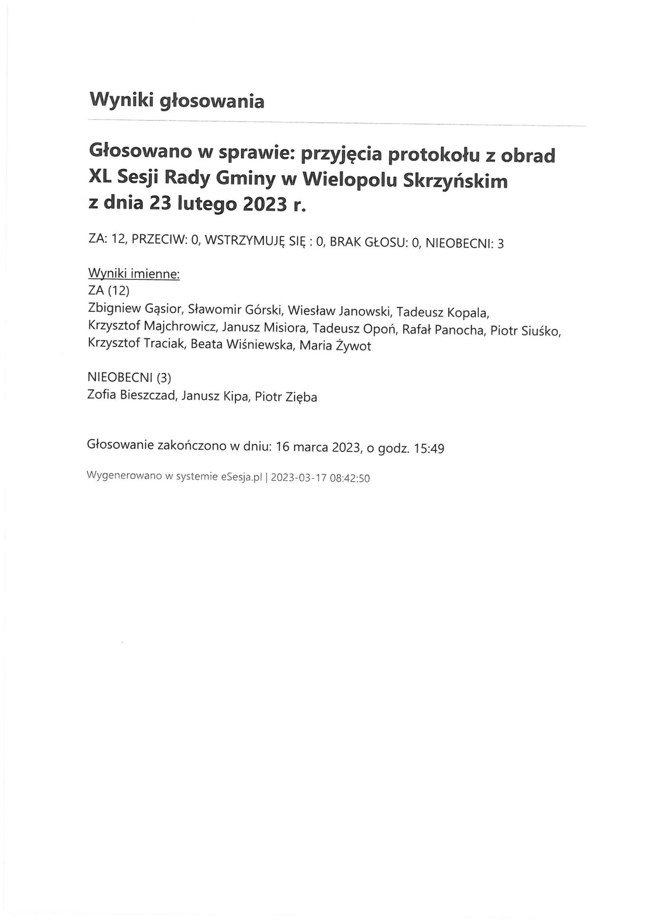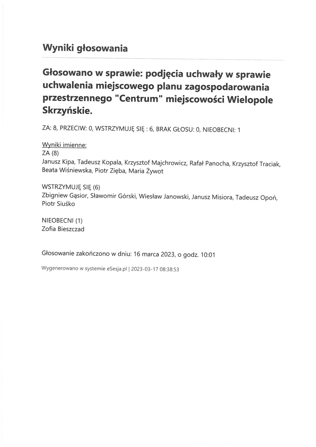 Środa 22 marca 2023 Imienny wykaz głosowań radnych Strona Główna/Informator/InformacjeImienny wykaz głosowań radnychImienny wykaz głosowań radnych