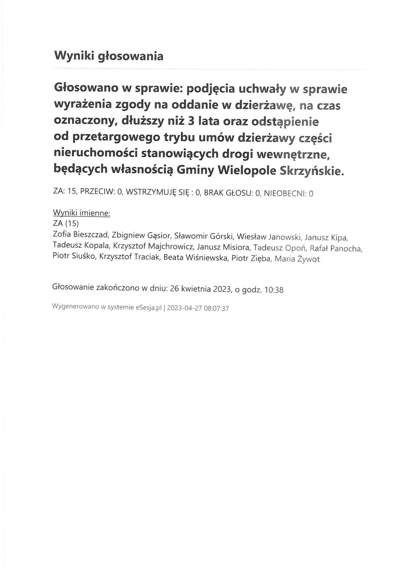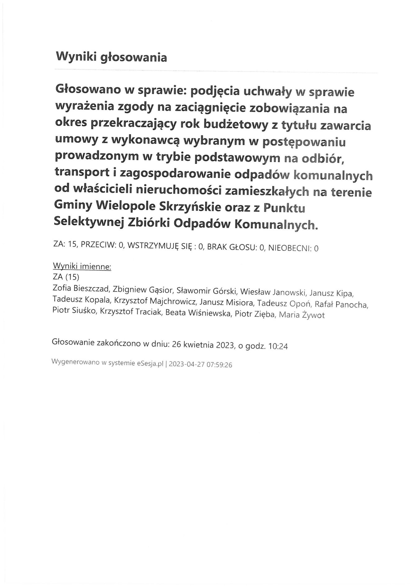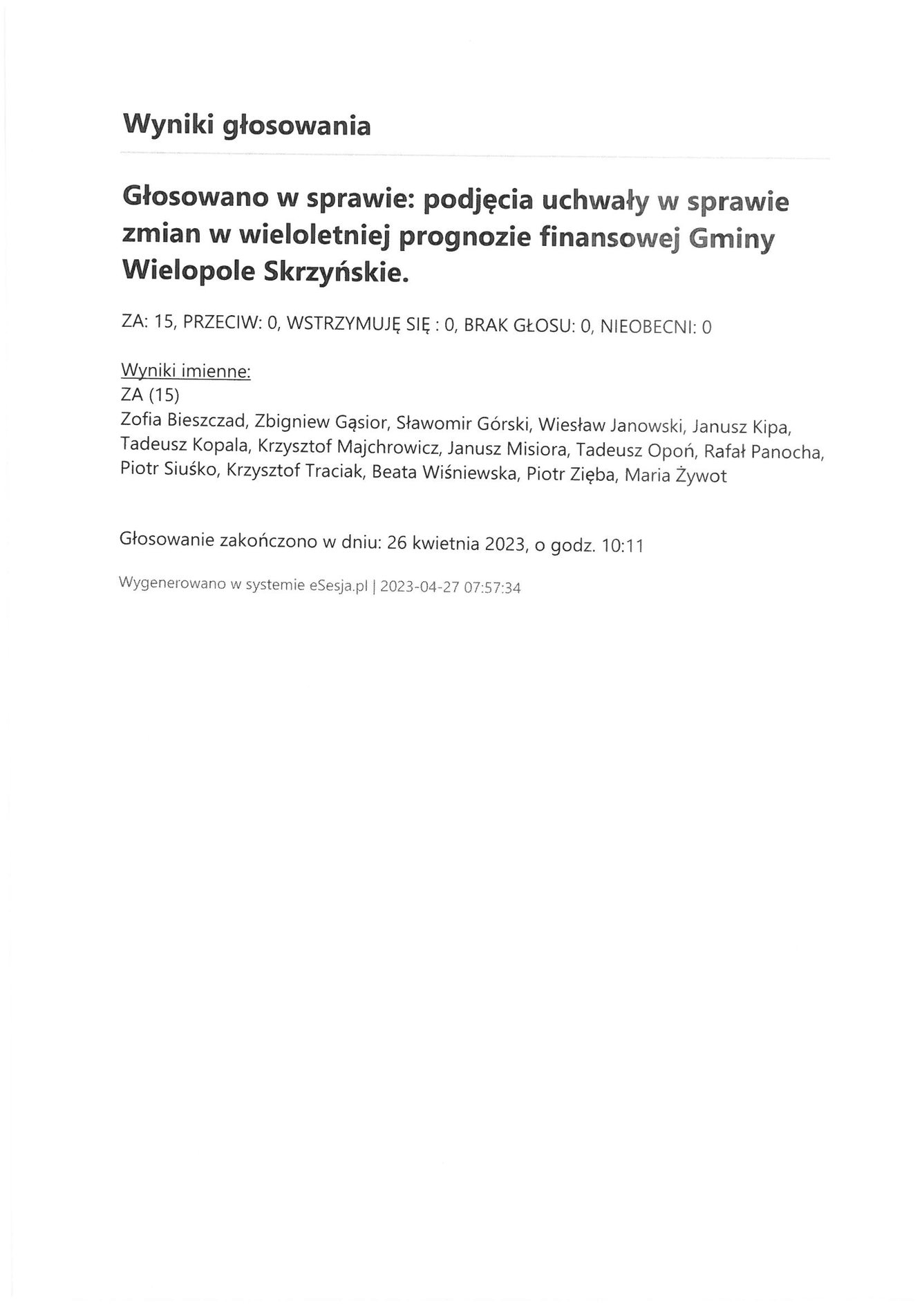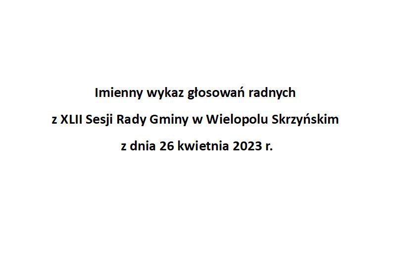 Czwartek 27 kwietnia 2023 Imienny wykaz głosowań radnych Strona Główna/Informator/InformacjeImienny wykaz głosowań radnychImienny wykaz głosowań radnych