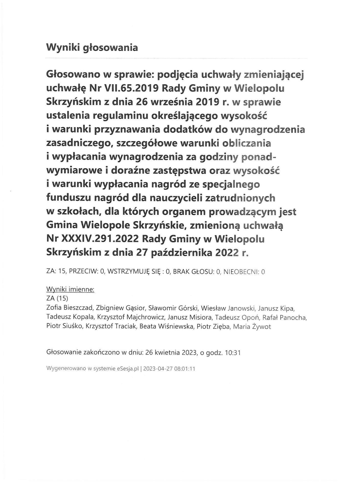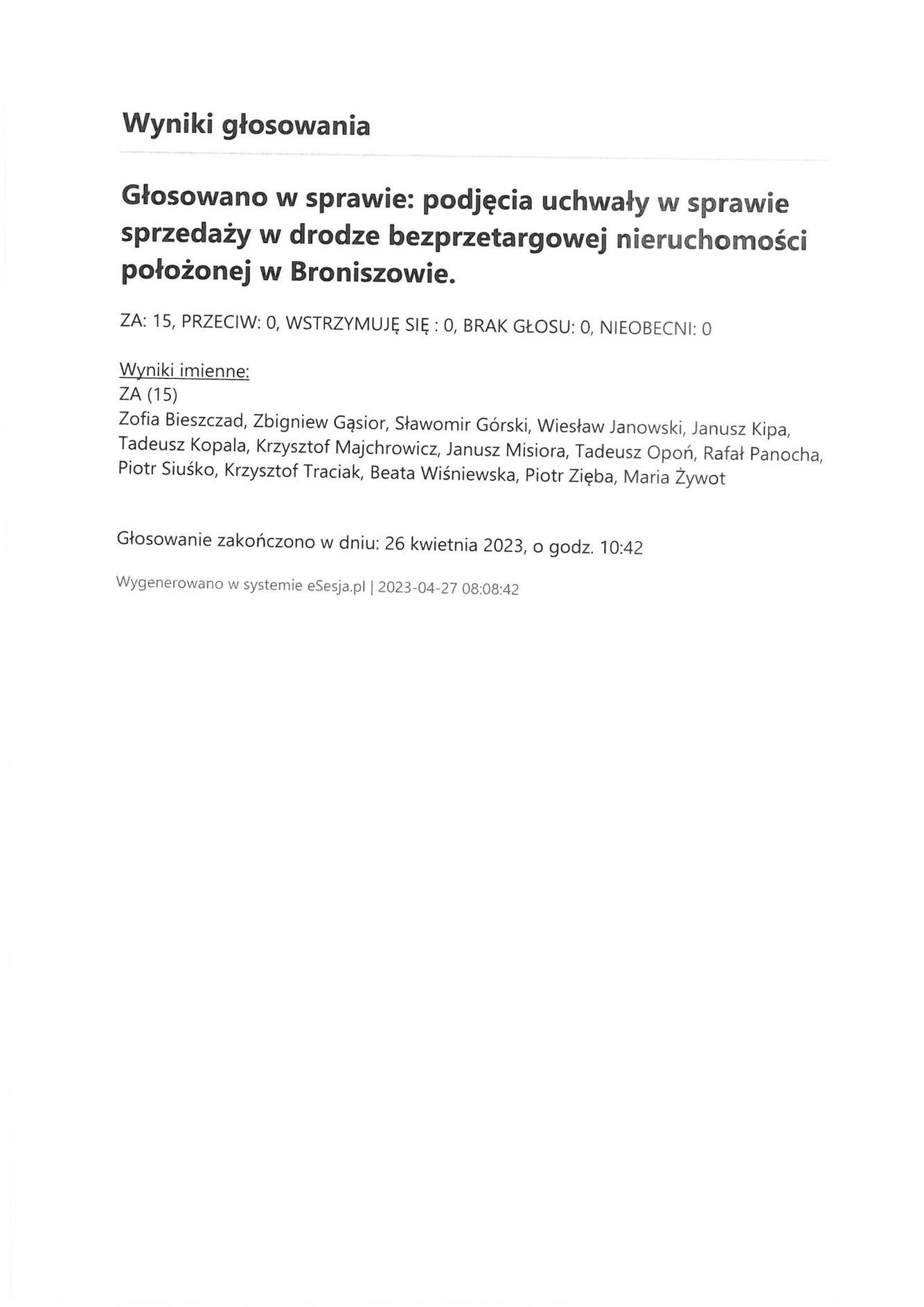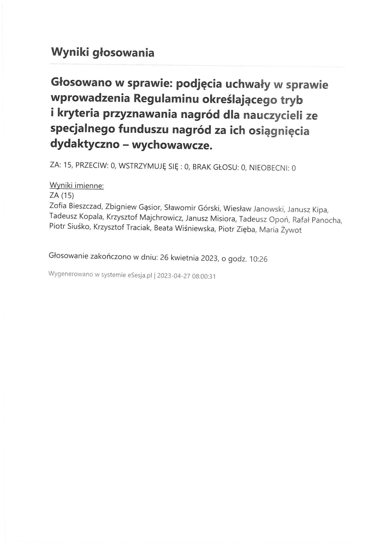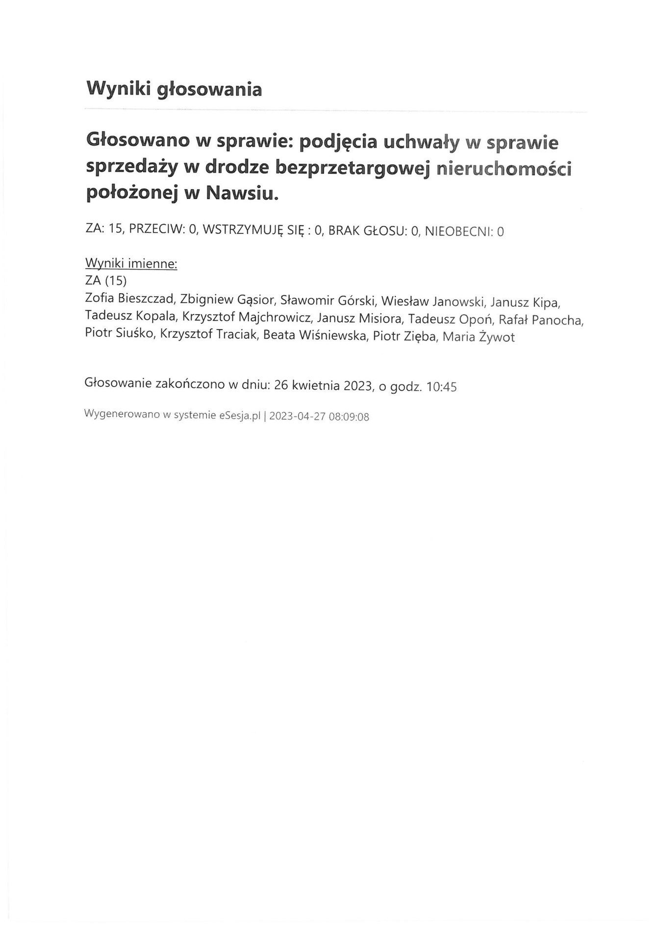 Czwartek 27 kwietnia 2023 Imienny wykaz głosowań radnych Strona Główna/Informator/InformacjeImienny wykaz głosowań radnychImienny wykaz głosowań radnych