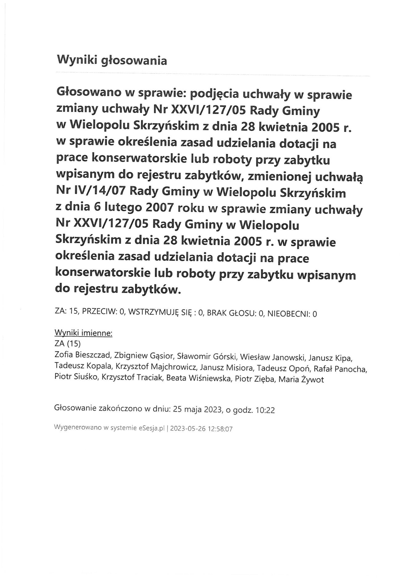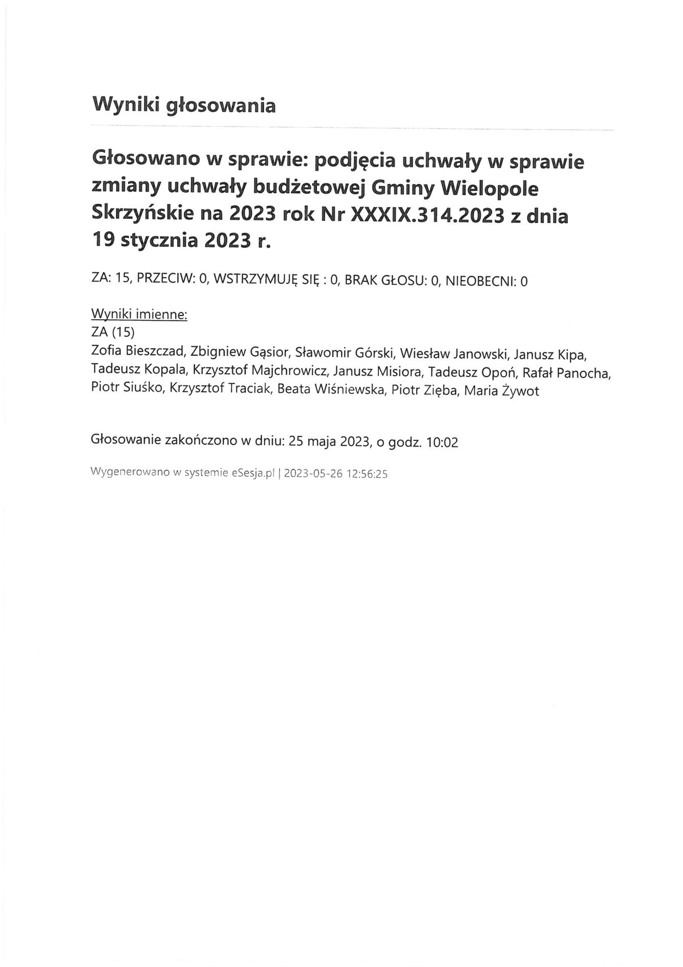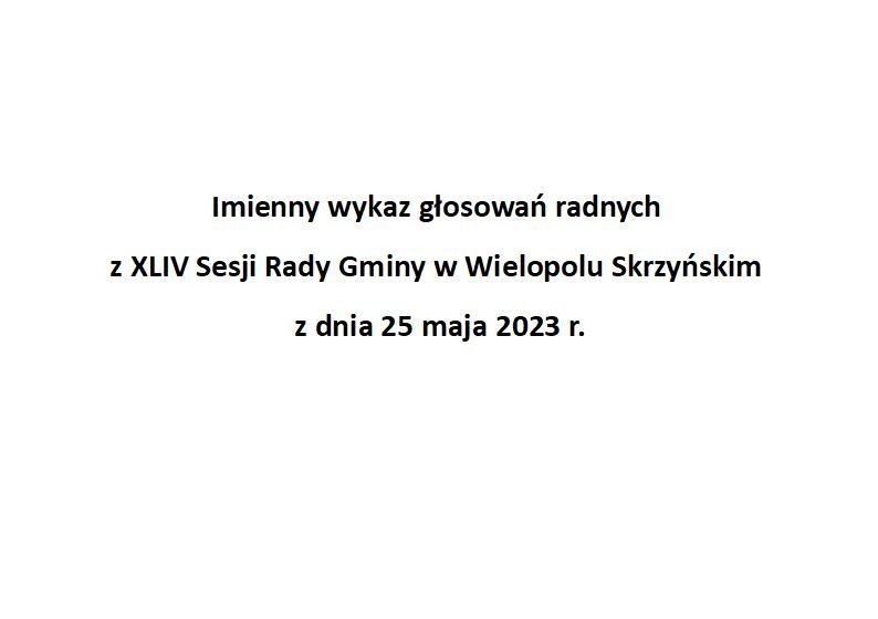 Piątek 26 maja 2023 Imienny wykaz głosowań radnych Strona Główna/Informator/InformacjeImienny wykaz głosowań radnychImienny wykaz głosowań radnych