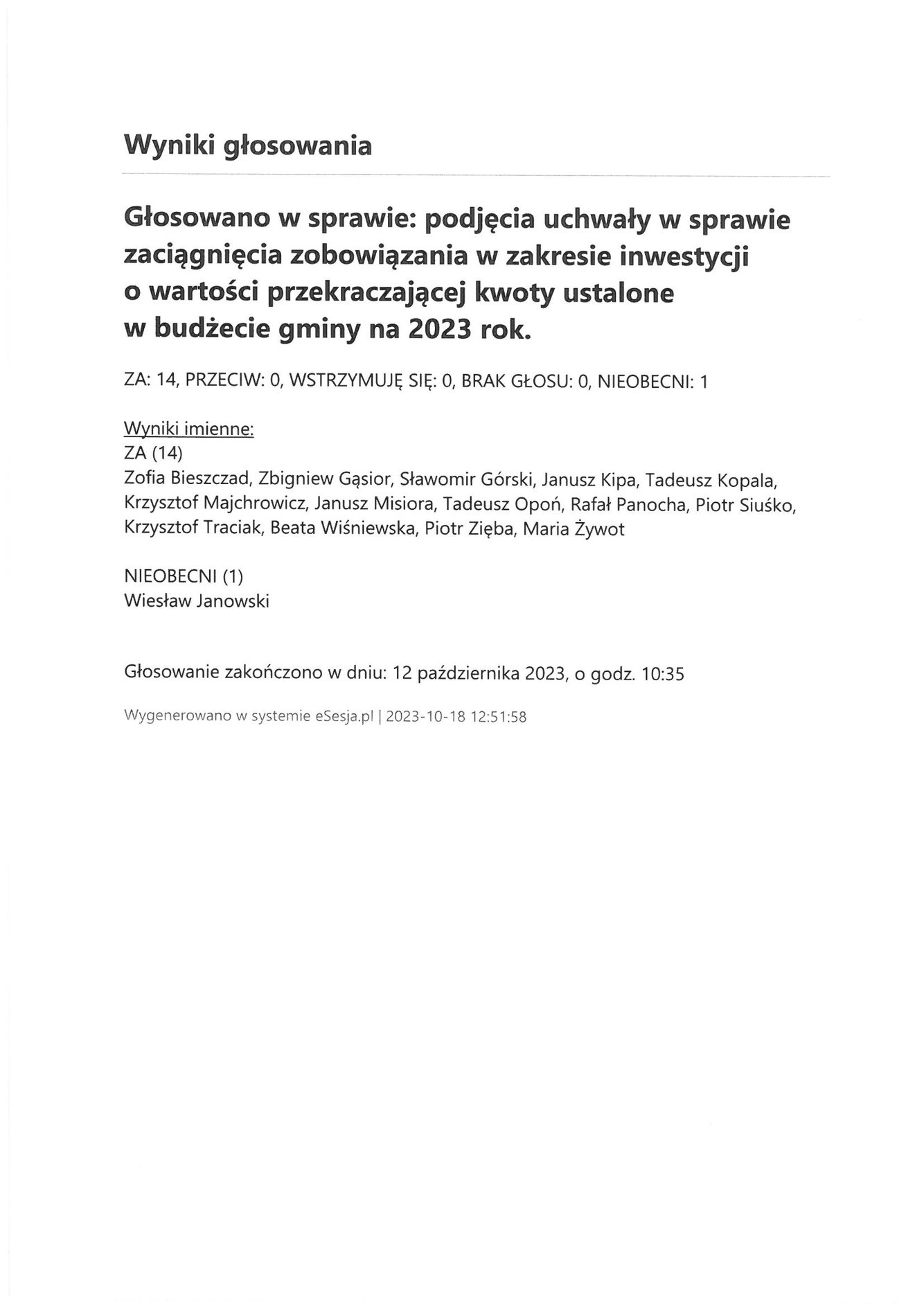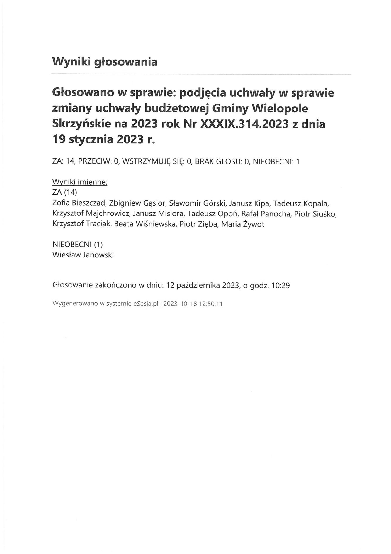 Środa 18 października 2023 Imienny wykaz głosowań radnych Strona Główna/Informator/InformacjeImienny wykaz głosowań radnychImienny wykaz głosowań radnych