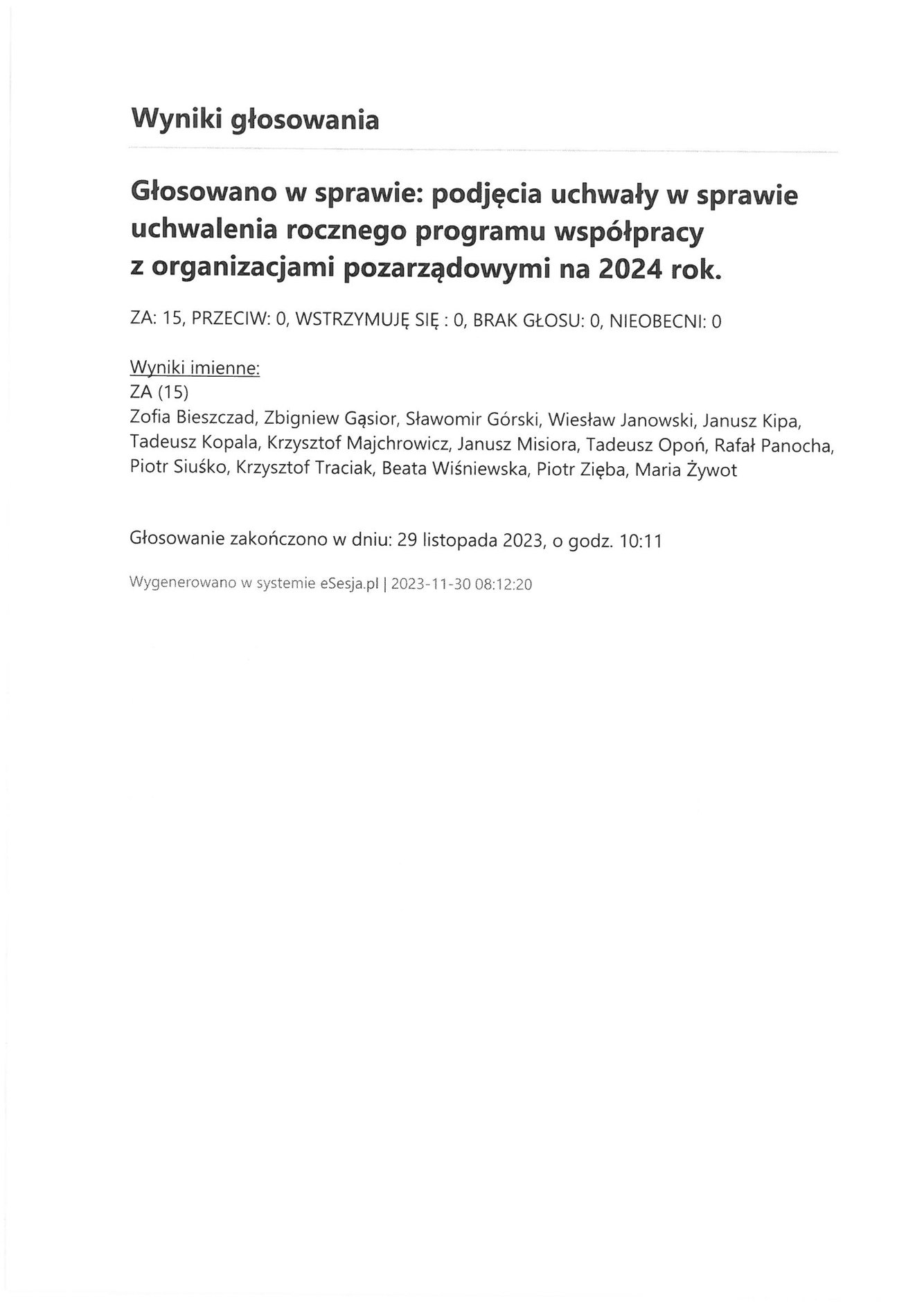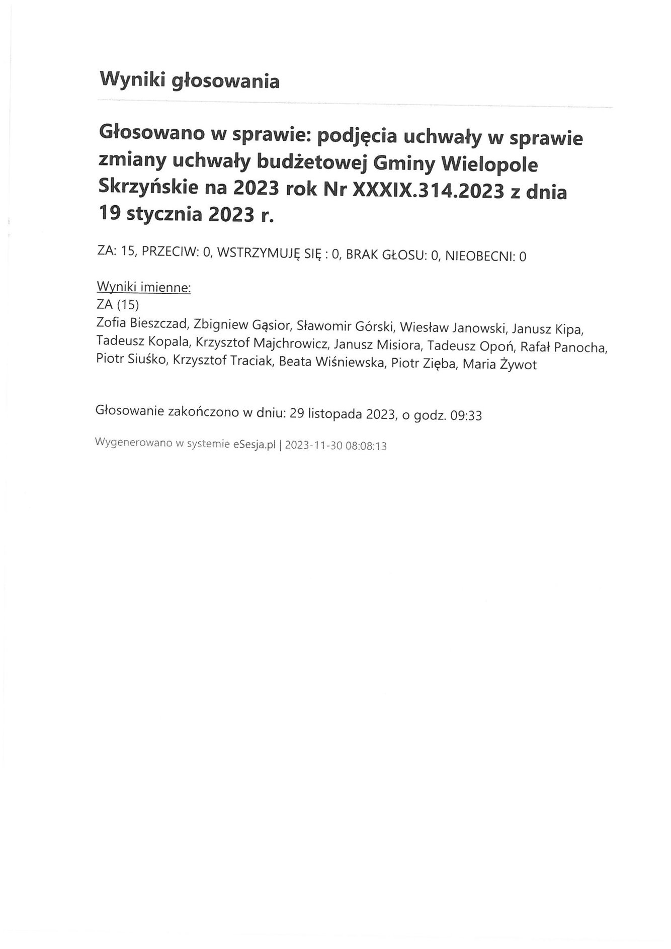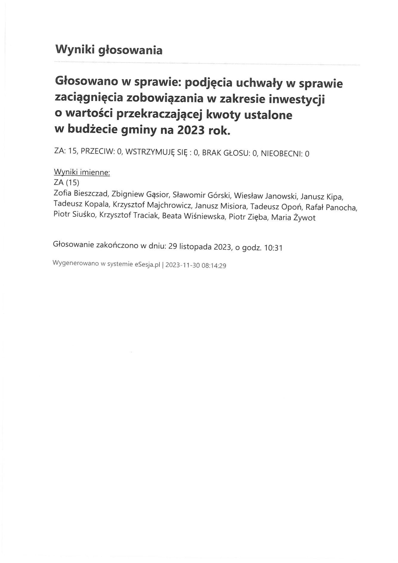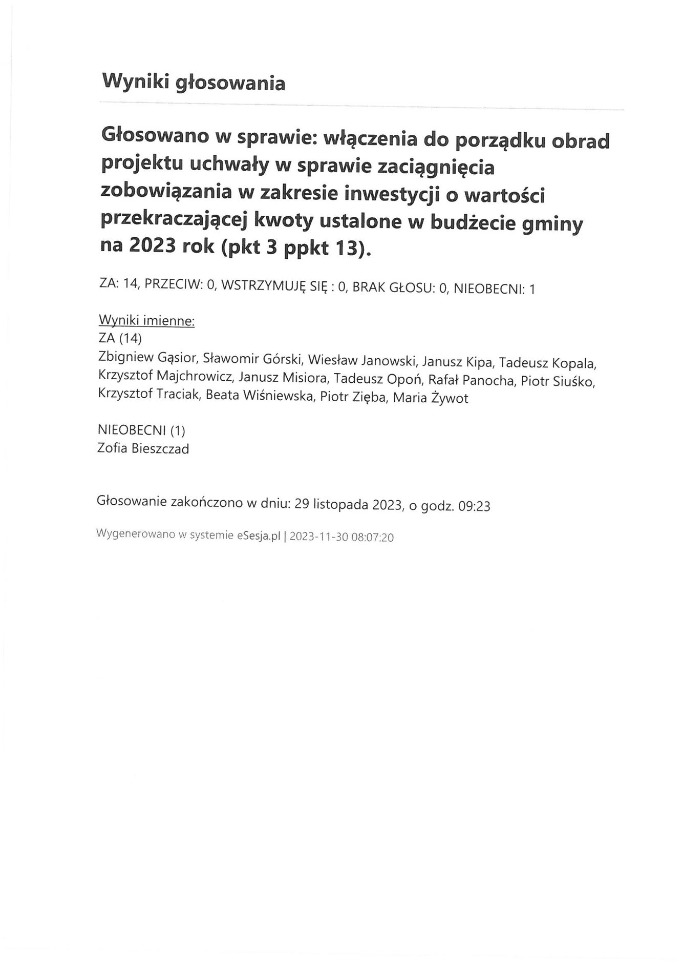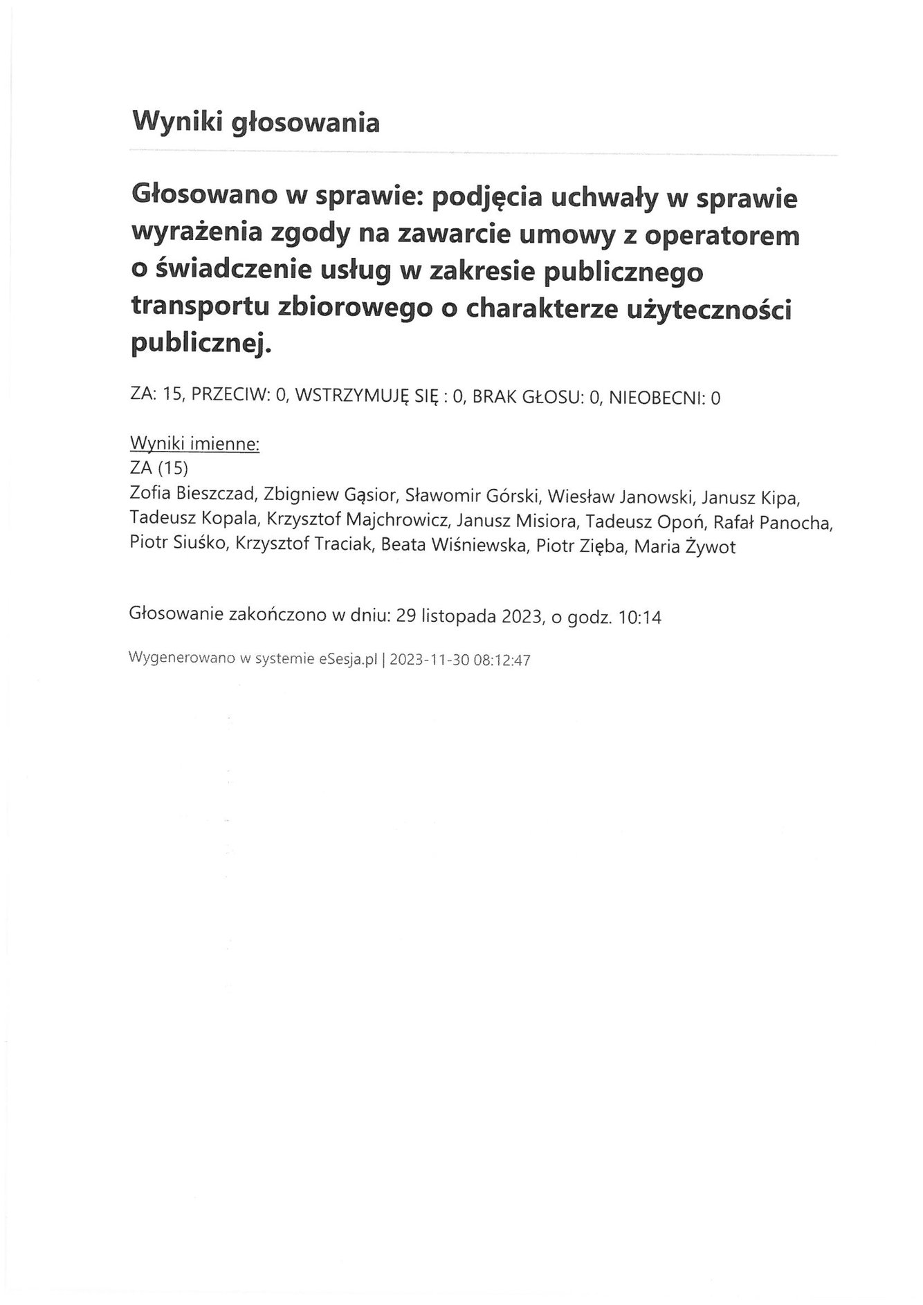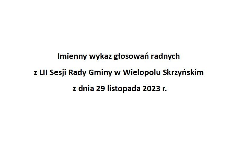 Poniedziałek 4 grudnia 2023 Imienny wykaz głosowań radnych Strona Główna/Informator/InformacjeImienny wykaz głosowań radnychImienny wykaz głosowań radnych