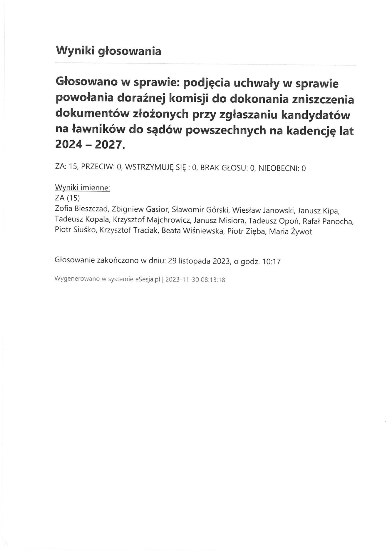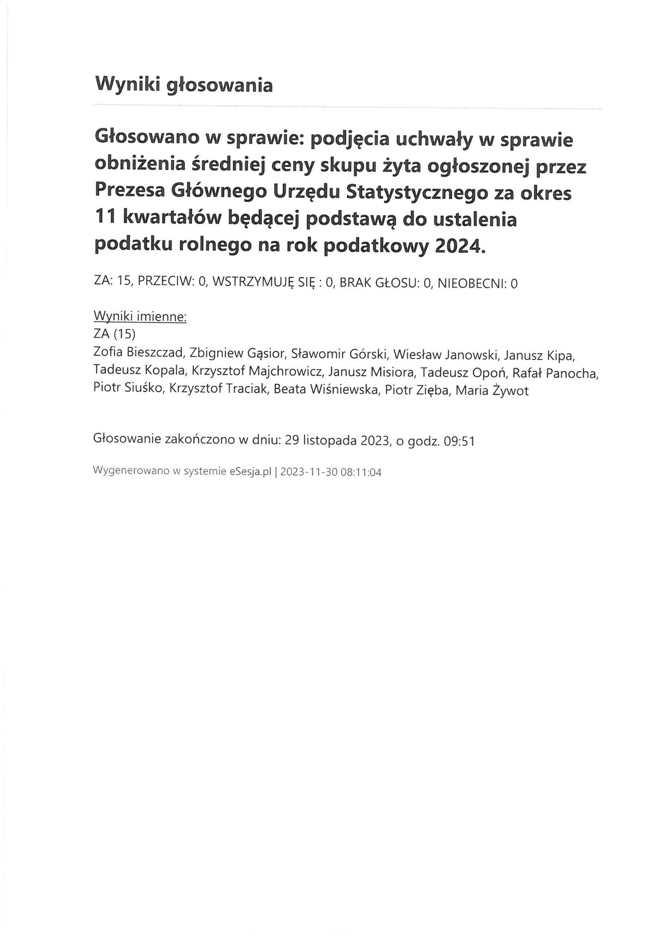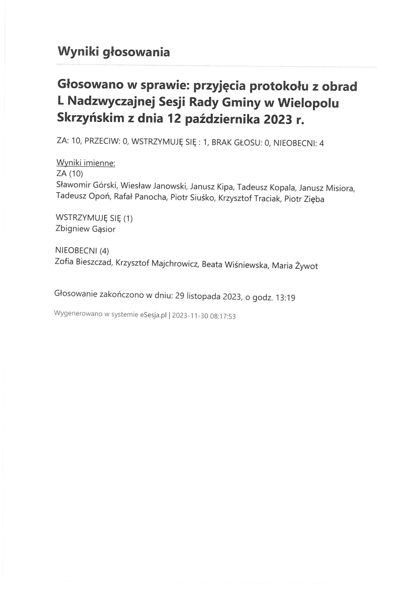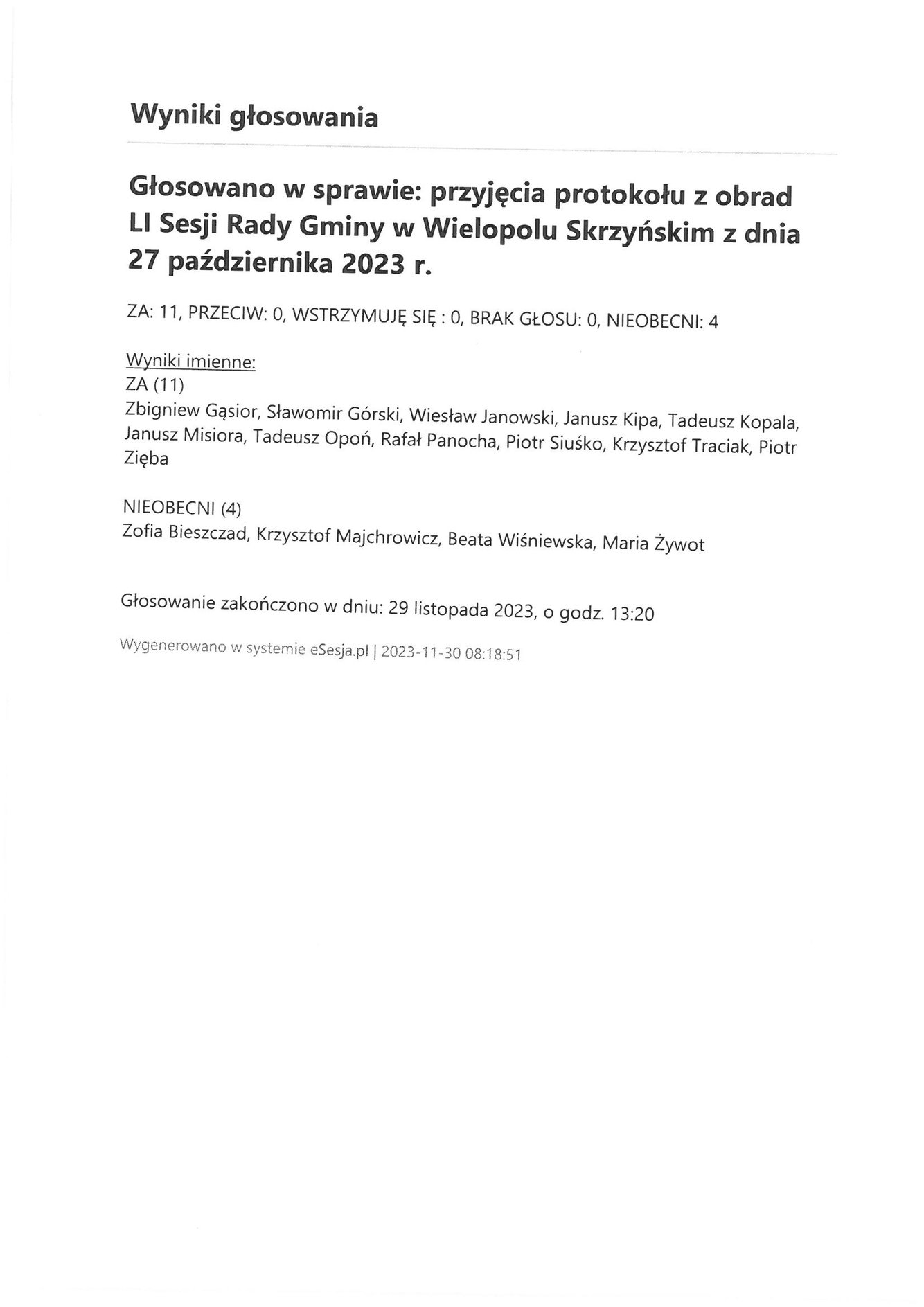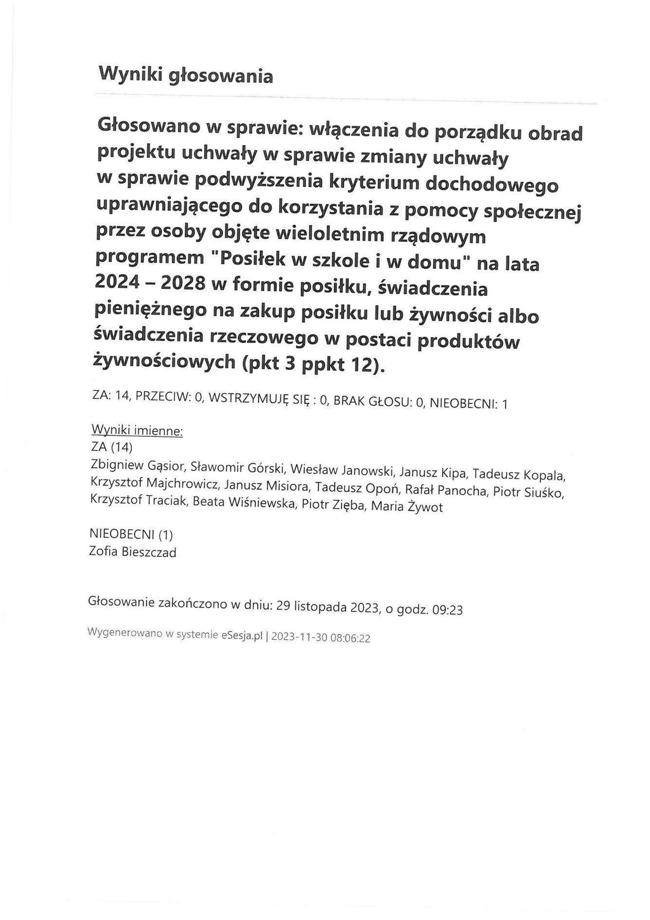 Poniedziałek 4 grudnia 2023 Imienny wykaz głosowań radnych Strona Główna/Informator/InformacjeImienny wykaz głosowań radnychImienny wykaz głosowań radnych